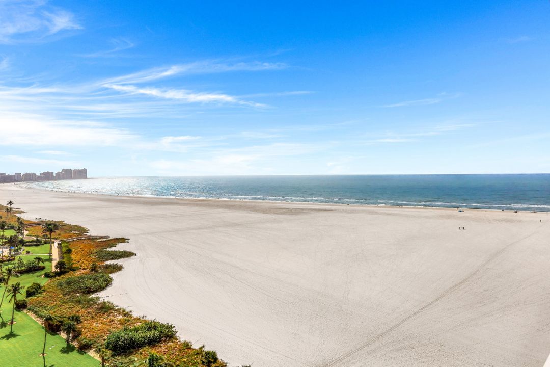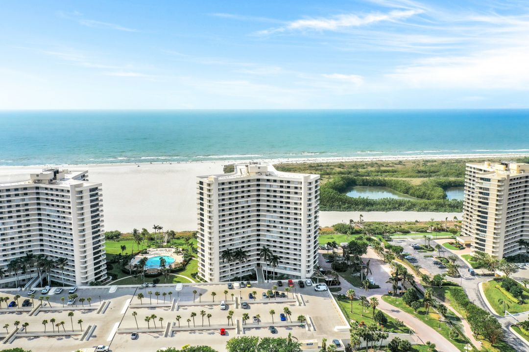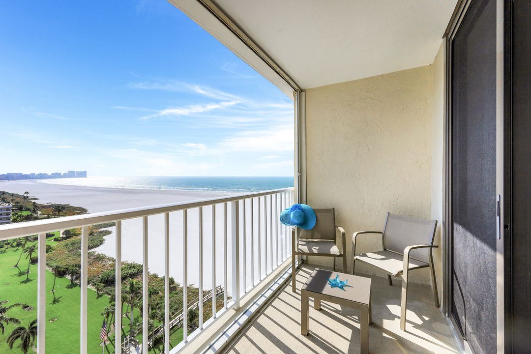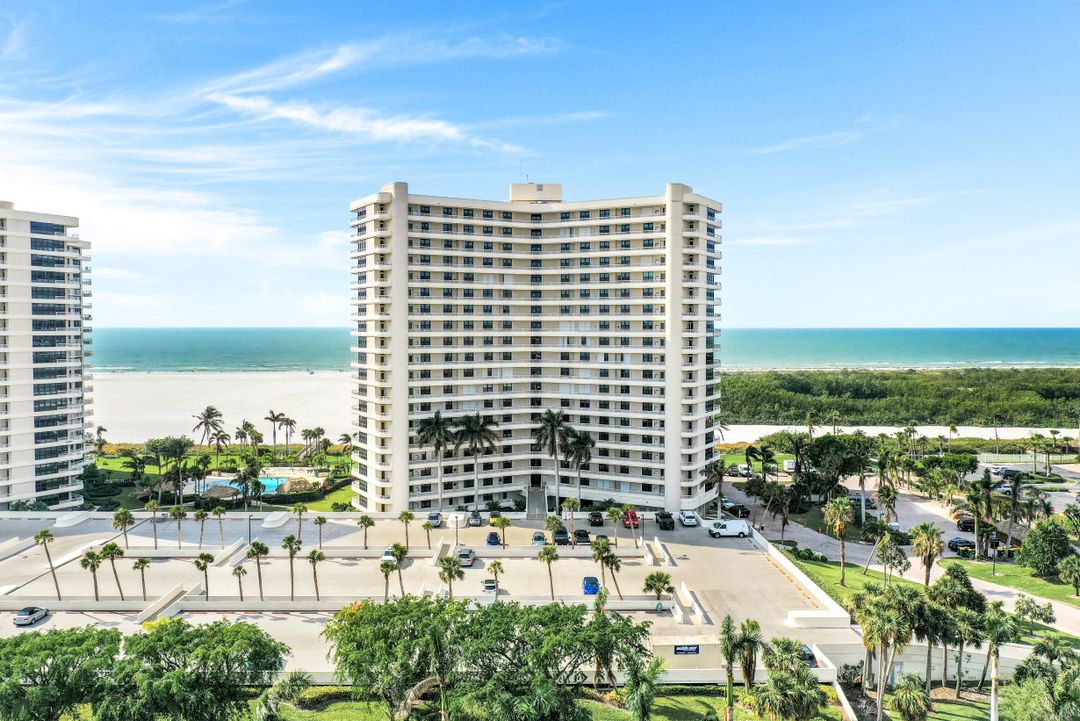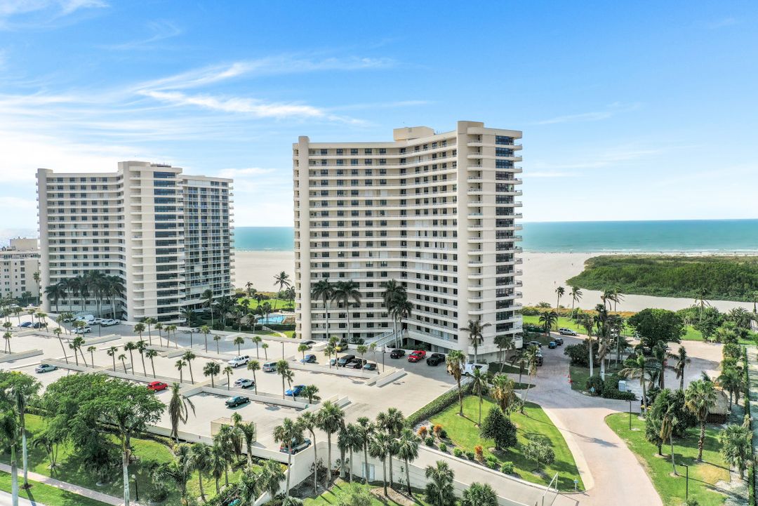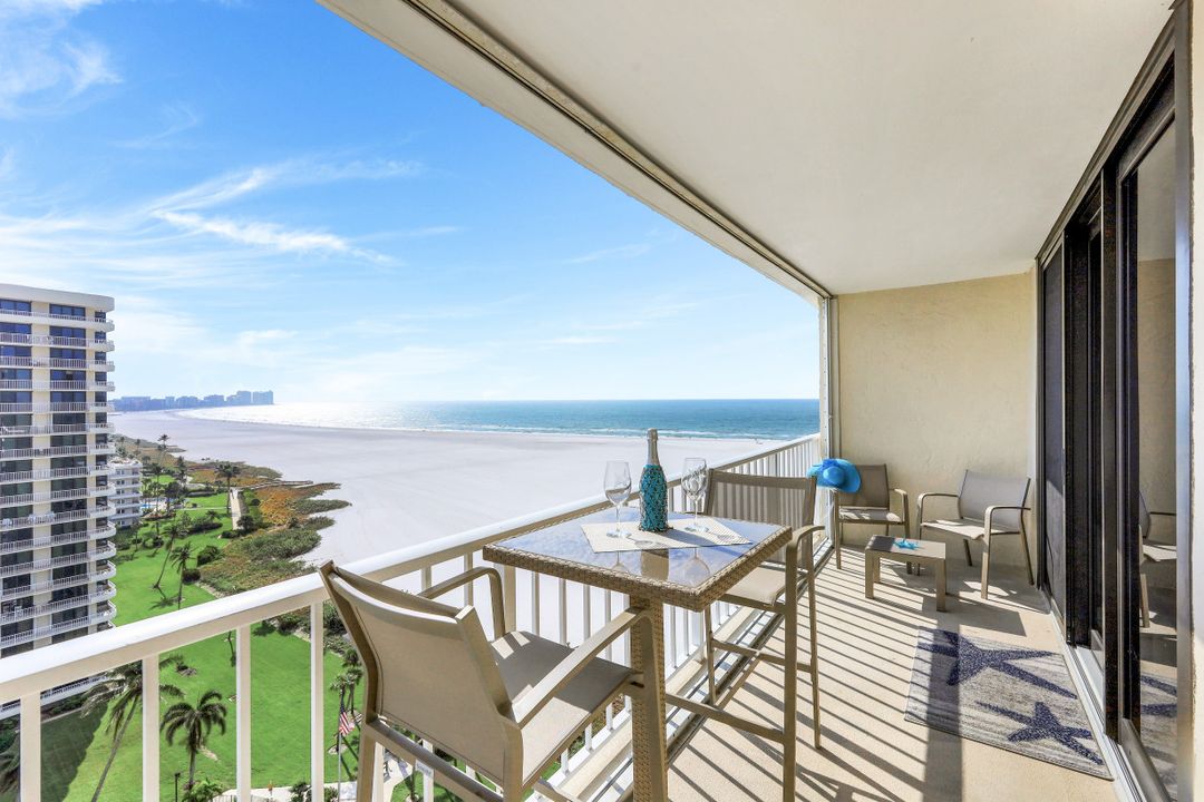 Breathtaking, sweeping wide ocean and island views from this beautiful and completely renovated condominium on the beach with vistas beyond the famous landmark of Cape Marco. Desirable open floor plan flows in a harmonious way. The Southwestern exposure allows for plenty of light and brightness. The functional kitchen features stainless steel appliances, granite counter tops, custom made cabinets and recess lighting. The comfortable Master bedroom connects to a beautiful open concept and modern master bathroom. Brand new high impact windows for peace of mind. Enjoy stunning gulf views from every room each one with access to the large balcony ideal to entertain, watch magnificent sunrises, sunbathe, or just simply relax while looking at the mesmerizing scenery, exotic birds flying by while listening to the soothing sound of the waves. The building is undergoing a top-notch renovation. South Seas is the only community on Marco Island offering beach and bay access with boat docks available for lease. Beautiful manicured landscaped grounds and great amenities including pool, tennis and pickleball courts, bike storage, social, meeting and exercise rooms, shuffleboard, barbecue-picnic area and on-site management. All this in a centrally located gated community close to shops and restaurants. Offered turnkey furnished. Paradise awaits you!