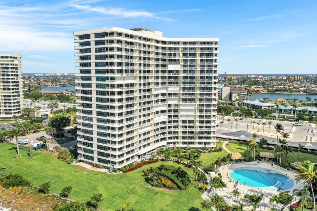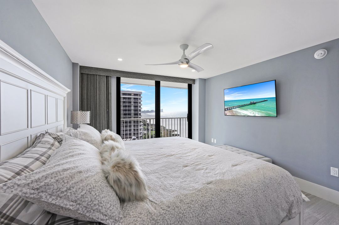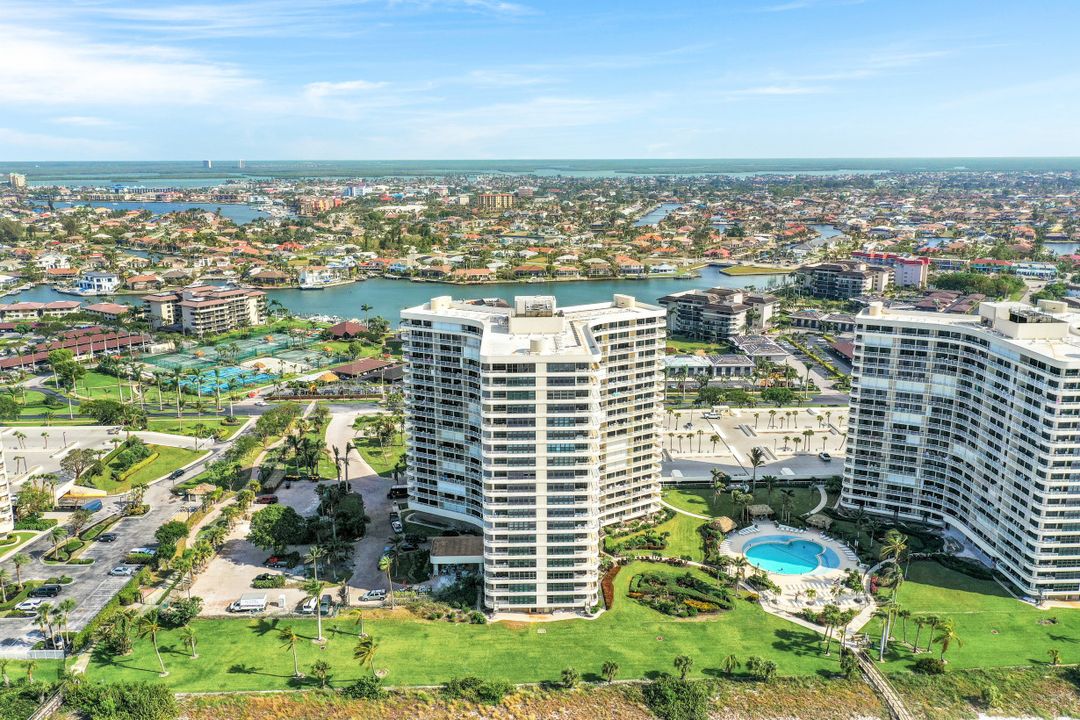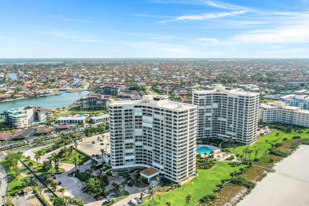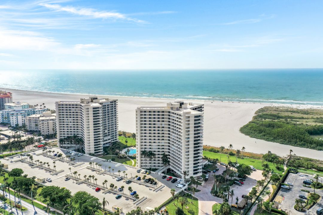Breathtaking, sweeping wide ocean and island views from this beautiful and completely renovated condominium on the beach with vistas beyond the famous landmark of Cape Marco. Desirable open floor plan flows in a harmonious way. The Southwestern exposure allows for plenty of light and brightness. The functional kitchen features stainless steel appliances, granite counter tops, custom made cabinets and recess lighting. The comfortable Master bedroom connects to a beautiful open concept and modern master bathroom. Brand new high impact windows for peace of mind. Enjoy stunning gulf views from every room each one with access to the large balcony ideal to entertain, watch magnificent sunrises, sunbathe, or just simply relax while looking at the mesmerizing scenery, exotic birds flying by while listening to the soothing sound of the waves. The building is undergoing a top-notch renovation. South Seas is the only community on Marco Island offering beach and bay access with boat docks available for lease. Beautiful manicured landscaped grounds and great amenities including pool, tennis and pickleball courts, bike storage, social, meeting and exercise rooms, shuffleboard, barbecue-picnic area and on-site management. All this in a centrally located gated community close to shops and restaurants. Offered turnkey furnished. Paradise awaits you!