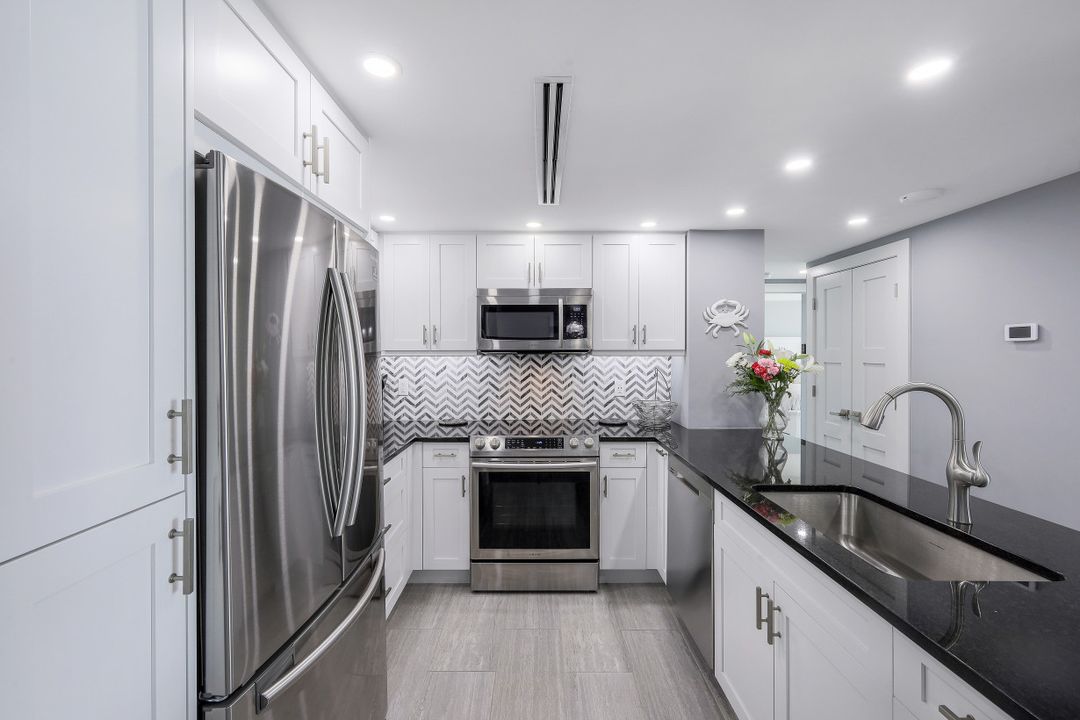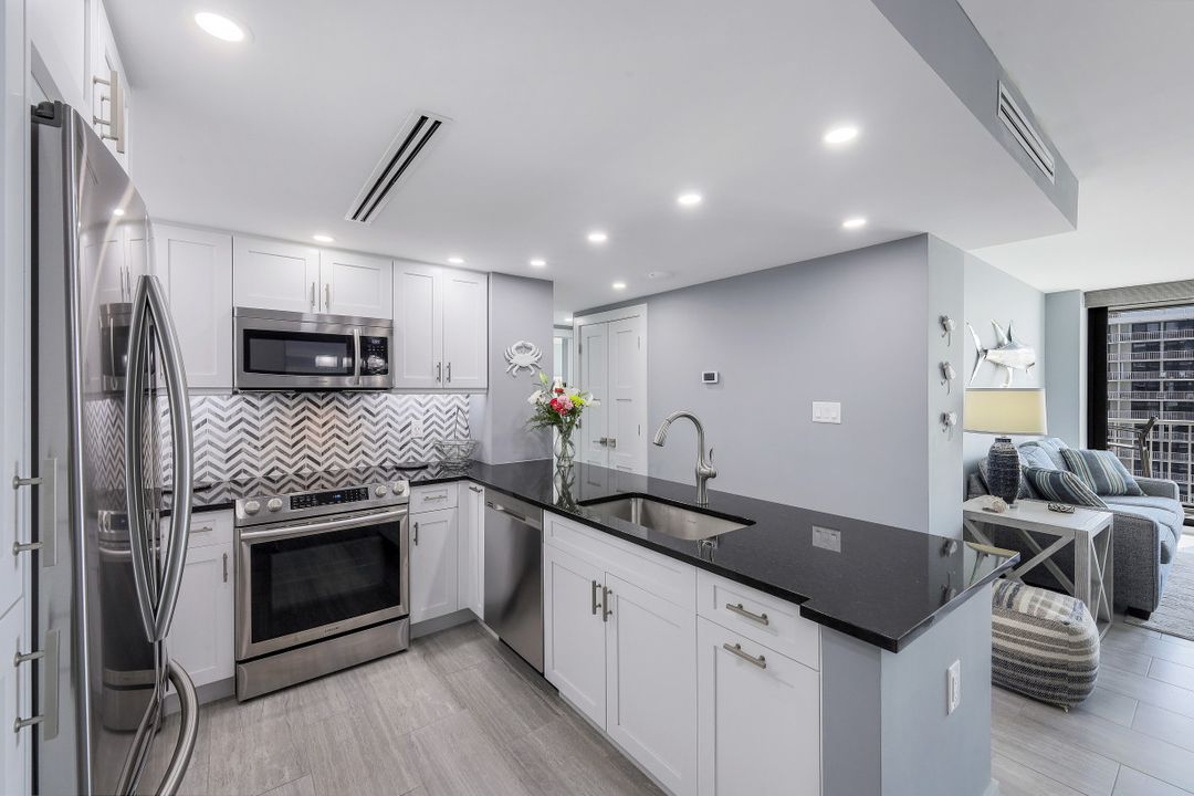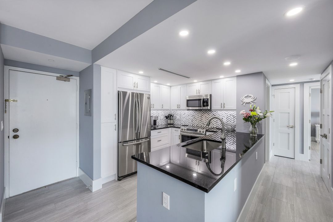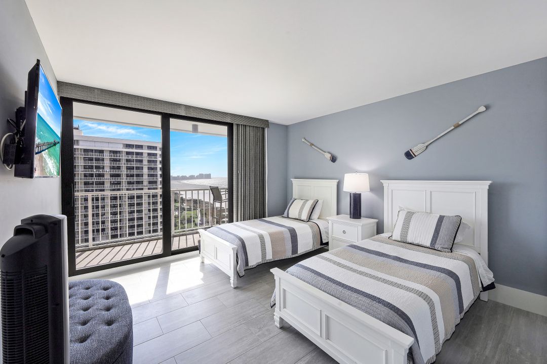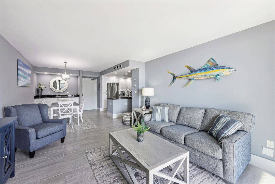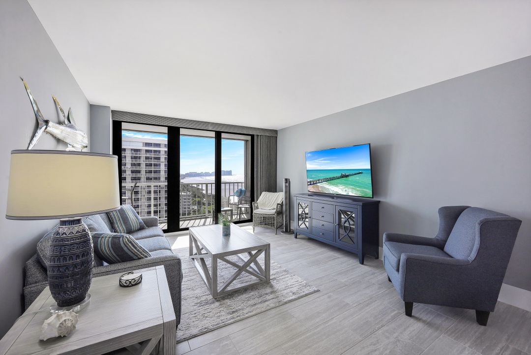 Breathtaking, sweeping wide ocean and island views from this beautiful and completely renovated condominium on the beach with vistas beyond the famous landmark of Cape Marco. Desirable open floor plan flows in a harmonious way. The Southwestern exposure allows for plenty of light and brightness. The functional kitchen features stainless steel appliances, granite counter tops, custom made cabinets and recess lighting. The comfortable Master bedroom connects to a beautiful open concept and modern master bathroom. Brand new high impact windows for peace of mind. Enjoy stunning gulf views from every room each one with access to the large balcony ideal to entertain, watch magnificent sunrises, sunbathe, or just simply relax while looking at the mesmerizing scenery, exotic birds flying by while listening to the soothing sound of the waves. The building is undergoing a top-notch renovation. South Seas is the only community on Marco Island offering beach and bay access with boat docks available for lease. Beautiful manicured landscaped grounds and great amenities including pool, tennis and pickleball courts, bike storage, social, meeting and exercise rooms, shuffleboard, barbecue-picnic area and on-site management. All this in a centrally located gated community close to shops and restaurants. Offered turnkey furnished. Paradise awaits you!