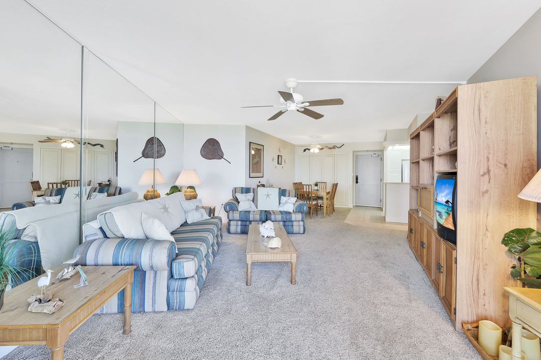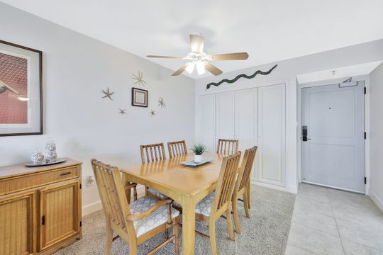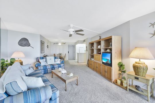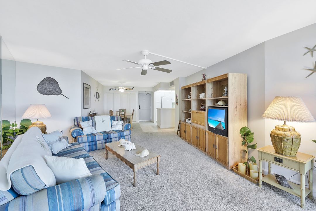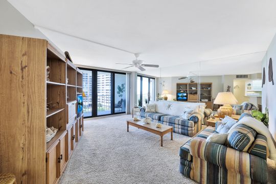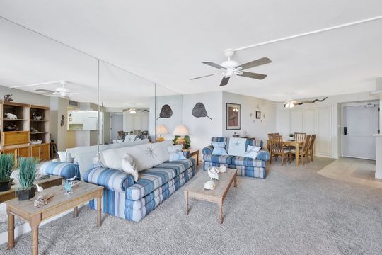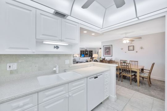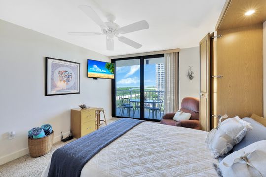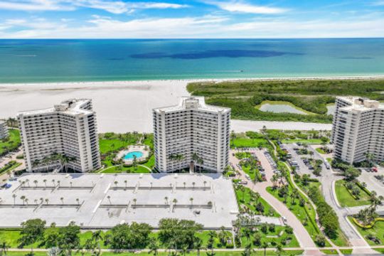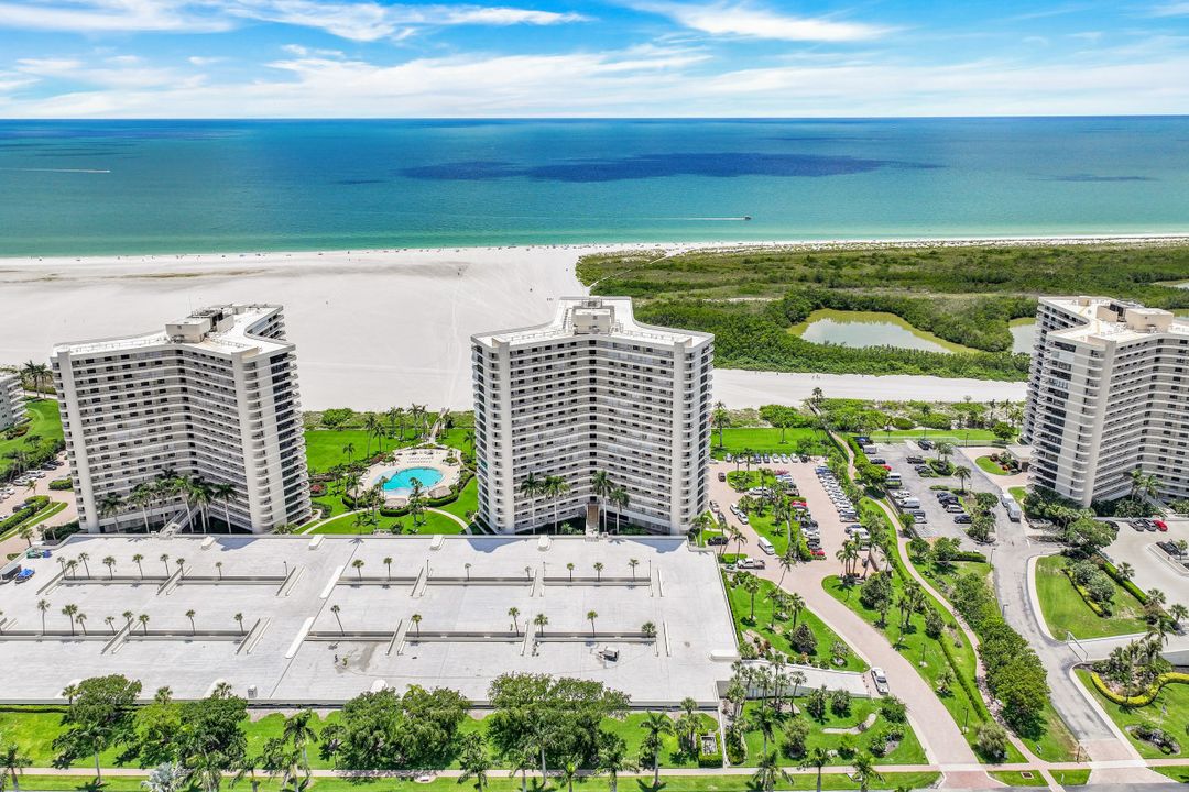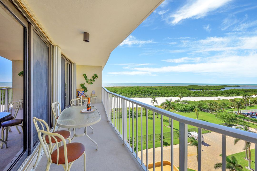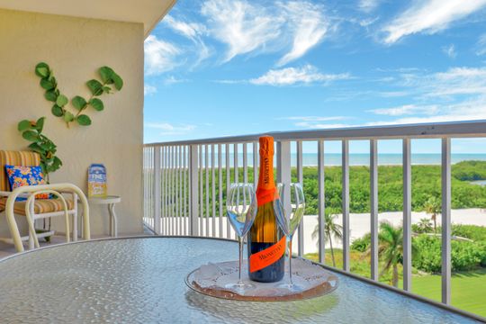 Magnificent sunsets from this charming 2-bedroom, 2-bathroom condominium offering breathtaking ocean, island and tropical views from every room including the famous Tigertail beach. High impact windows ensure maximum safety and peace of mind. Smooth ceiling throughout. Spacious living room, dining room and a functional kitchen with custom made cabinets, backsplash and recess lighting. Large balcony accessible from family room and bedrooms making it ideal to entertain, relax, and/or enjoy the serene surroundings and breeze while listening to the chirping of the exotic birds flying by. Bedrooms feature custom made closets and a Murphy bed in the guest bedroom to maximize space. The building just finished a massive, timeless, classic, top-notch interior renovation including Lobby, Social and Meeting Rooms, Bathrooms, Hallways, Doors, Updated elevators, Office/Reception, Security System, Mailroom with Amazon Hub, state of the art Fitness Center and more so come and see. South Seas is the only community on Marco Island offering beach and bay access with boat docks available for lease. Imagine being able to step out onto the sandy shores and dip your toes in the turquoise waters, or effortlessly embark on a boating adventure from the community's private dock. It's a paradise for beach lovers and boating enthusiasts alike. Beautiful manicured landscaped grounds and great amenities including pool, tennis and pickleball courts, bike storage, shuffleboard, barbecue-picnic area, and on-site management. All this in a centrally located 24-hour man gated community, close to shops and restaurants. Offered turnkey furnished, ready to move in. Paradise awaits you.