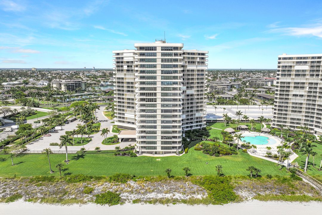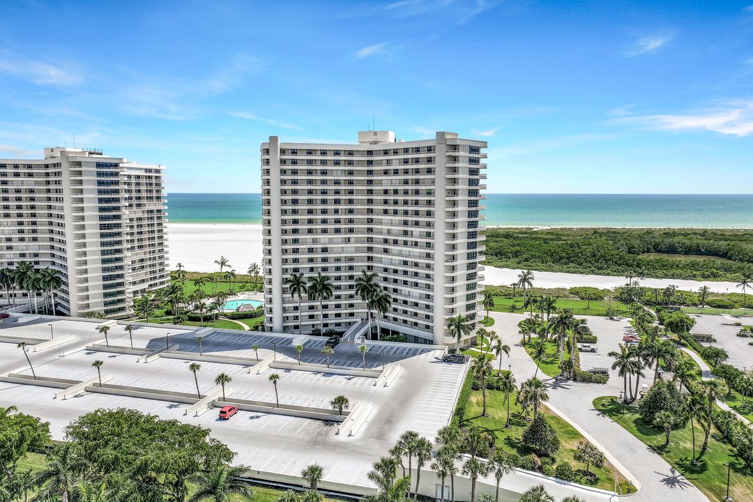 Breathtaking, sweeping, wide ocean and island views from this completely renovated condominium on the beach with vistas beyond the famous landmark of Cape Marco. Redesigned split floor plan, tile and led lighting throughout. Desirable southwestern exposure allows for plenty of light and brightness. The kitchen showcases stainless steel appliances, quartz counter tops, custom made cabinets. The guest bedroom features a Murphy bed and barn door for maximum functionality and openness. Double hurricane protection with high impact windows and accordion shutters provides extra peace of mind. Enjoy stunning gulf views from every room each one with access to the large balcony ideal to entertain, watch magnificent sunrises, sunbathe, or just simply relax while looking at the mesmerizing scenery, exotic birds flying by while listening to the soothing sound of the waves. The building features a top-notch interior renovation including Lobby, Social and Meeting Rooms, Bathrooms, Hallways, Doors, Updated elevators, Office/Reception, Security System, Mailroom with Amazon Hub, state of the art Fitness Center and more so come and see. South Seas is the only community on Marco Island offering beach and bay access with boat docks available for lease. Beautiful manicured landscaped grounds and great amenities including pool, tennis and pickleball courts, bike storage, shuffleboard, barbecue-picnic area, and on-site management. All this in a centrally located 24-hour man gated community, close to shops and restaurants. Paradise awaits you!