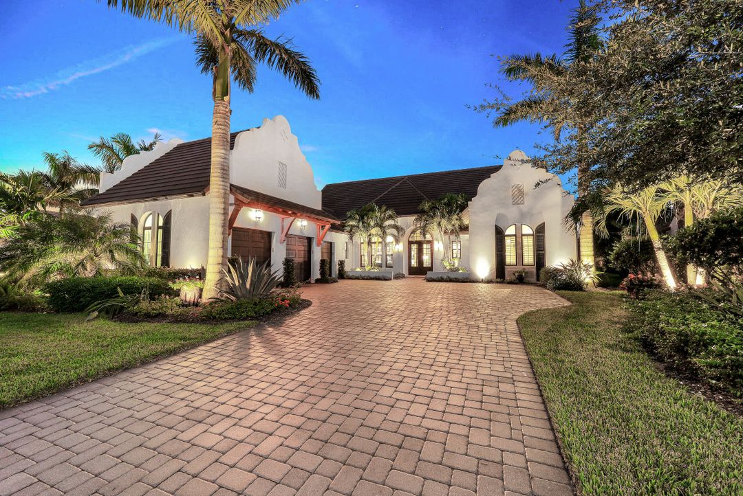 Located on an oversized extra private lot, the popular Ashton Woods Pontevedra model features 4 bedrooms plus office, 3 full baths and 2 half baths, oversized climate controlled 3 car garage, open-concept living, vaulted ceiling with beams in the great room, wood-look tile flooring, and impact glass. The kitchen features quartz counters, an island, shaker-style cabinetry and professional-grade Kitchenaid stainless steel appliances with natural gas. Numerous upgrades include 2 custom wine bars, custom built-ins in the great room, outdoor fireplace, barn doors, roll down storm smart shutters and custom outdoor kitchen. Master suite offers sitting area, makeup vanity space and bath with dual sinks, dual water closets, standalone soaking tub and shower with frameless glass door and a custom California closet. The home features an expansive outdoor custom pool and spa with fire bowls, picture frame screen enclosure and 2 covered areas. Located in the award-winning community of Fiddler's Creek with access to recreational and social activities, including tennis, fitness, resort-style pools, spa services, fine dining, a poolside bar and grill and multiple clubs. Sold furnished.