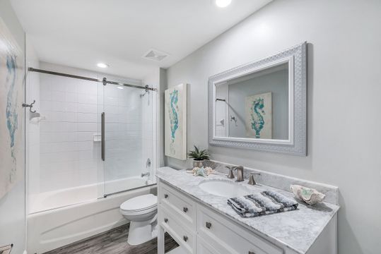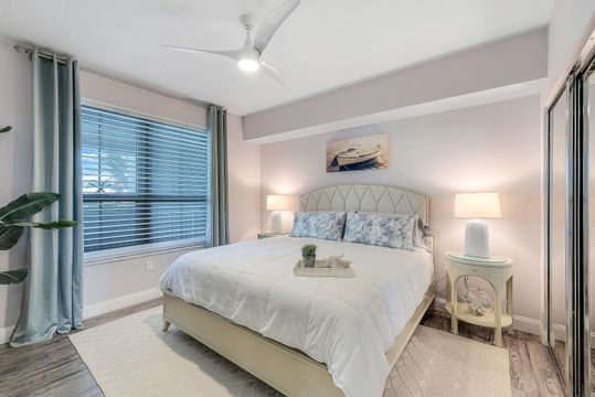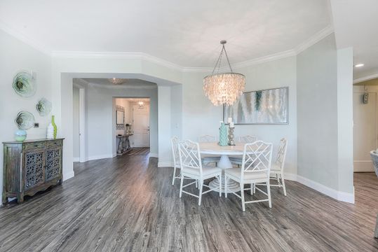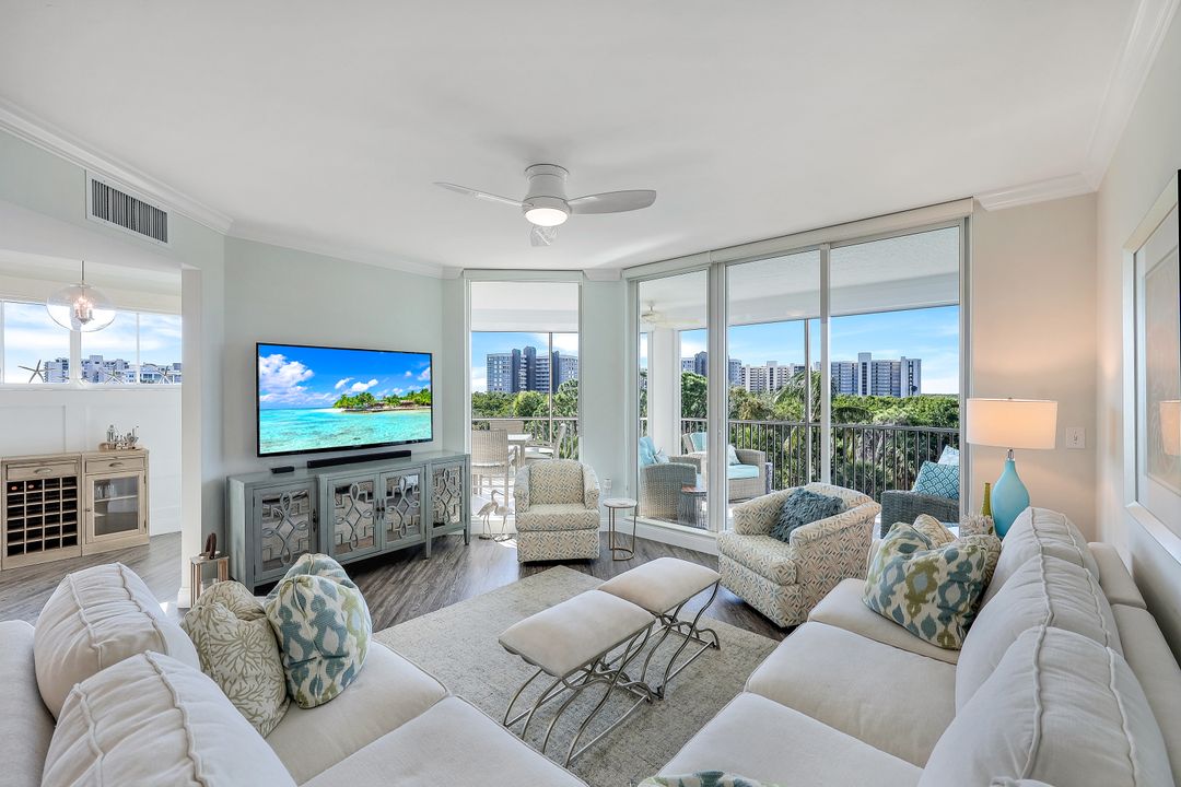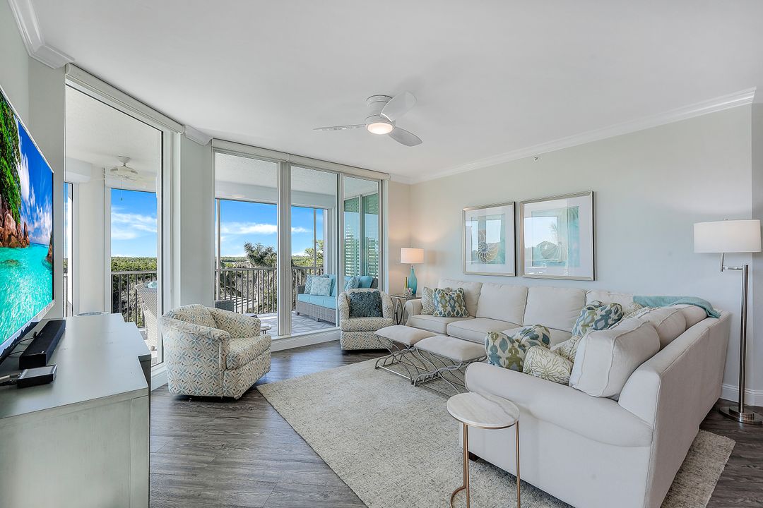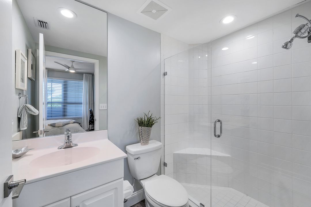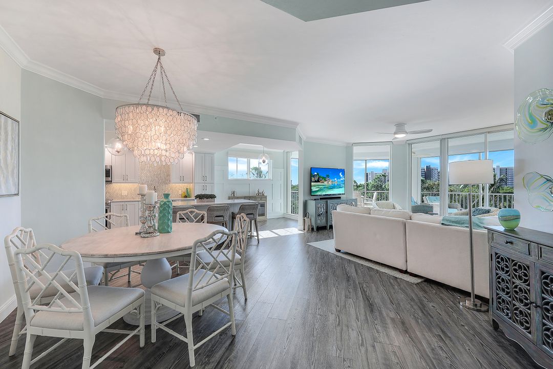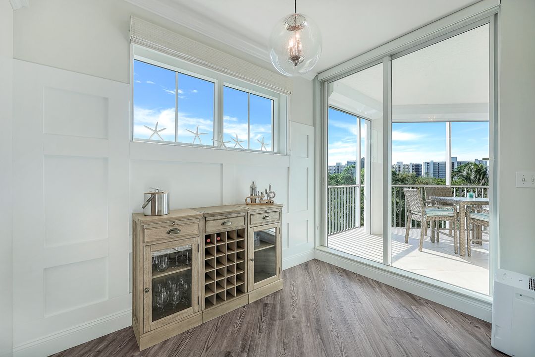 Beautiful renovation that radiates timeless coastal elegance. The light and bright open kitchen offers Shaker soft-close cabinetry by the acclaimed TNT Cabinetry of Naples, large center island with Quartz countertop, LED undermount lighting, and a Samsung appliance package with 10-yr warranty including a wine/beverage fridge in the island. The impressive upgrades include gorgeous designer lighting, Minka Aire ceiling fans, tongue and groove white ceiling planks with designer styled octagon coffered ceiling, high-end Hunter Douglas window treatment throughout, sophisticated Shaker style doors, beautiful and durable luxury vinyl plank CoreLuxe flooring with 5 1/2" baseboard and high-end silk carpet in the primary bedroom. Bathrooms feature Quartz vanity in guest bath and new custom glass shower doors. New in 2023 is a top tier Bryant HVAC and electric hurricane shutters on the lanai. The Dunes is a pet-friendly luxury community with amazing amenities! "The Club" offers upscale casual indoor/outdoor dining, a resort-style pool, wellness and fitness center, massage, physical therapy, expansive tennis program, pickleball, billiards, ping pong and shuffleboard.