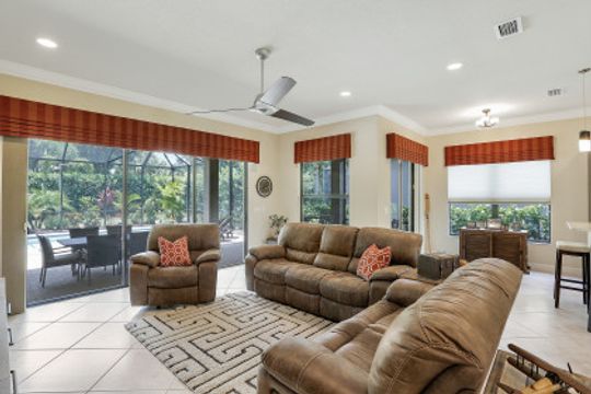 The BEST of the BEST! This immaculate "Chandon" is situated on a private & heavily landscaped lot with SOUTHERN Exposure! Featuring over $200k in upgrades such as; HURRICANE IMPACT WINDOWS & DOORS; Solid Core Doors; oversized HEATED SALT WATER 13'x34' pool w/ Outdoor Shower; Crown Molding throughout; Extra wide driveway & upgraded pavers; Upgraded Level V-VII Cabinets & Quartz/Granite countertops throughout; Upgraded appliances including Viking Refrigerator, GE Wall Oven, & drop in Cooktop; Square bath sinks; Shower tile & Mirrors to the ceiling in all Baths; 2 stage HVAC with Wifi Thermostat; Built-in Dining Room Buffet; Sculpted Carpet in the Bedrooms; Oversized 23"x23" Diagonal tile; Special Order Lights/Fans; Closet Organizers throughout; Garage Epoxy floor; Custom Window Treatments. Riverstone offers new modern living offering Resort Style Pool, Lap Pool, Hot Tub, Kiddie Water Park, Outdoor Party Pavilion, Tennis Courts, Tot Lot, A/C Indoor Sports Court, Soccer Field, Social Rooms, Billiards Room, Dance Studio, 24/7 manned gate, & more! Riverstone is conveniently located just 2 min from I75, 15 min to the Beach, and 20 min to 5th Ave/Coconut Point/RSW Airport.