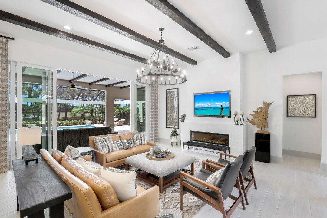 Located on a one of a kind lot, this home offers a private and a peaceful golf course and lake setting . The popular Ashton Woods Tavernelle floor plan features 4-bedroom plus office, 4.5-bath, open-concept living, ceiling with stained beams in the great room, wood-look tile flooring, French doors and impact glass. The well-equipped kitchen features Cambria® quartz countertops, a center island, shaker-style cabinetry and professional-grade Jenn-Air stainless steel appliances with gas for cooking. Numerous upgrades include a whole-home generator, Fireplace, plantation shutters, impact glass, and Custom outdoor kitchen. Master suite offers extensive golf course/lake views and bath with dual sinks, stand-alone soaking tub and shower with frameless glass door. The home features an expansive outdoor travertine deck with custom pool and spa with light up fountains, colonnade screen enclosure and massive covered space. Located in the award-winning community of Fiddler's Creek with access to recreational and social activities, including tennis, fitness, resort-style pools, spa services, fine dining, a poolside bar and grill and multiple clubs. Sold furnished.