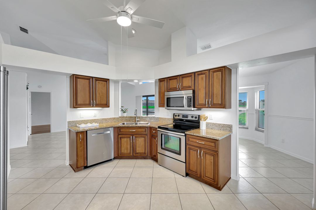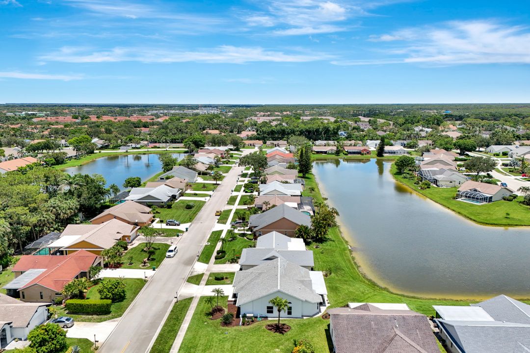 Take note of this very special lakefront home, perfectly positioned on a desirable corner lot in the family-friendly neighborhood of Regent Park. With an extended side yard, sweeping long lake views, and coveted Southern exposure, this meticulously maintained residence offers unique features in the community. Freshly painted inside and out and enhanced with new landscaping, all new ceiling fans, new light switches, outlets and hardware, this home radiates a crisp, clean feel; move-in ready from day one. Impact-resistant windows throughout, a Kohler whole-house generator with a buried propane tank, a seven-year-old roof, and a no-flood zone location provide lasting peace of mind. Just steps away, enjoy the community’s heated pool and lighted tennis/basketball courts which are both included in the remarkably low HOA fees of just $433 per year. Located in top-rated school zones: Pelican Marsh Elementary, North Naples Middle, and the brand-new Aubrey Rogers High School. This home is a rare opportunity offering exceptional value for this wonderful Naples lifestyle!