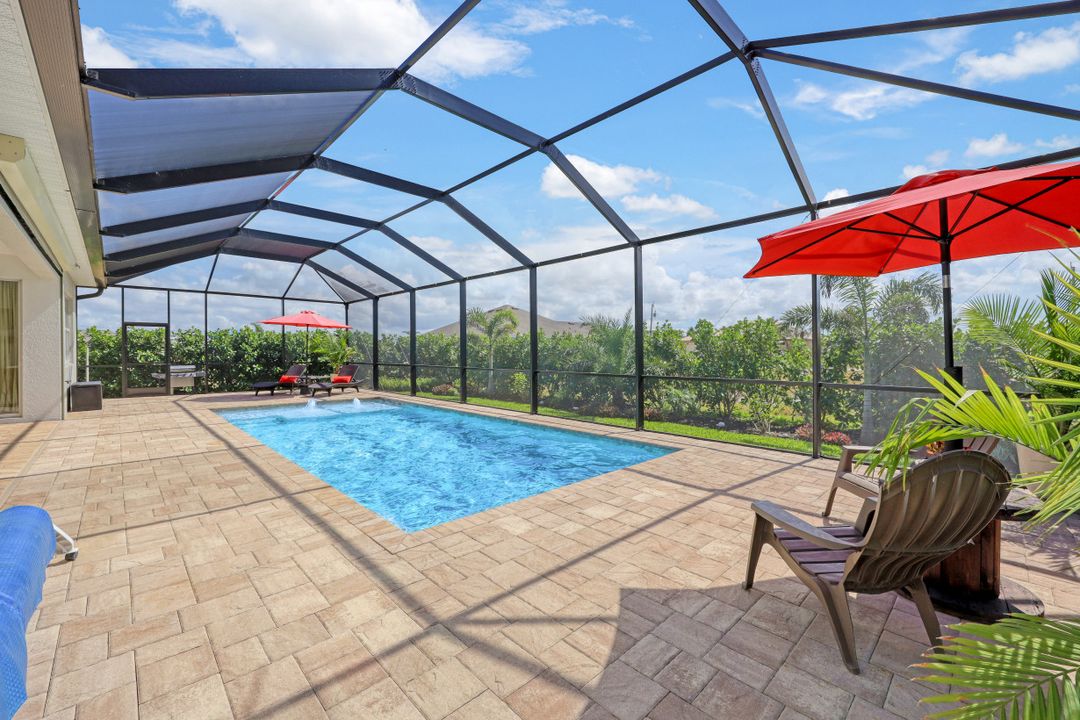 NEWER BUILT POOL HOME! This stunning home, built in 2020 to meet the toughest industry standards, is ready for you now! Featuring 4 bedrooms, 2 bathrooms, and a 2-car garage with just under 2,200 sqft of living space, this southern exposure home offers the perfect combination of style and functionality. The open great room floor plan is filled with natural light, thanks to a wall of sliders, and includes porcelain tile throughout the main living areas. The kitchen boasts a large center island, granite countertops, stainless steel appliances, and plenty of cabinet space, making it a chef's dream. The primary suite is a retreat with two spacious walk-in closets, dual sinks, granite countertops, and a tiled shower. Spare bedrooms are generously sized, each with their own walk-in closet for ample storage. Outdoor living truly shines with a large covered sitting area, screened sun deck, and a crystal blue heated chlorine pool complete with a sun shelf. The pool and yard are surrounded by a lush clusia hedge, offering maximum privacy. Conveniently located on city water with assessments paid, this home is close to the 7 Islands project, Pine Island Corridor, shopping, dining, parks, and more! It's just a short drive to enjoy everything Southwest Florida has to offer, including white sandy beaches, world-class fishing, boating, kayaking, paddleboarding, tubing, and jet skiing. This home is ready for you to move in and start enjoying the best of SWFL living!