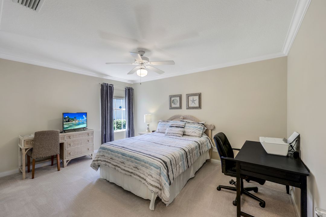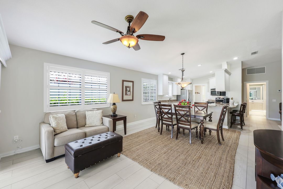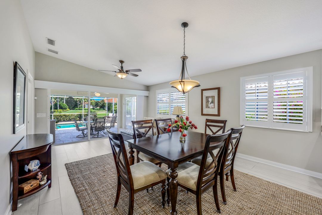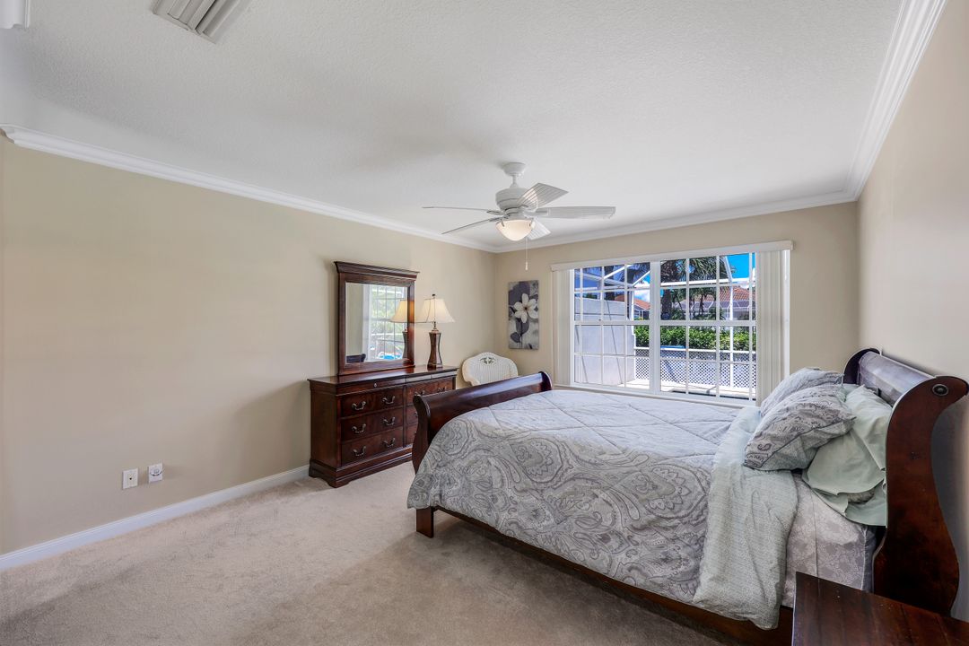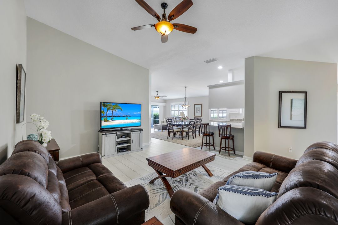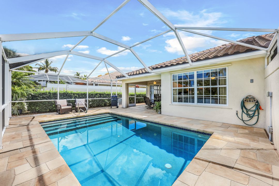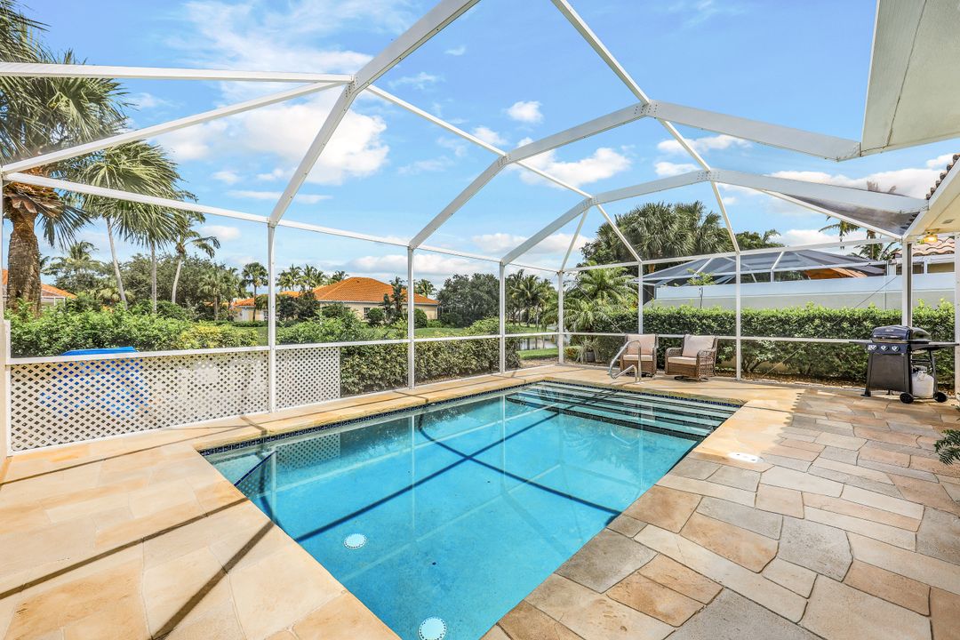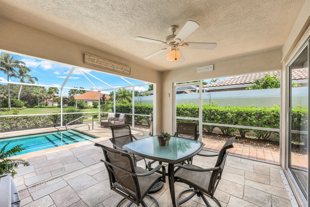 Lakefront 2-bedroom+den villa in fabulous ISLAND WALK with 2-car garage, heated pool, new roof (2021), new luxury vinyl flooring, new paint, new flooring in bathrooms, updated travertine pool deck, granite counters in kitchen, stainless steel appliances, plantation shutters, privacy shades on sliding doors, bedrooms with crown molding and walk-in California-style closets. Available furnished or unfurnished.