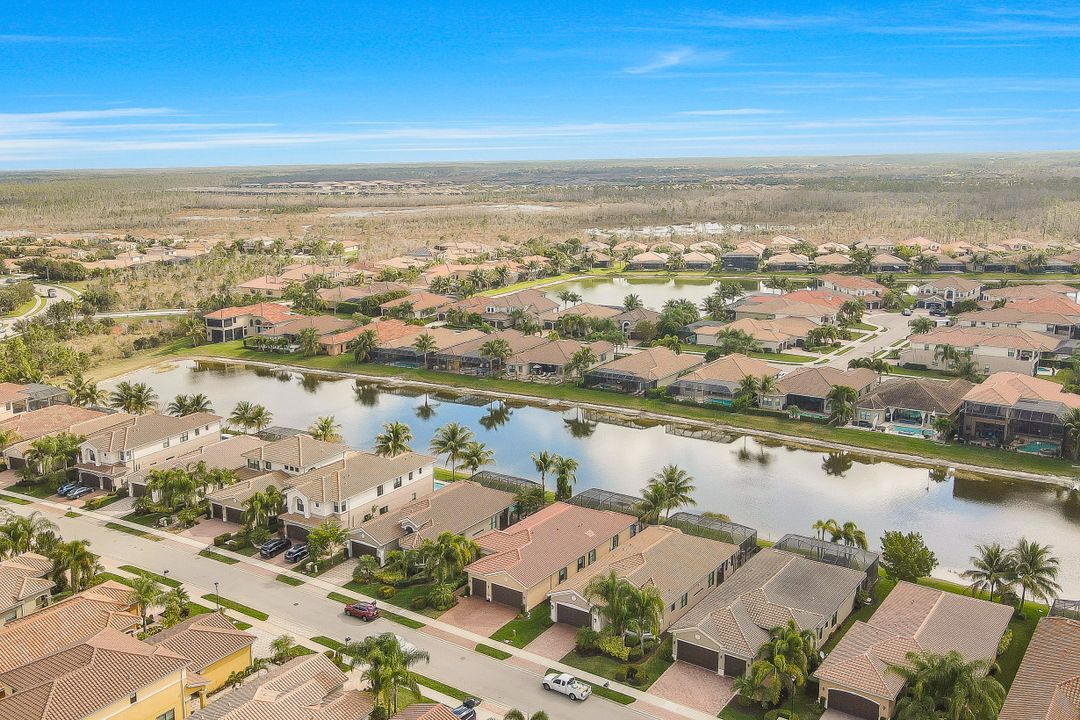 Welcome to this light & bright coastal inspired home where everyday living feels like a vacation. Savor your morning coffee in the large screened lanai watching the sunrise over the sparkling lake & spend the afternoon lounging in the sun after a refreshing dip in your pool. Upon entering the spacious foyer, you will be drawn to the contemporary, easy to care for 12x24 tile floor. There is a fantastic built-in in the great room that is just as beautiful as it is functional. The gourmet kitchen is the crown jewel of the home with Level IV white cabinets (many with pull-outs), cabinet lighting, upgraded appliances including electric cooktop & double oven, quartz counters & backsplash. Work from home is a breeze in the nice sized den. Move-in ready with custom closets throughout, garage storage, ceiling fans, upgraded lighting & window treatments in place. Easy storm prep with impact windows & doors on front & attached shutters on sides & rear. Riverstone offers a social, vacation-inspired lifestyle for all ages. Including fitness facilities, social hall, resort & lap pools, spa, 5 Har-Tru tennis courts, basketball & pickleball courts, tot lot, & full-time activities director.