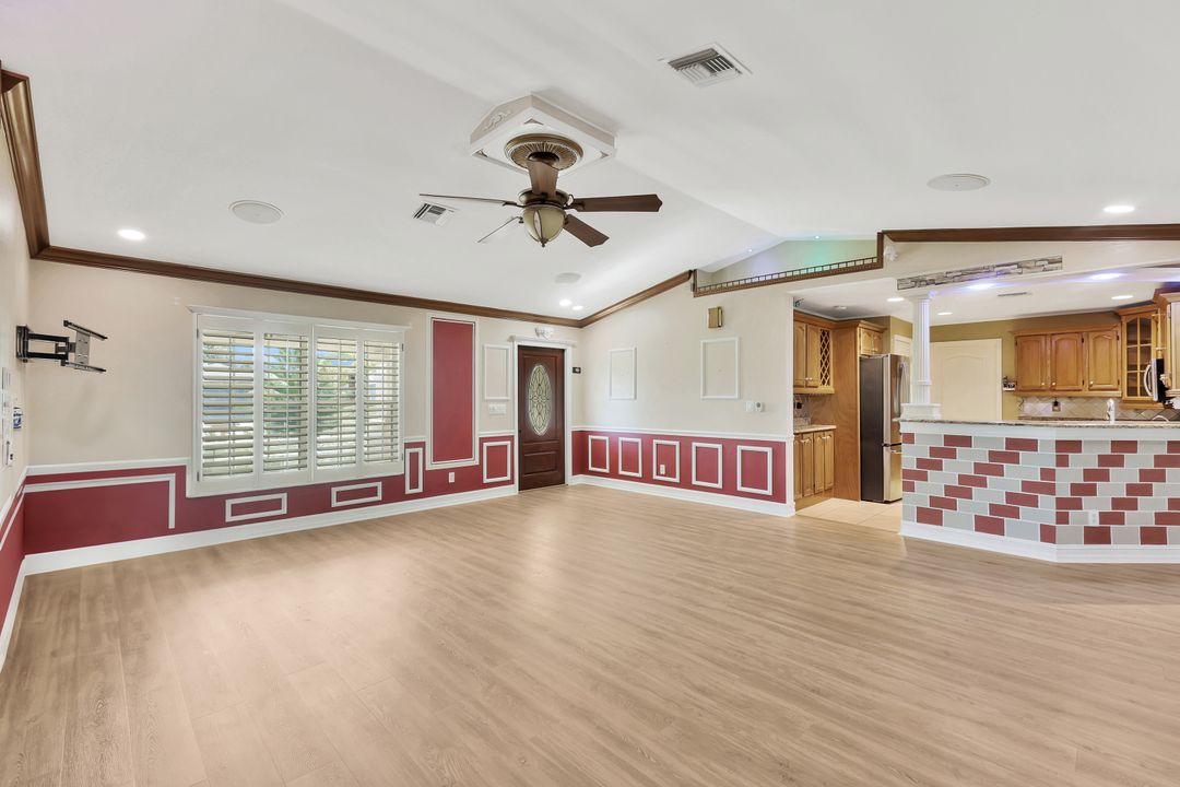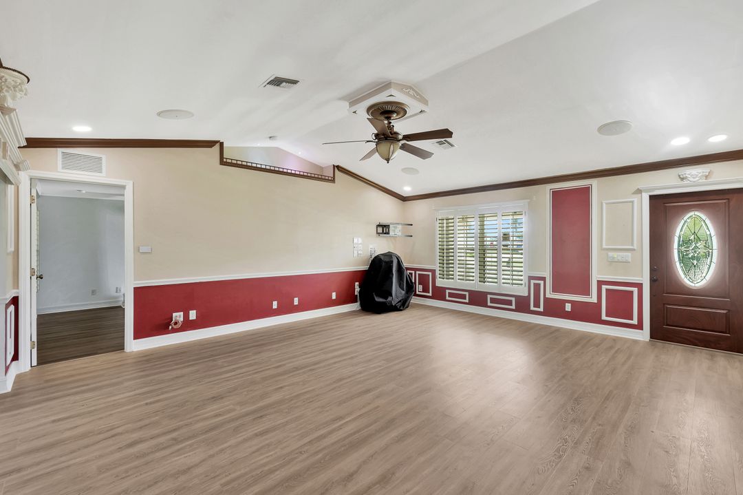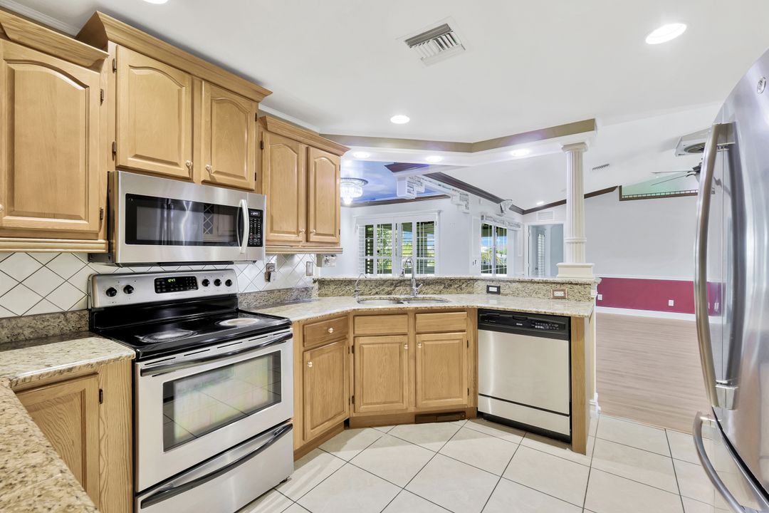 Calling all music lovers! These homeowners have spared no expense for an exceptional sound and, with $10,000 multi-channel audio system throughout the entire home! Exceptional upgrades everywhere including NEW ROOF, new A/C (2021), new front door (2021), marble/stone front entry, remodeled master bath, accordion storm shutters, crown molding and 5” baseboards throughout, solid wood cabinets and granite in the kitchen, wood plantation shutters on all windows, custom ambient LED lighting, security cameras, and so much more! Located on a large corner lot with mature fruit trees and no flood insurance required!
