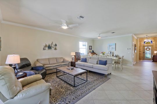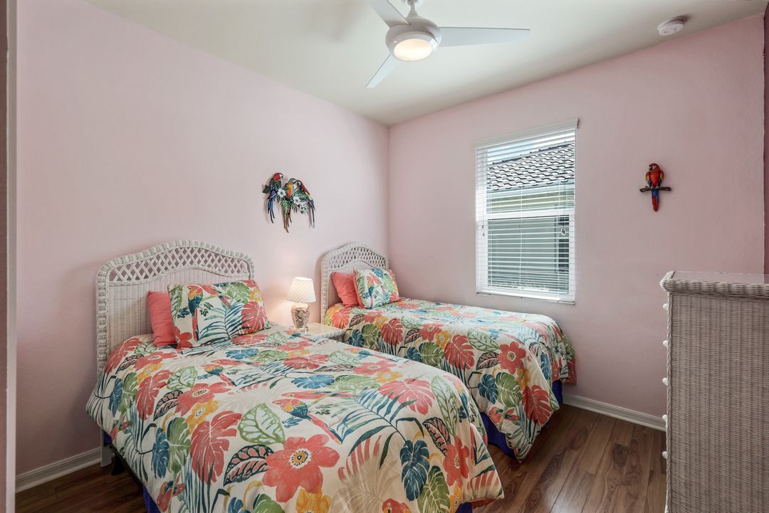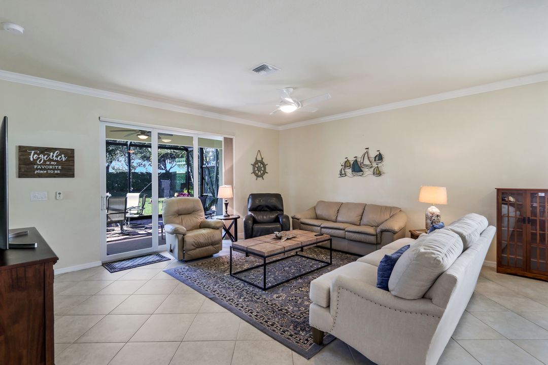Welcome Home! Check out this 4BR/3BA Haven in Bella Vida! Immaculate home with a remodeled guest bath featuring granite countertops and a cornerstone shower. The master bath is a sanctuary with custom cabinetry and granite. Hurricane impact windows ensure safety. The Chef's kitchen boasts stainless steel appliances, including a Kenmore quiet dishwasher. Diagonal tiles in living areas, solid wood in the master, and laminate wood in guest bedrooms. Crown molding adds an elegant touch throughout the common areas. Custom window treatments, fans, and dimmable light fixtures enhance ambiance. Extras include a Culligan water softener, reverse osmosis, gutters, and meticulously maintained landscaping. Enjoy Florida sunsets from the paved brick screened-in extended lanai. The widened front driveway with pavers adds to curb appeal. No storm damage from Hurricane Ian. Nestled in Bella Vida—a gated community with sidewalks, a community pool, clubhouse, playground, park, tennis, volleyball, basketball courts, and a fitness center. Low HOA fees cover lawn and shrub maintenance, watering, cable TV, and WiFi. The tax bill includes CDD.