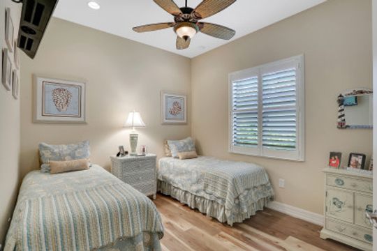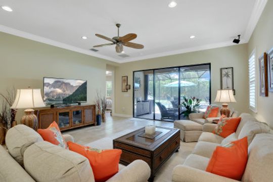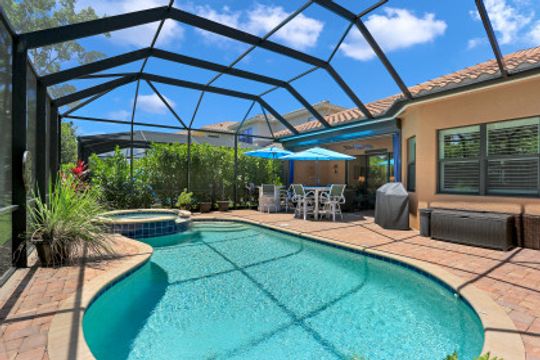 Built in 2015, this immaculate "Tribeca" is situated on a private, extra deep lot surrounded by lush landscaping and features 3 Bedrooms, Den, and 2.5 Baths. Prime SOUTHERN EXPOSURE and a great room style floorplan make this home light & bright 365 days a year! A long list of special features include; HURRICANE IMPACT WINDOWS & DOORS; Electric roll down shutter on the lanai; "Model View" Kitchen with upgraded wood cabinets and soft close drawers/doors; oversized crown molding; plantation shutters throughout; oversized tile floors; wood floors in the bedrooms; widened driveway with upgraded pavers; 8' doors; Heated salt water pool/spa; and more! Located at the end of a quiet cul-de-sac street just steps away from "The Club at Riverstone". Riverstone offers an amazing clubhouse, which features a Resort Style Pool, Lap Pool, Hot Tub, Kiddie Water Park, Outdoor Party Pavilion, Tennis Courts, Tot Lot, A/C Indoor Sports Court, Soccer Field, Social Rooms, Billiards Room, Dance Studio, & more! Riverstone is conveniently located just 2 min from I75, 15 min to the Beach, and 20 min to 5th Ave/Coconut Point/RSW Airport.