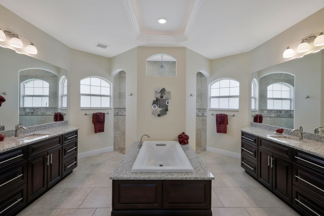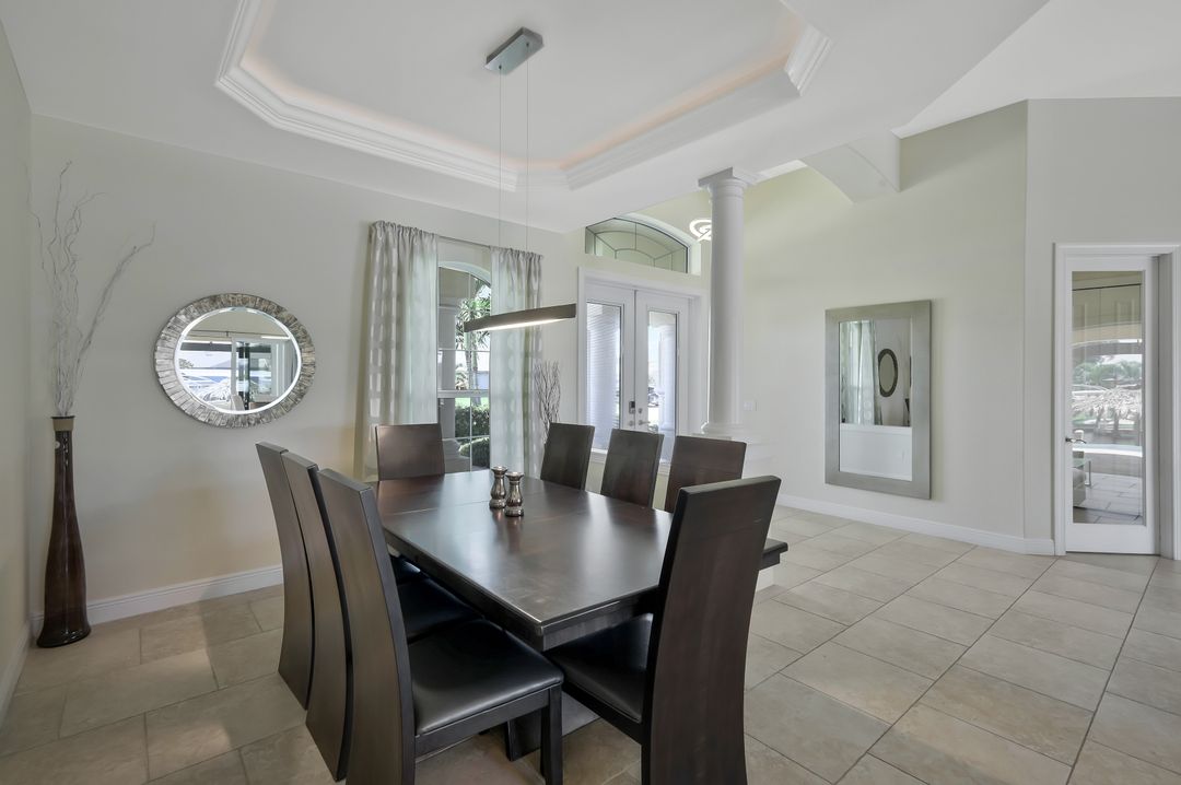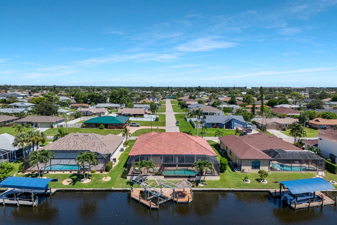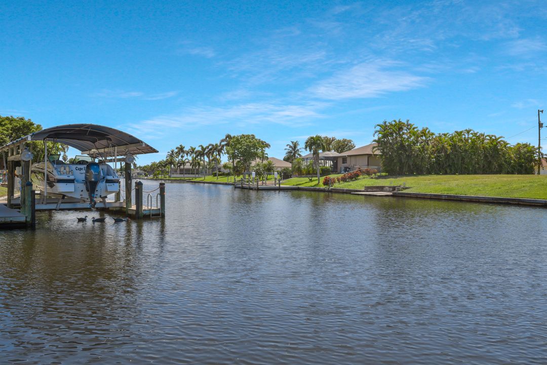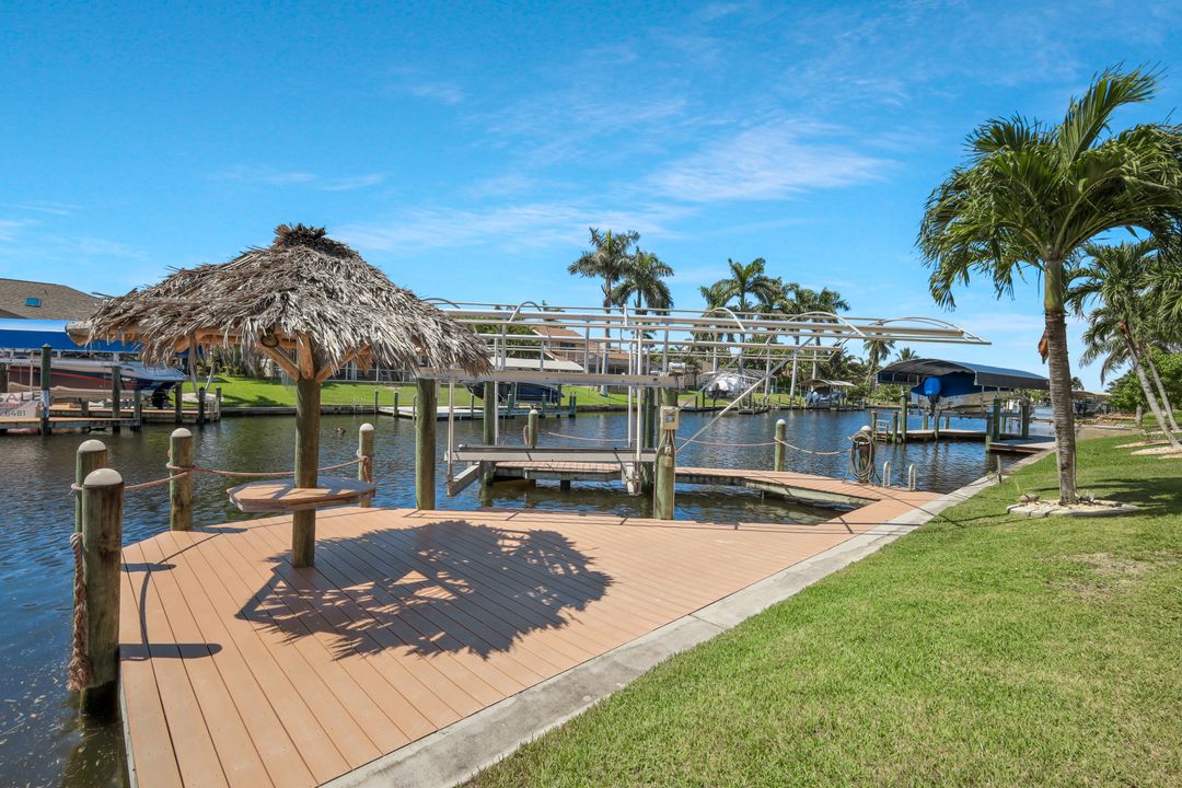 Step outside to your private tropical retreat featuring a heated infinity saltwater pool with spa, 10,000 lb boat lift with canopy, and a custom tiki hut—ideal for waterfront relaxation and entertaining. The tile roof adds lasting beauty and durability, and the western rear exposure lets you enjoy spectacular Florida sunsets from your own backyard oasis.