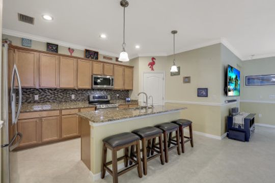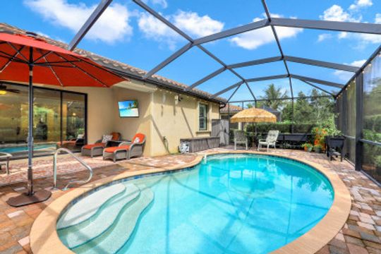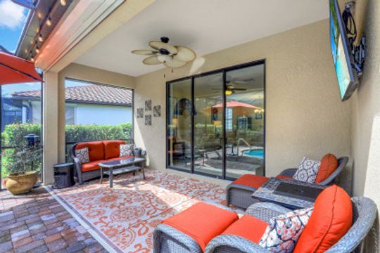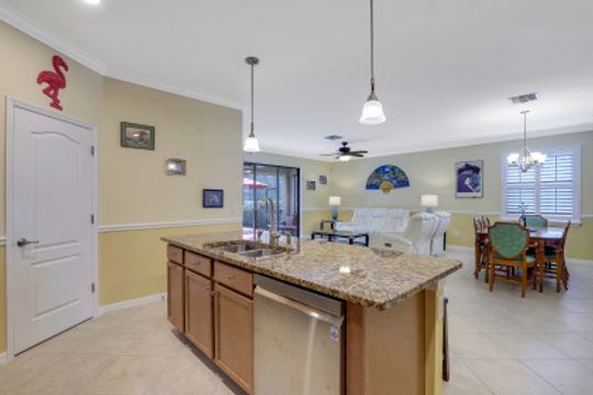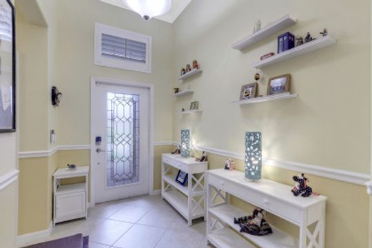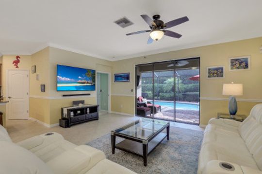 Welcome to paradise where comfort and tropical flavor await you. This desirable 3 Bedroom–3 full Bath plus Den Trevi open floor plan model has it all. It offers a spacious dining and family room blending perfectly with the inviting and functional kitchen featuring custom made cabinets and pullout shelving, stainless steel appliances, back splash, granite counter tops and extra lighting. A perfect setting to entertain, cook or dine. High ceilings, crown molding, chair railing, generator, air-conditioned Garage, plantation and roll back hurricane shutters add to the value of this great residence. The inviting lanai features a large solar heated pool and several sitting areas, surrounded by lush tropical foliage creating your own private oasis to enjoy that happy hour drink or just simply relax. Copper Cove has no CDD and is minutes to the Coral Isle Golf Center and to the beach, shops and restaurants in Marco Island and Naples. A real gem to compliment your Florida lifestyle.