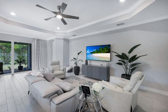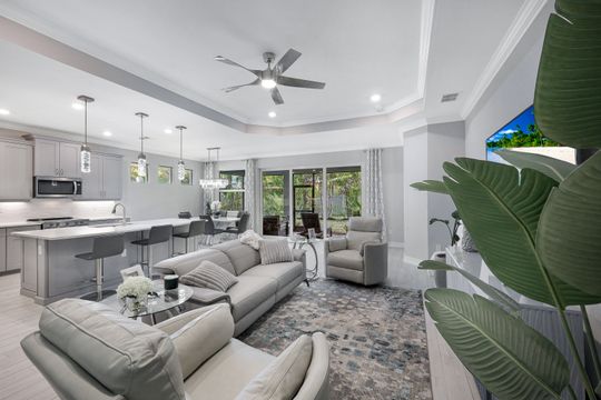 Luxury living is yours in this newly constructed, fully furnished, and meticulously decorated home, featuring brand-new fixtures throughout. Nestled on a tranquil loop in Tamarindo, an exclusive gated community, this home/lot offers a serene escape from the hustle and bustle of ongoing construction. Boasting a generous floor plan, the property offers 3 bedrooms +den/office, 2 full bath, 2 half baths, and a spacious master walk-in closet. The intelligent design also incorporates the latest smart home features. The Shelby, renowned for its expansive layout, high tray ceilings accentuated with crown molding, and upgraded appliances. Other features include tile flooring, deep soaking tub, tile shower (to ceiling) in master, impact glass and doors, pool bath, deep 32’ garage w/epoxy finish, laundry room with sink, Carrier heating/cooling and more. Need pool, expand the lanai, you’ve got room. Great location in Naples, close to beaches, shopping and schools. This brand-new development has top notch amenities with Pickle Ball, Bocce, Lap Pool, Fitness Center and more. Just like new construction with upgrades in the right places, fully furnished and no waiting. Come see.