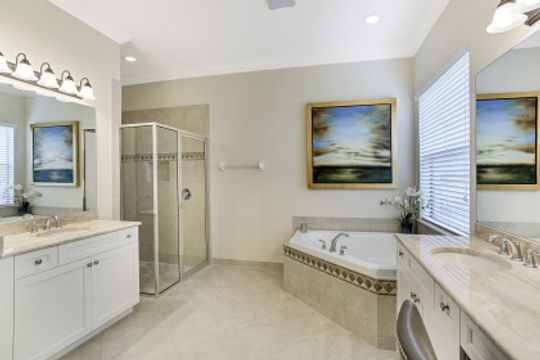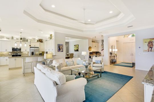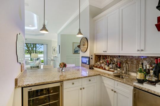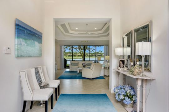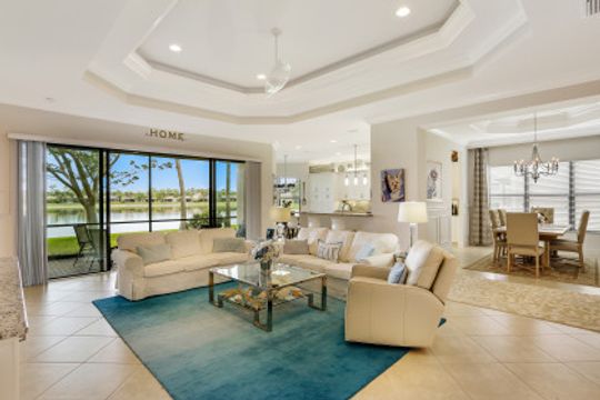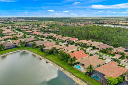 Lowest priced CARLYLE in Riverstone of Naples with the most FABULOUS lake view! So many beautiful details -- this home adorns a large lake with incredible sunset views! Move right in to this 3 BR+, 3 1/2 BA, 3 car garage home. Perfect location w/in this award winning, desirable gated community! This home sits on a premium lot w/a LONG lake view. You will be rushing home from the beach to catch the sunset from your large lanai! Home features a superb combination of finishes including tile flooring, custom molding, custom paneling & built ins, coffered ceilings & so much more! OPEN "Great Room" style floor plan, includes a formal dining rm, gourmet kitchen w/center island, breakfast rm area & WET BAR with ice maker & wine cooler. A family favorite is the "Club Room" w/custom paneling & a "hidden" door leading out to the garage.You will love the master suite as it, too, has a gorgeous lake view & beautiful en suite bathroom w/separate tub & walk-in shower. 2 dedicated guest tucked away for privacy. Large covered outdoor living area, w/room for extension &/or a custom pool. Riverstone boasts an outstanding amenity package. Minutes to RSW, dwtn Naples, beaches, dining & entertainment!