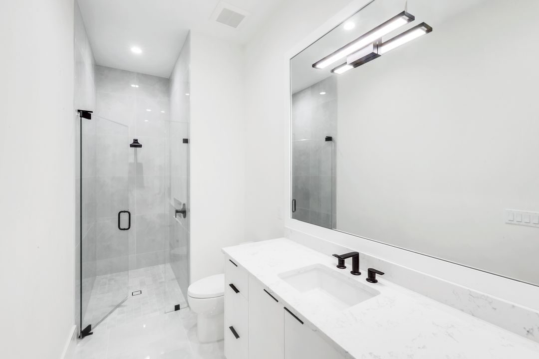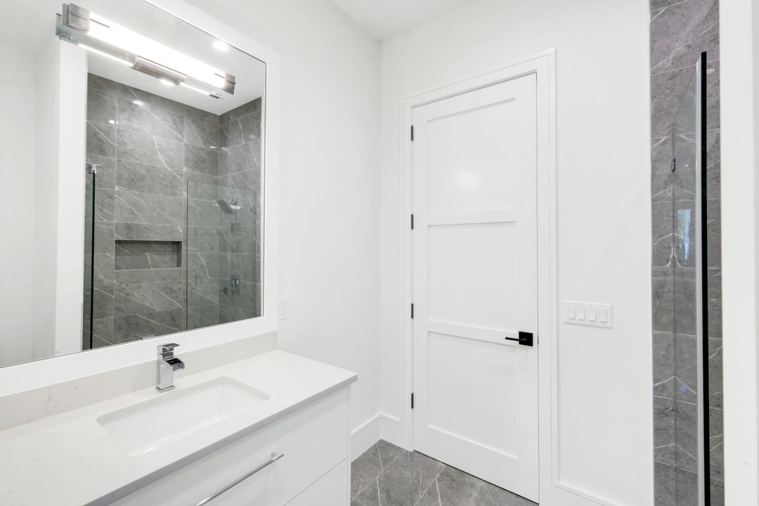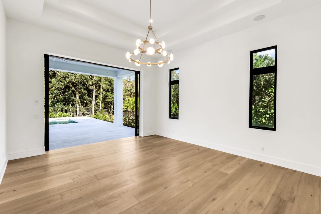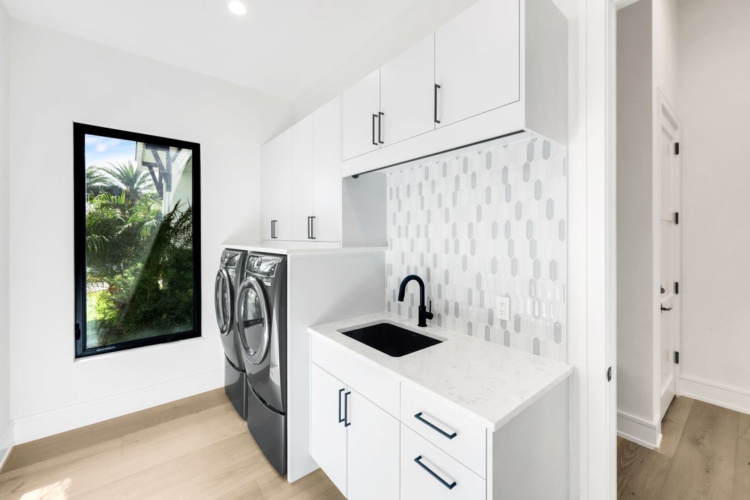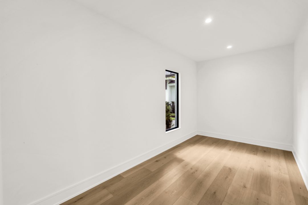 TRANSFERABLE GOLF MEMBERSHIP AVAILABLE – NO WAITLIST. Be the first to enjoy this exceptional new construction residence by Florida Lifestyle, offering immediate access to golf through a transferable membership—an extraordinary opportunity in Quail West. Privately situated at the end of a quiet cul-de-sac, the home delivers peaceful seclusion while maintaining picturesque golf course views. Designed with a desirable split floor plan, the home features four spacious en suite bedrooms, including a serene, spa-inspired primary suite with custom walk-in closets, a soaking tub, expansive multi-head walk-in shower, dual vanities, and separate water closets. A nearby study, accented by a custom shiplap feature wall, opens directly to the lanai—perfect for work or relaxation. The open-concept living area is ideal for entertaining, flowing seamlessly from the gathering room with coffered ceilings and custom lighting into the dining area and gourmet kitchen. The dining room’s elegant mirrored accent wall adds a striking architectural touch, while the chef’s kitchen is equipped with Thermador appliances, dual ovens, and an oversized breakfast bar. Enhancing functionality is a spectacular butler’s pantry featuring a second dishwasher, sink, microwave, wine refrigerator, walk-in pantry, and abundant storage—making entertaining effortless. Hurricane-rated sliding glass doors open to a generous covered lanai with outdoor kitchen and fireplace. Outdoors, unwind by the resort-style pool with sun shelf, spa, and tranquil water and fire features—your own private oasis. Located within amenity-rich Quail West, a hidden gem in North Naples, residents enjoy Platinum Club® status, ranking among the top 1% of private clubs worldwide. Amenities include two championship golf courses, an elegant clubhouse with multiple dining venues, racquet sports complex, bocce courts, state-of-the-art fitness center, full-service salon and spa, and a vibrant calendar of activities.