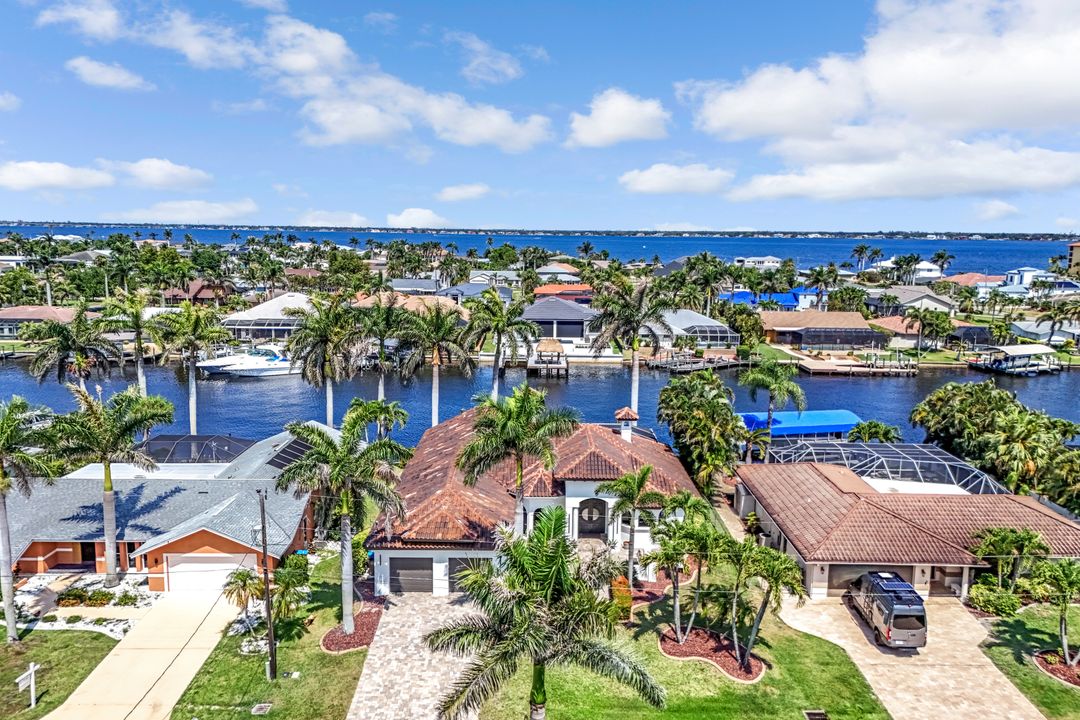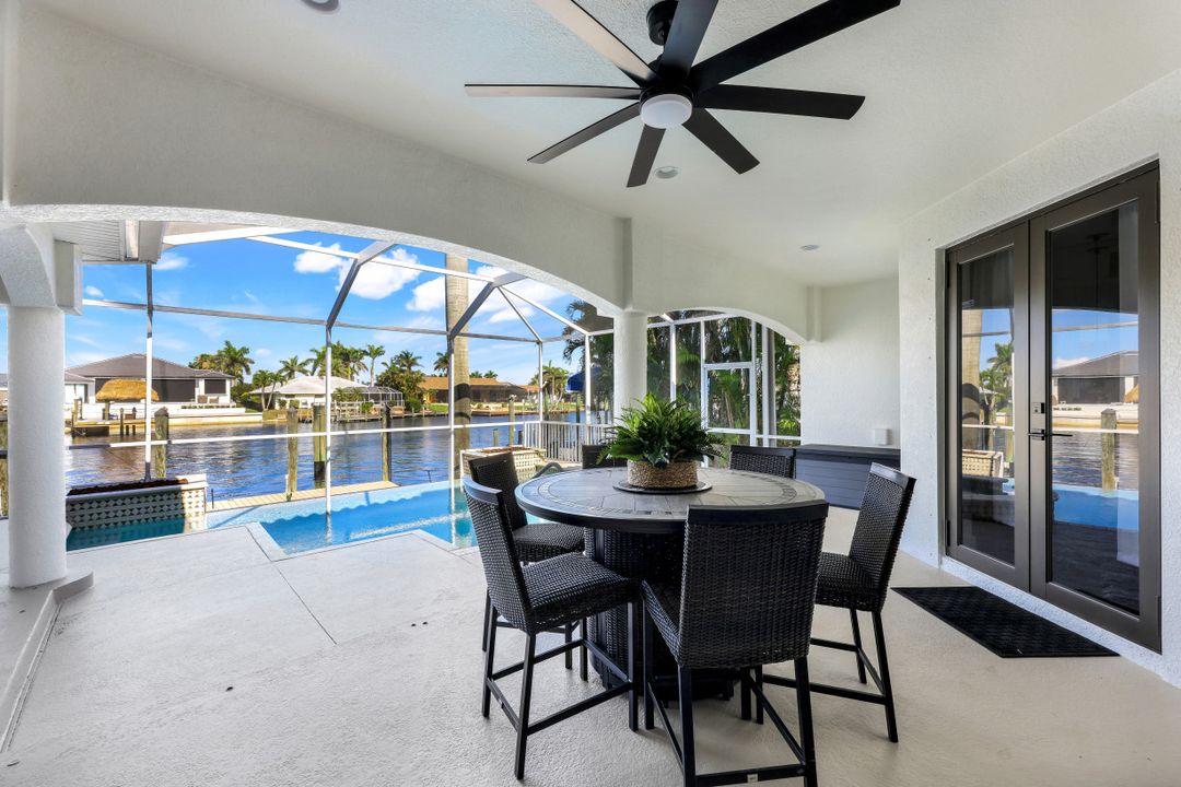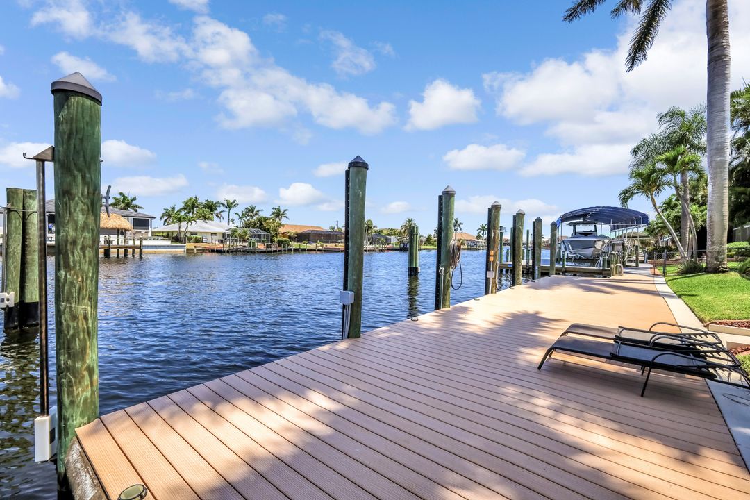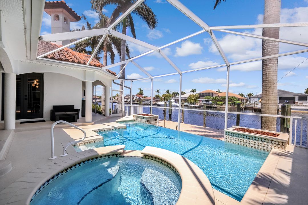 Welcome to your waterfront masterpiece in Cape Coral’s prestigious Savona boating community. This extraordinary residence offers deep water sailboat access on an oversized canal—ideal for large vessels. Just minutes from the Caloosahatchee River with no bridges, it’s a dream location for yachting enthusiasts and anyone seeking luxury waterfront living in sunny Southwest Florida. Boasting $600,000 in premium upgrades, this home has been reimagined with both elegance and functionality in mind. Highlights include 10-foot ceilings, custom lighting, upgraded insulation, newer HVAC, and a freshly painted interior and exterior. The modern open-concept layout seamlessly blends indoor and outdoor living. At the heart of the home is a chef’s kitchen, complete with: an oversized island with under-mount lighting and deep sink with disposal, Subzero 48” refrigerator/freezer, Signature 2023 appliances including a steam oven, microwave, dishwasher, wine fridge, and a custom pullout coffee bar and pot filler for added convenience. The elegant dining area seats eight and opens via French doors to a resort-style patio with tranquil water views of the Sonata Canal. The Primary bedroom suite boasts French doors to the lanai, a stunning porcelain feature wall and mirror, and a designer walk-in closet with ambient lighting. The luxurious primary ensuite boasts a floating toilet, rain showerhead, body sprays, stylish vanities, modern plumbing fixtures, and designer lighting throughout. Two additional European-inspired bathrooms offer designer finishes and floor-to-ceiling porcelain tile with LED-lit mirrors. Outdoor living is equally impressive, with a newly painted pool lanai, new lighting and ceiling fan, and upgraded pool lighting to enhance nighttime ambiance. Boaters will love the 70-foot dock and captain’s walk, complete with lighting, electrical, and water—perfect for accommodating up to a 65-foot yacht. Best of all, this home is elevated above the floodplain and has never experienced water intrusion, offering true peace of mind during storm season. Don’t miss your chance to own this exclusive waterfront oasis—schedule your private tour today!