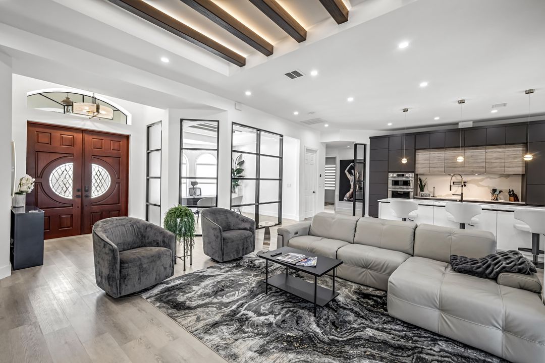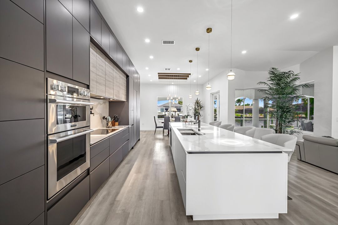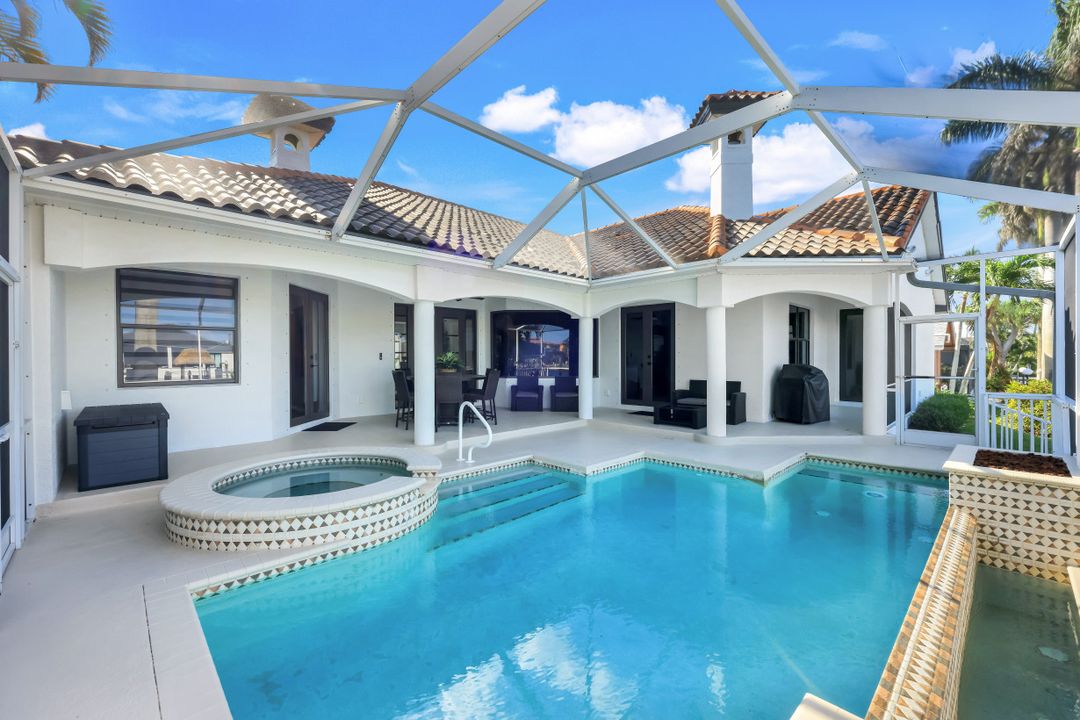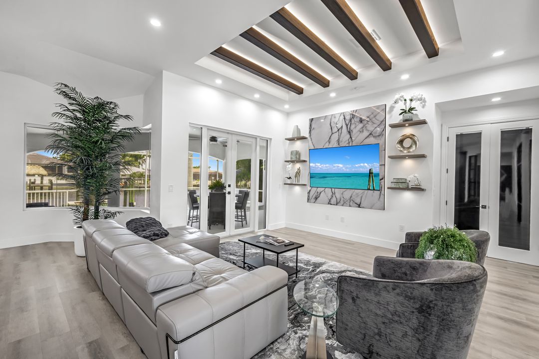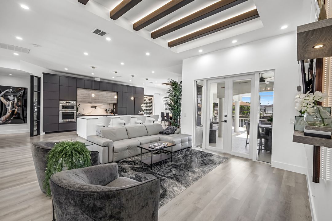 Welcome to your waterfront masterpiece in Cape Coral’s prestigious Savona boating community. This extraordinary residence offers deep water sailboat access on an oversized canal—ideal for large vessels. Just minutes from the Caloosahatchee River with no bridges, it’s a dream location for yachting enthusiasts and anyone seeking luxury waterfront living in sunny Southwest Florida. Boasting $600,000 in premium upgrades, this home has been reimagined with both elegance and functionality in mind. Highlights include 10-foot ceilings, custom lighting, upgraded insulation, newer HVAC, and a freshly painted interior and exterior. The modern open-concept layout seamlessly blends indoor and outdoor living. At the heart of the home is a chef’s kitchen, complete with: an oversized island with under-mount lighting and deep sink with disposal, Subzero 48” refrigerator/freezer, Signature 2023 appliances including a steam oven, microwave, dishwasher, wine fridge, and a custom pullout coffee bar and pot filler for added convenience. The elegant dining area seats eight and opens via French doors to a resort-style patio with tranquil water views of the Sonata Canal. The Primary bedroom suite boasts French doors to the lanai, a stunning porcelain feature wall and mirror, and a designer walk-in closet with ambient lighting. The luxurious primary ensuite boasts a floating toilet, rain showerhead, body sprays, stylish vanities, modern plumbing fixtures, and designer lighting throughout. Two additional European-inspired bathrooms offer designer finishes and floor-to-ceiling porcelain tile with LED-lit mirrors. Outdoor living is equally impressive, with a newly painted pool lanai, new lighting and ceiling fan, and upgraded pool lighting to enhance nighttime ambiance. Boaters will love the 70-foot dock and captain’s walk, complete with lighting, electrical, and water—perfect for accommodating up to a 65-foot yacht. Best of all, this home is elevated above the floodplain and has never experienced water intrusion, offering true peace of mind during storm season. Don’t miss your chance to own this exclusive waterfront oasis—schedule your private tour today!