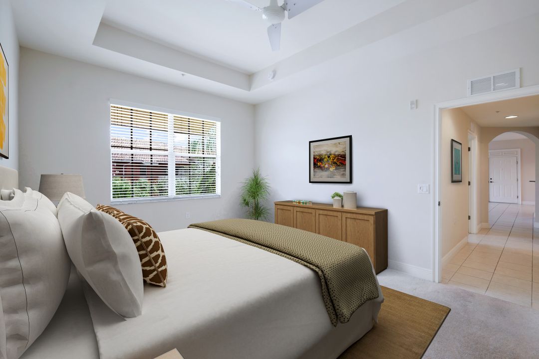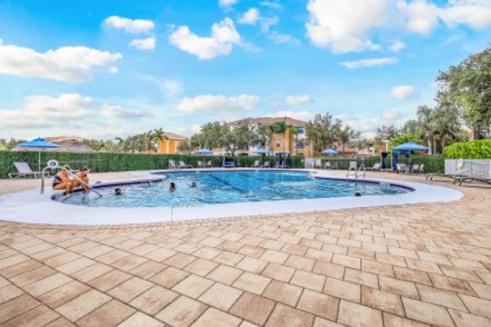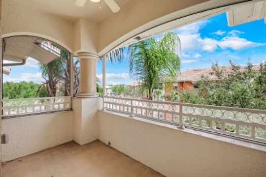 3rd floor unit located in the gated, pet friendly, community of Isles Of Porto Vista. This Barcelona floor plan is 1469 sqft of living area. Easy elevator access, 1 car private garage (#8) included. Large great room floor plan with a screened garden view lanai, indoor living room and guest room with murphy bed. Amenities include a huge pool, fitness center, clubhouse, dog park and pickleball court.