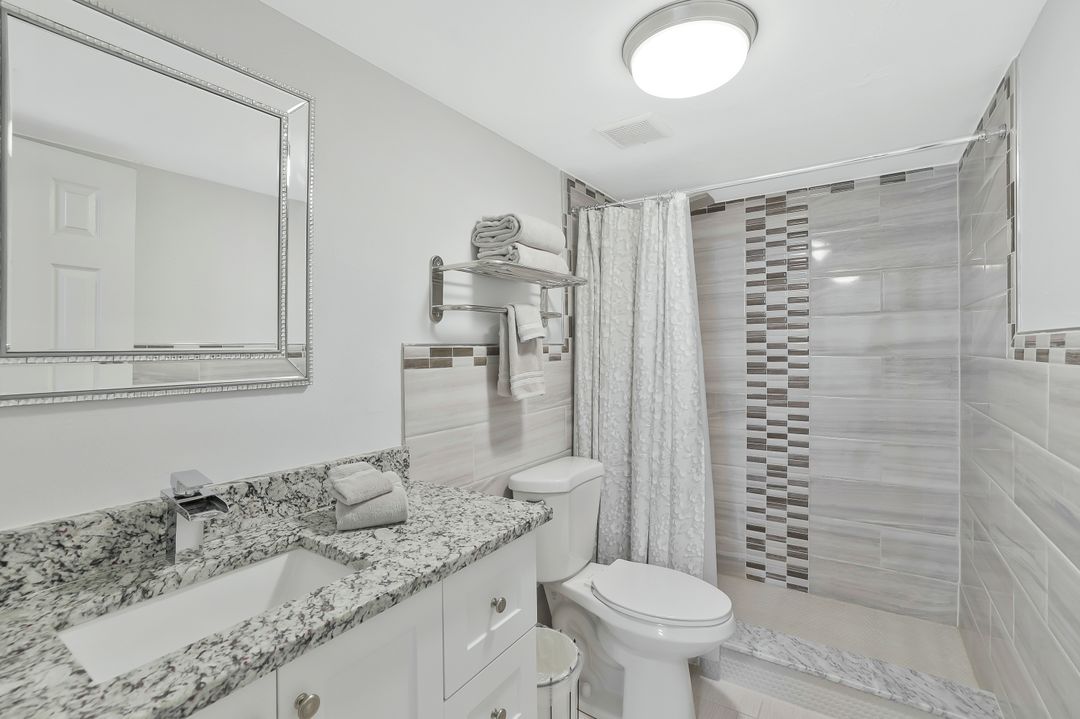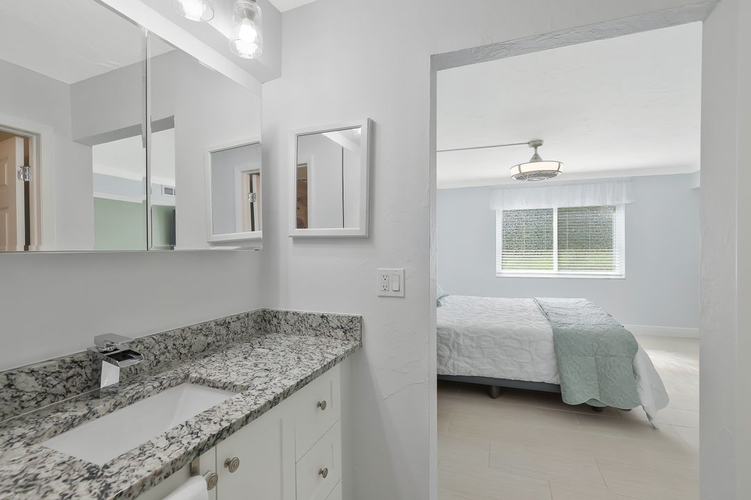 Nestled at the end of a cul-de-sac, this first-floor end-unit condo offers a level of privacy and accessibility that’s hard to find in Naples at this price. With no road noise from Davis Boulevard and no building directly in front or to the side, this residence feels peaceful and secluded yet remains close to everything. The lush grassy side and back yards feel like your own private oasis, and with the walking path just steps from your back door, a nice stroll takes you right to the resort-style amenities. This two-bedroom, two-bath unit has been thoughtfully updated, allowing you to skip the renovations and start enjoying the Naples lifestyle immediately. Its freshly painted interior features impact windows and doors, tile flooring throughout, stainless appliances, white cabinetry and stone counter tops, and modern tile-surround step-in showers. AC system and roof were replaced in 2022. Owners are permitted to have one household pet. Winterpark offers its residents one of Naples’ largest community pools, tennis and pickleball courts, and a community room. Centrally located, the beaches and downtown shops and restaurants are just minutes away and conveniences like Publix, Starbucks and Home Depot are right around the corner.