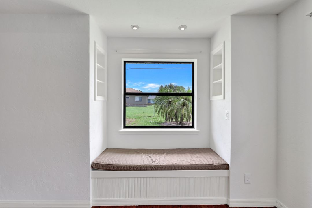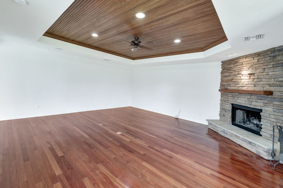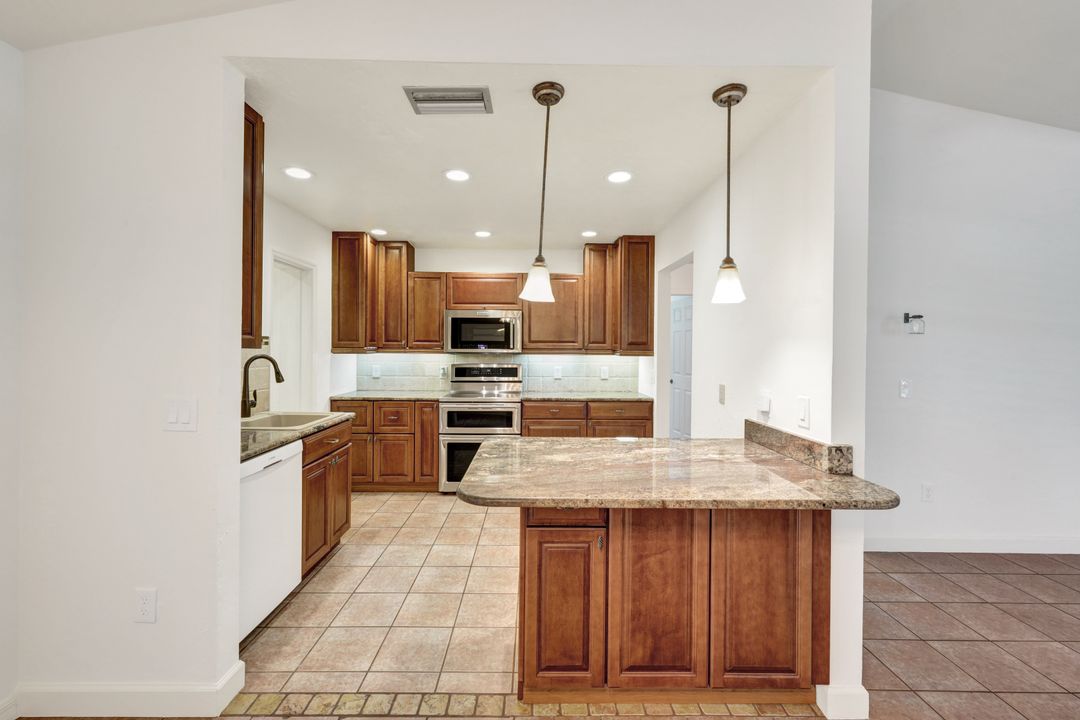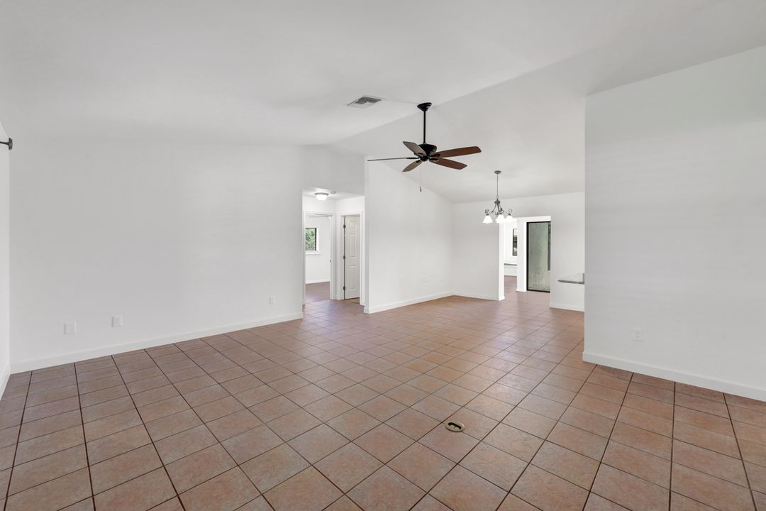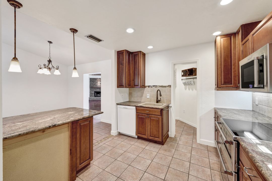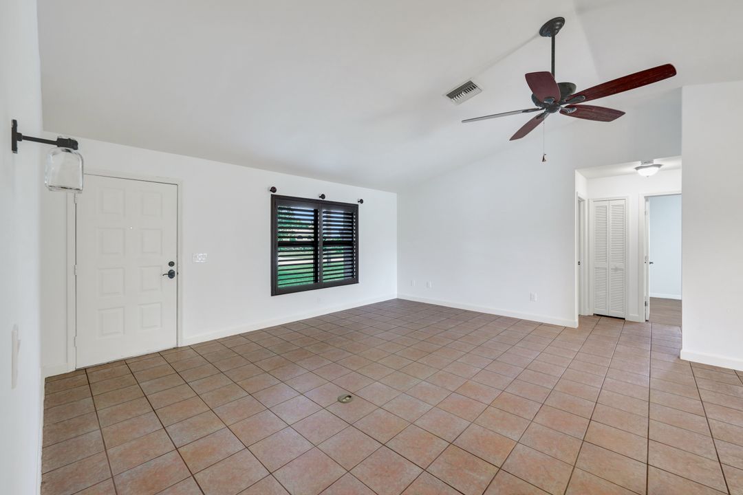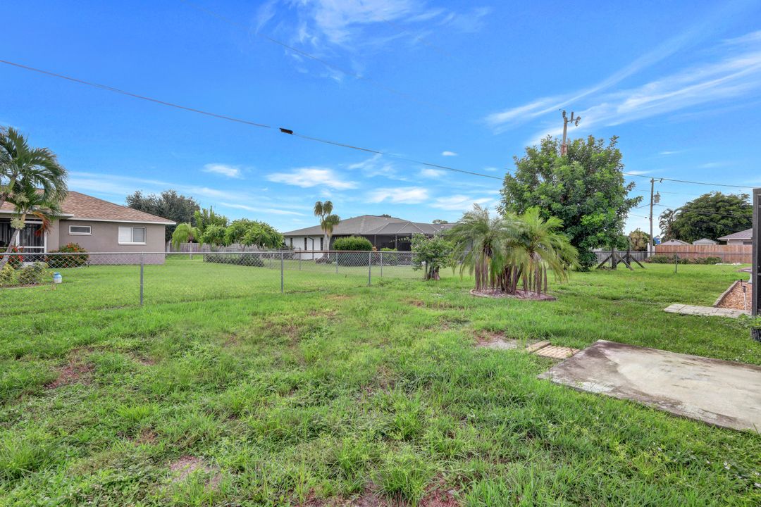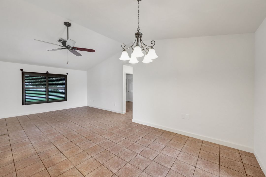 Price Reduction on this beautiful Pool Home w/Eastern Exposure! This upgraded beauty offers over 1800 sqft of living space including 3 bedrooms, 2 bathrooms, and an additional living area featuring a cozy fireplace and a stunning wood feature ceiling. The kitchen boasts granite countertops throughout, a large walk in pantry, tile backsplash and breakfast bar. The high vaulted ceilings and straight stacked tile in all main areas of the house adds a modern touch to the interior. Outdoor living checks all the boxes featuring sparkling blue chlorine pool, pavered patio PLUS incredible built in summer kitchen featuring stacked stone built-in, propane grill, storage and granite countertop which is perfect for the summer BBQ and entertaining family and guests! New shingled roof and A/C unit were installed in 2022; garage doors replaced in 2021 and plumbing repipe done in 2020. Front of home is protected with impact glass while the remaining openings have manual shutters. Flood zone X and assessments are in and PAID in full! Conveniently located near Cape Coral Hospital, schools, shopping centers, fitness clubs, and 10 just minutes to downtown Fort Myers! You can have it all! This home offers style and comfort for your family plus convenient location! Call and schedule your private viewing today! Bring all offers!!