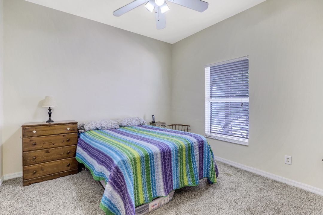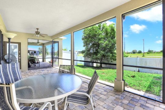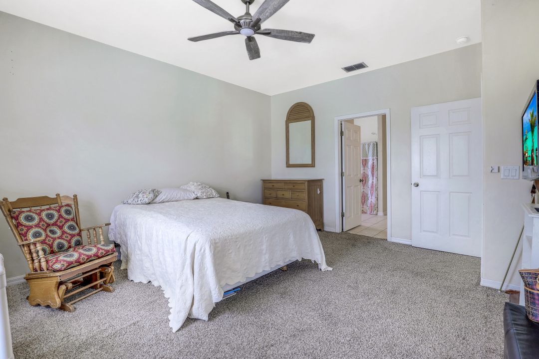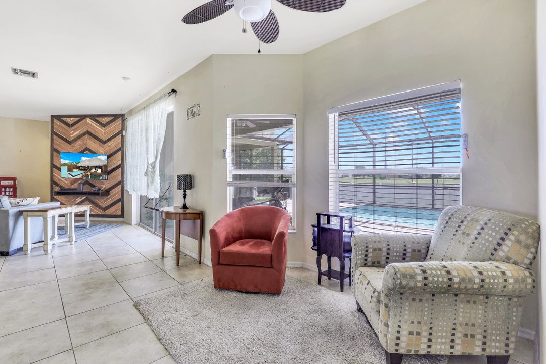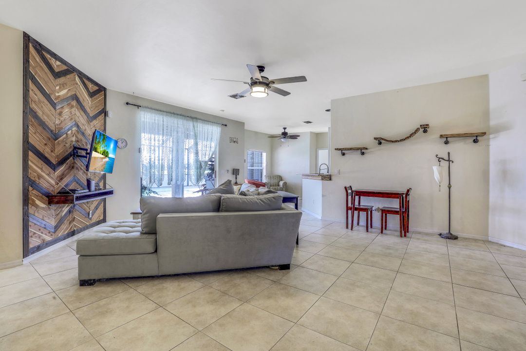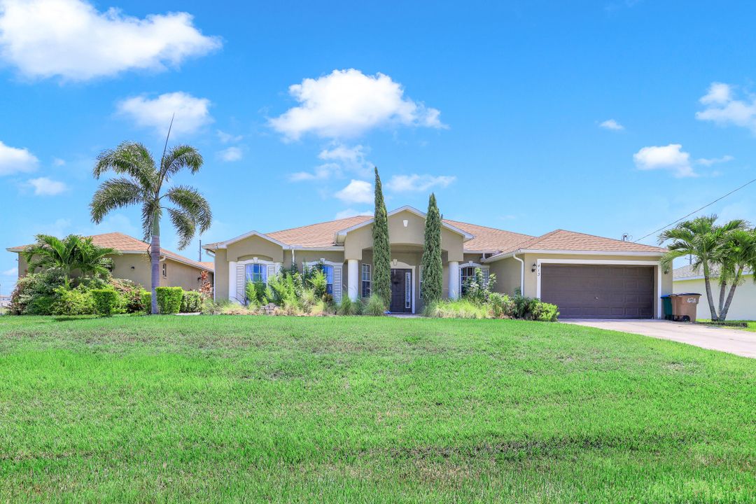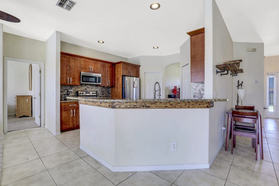 Exceptional find with this 3 Bed 3 Full Bath + Den + In-Law Suite Home!! The den can also be utilized as yet another bedroom giving this home 5 bedrooms and many options for your living and lifestyle needs. Walk into an open split bedroom floor plan with tile throughout the living area & plenty of natural light. Be greeted by the den/bedroom to the left; formal dining off to the right leading to a generous sized kitchen with granite counters, stainless appliances, tile backsplash & breakfast bar overlooking the great room and breakfast nook area. Large owners suite with private entry to the screened lanai, walk-in closet & private bath showcasing a large jetted tub. Two additional guest rooms + full bath which also acts as a pool bath are available for family & friends. In-law suite, student apartment or simply a private guest house for visitors showcases a full kitchen/living space, oversize private bedroom with walk-in closet, private bath PLUS private fenced area giving added flair to this exceptional find. Fenced backyard, screened pool with bathing deck and sizable paver deck makes this home great for all your get togethers!! Entertain, live, relax the SW Florida lifestyle!
