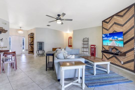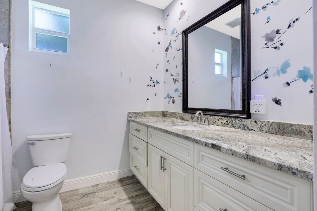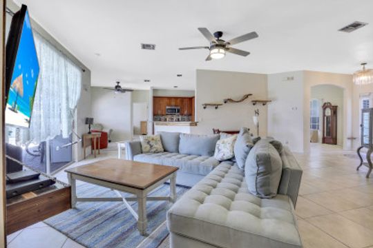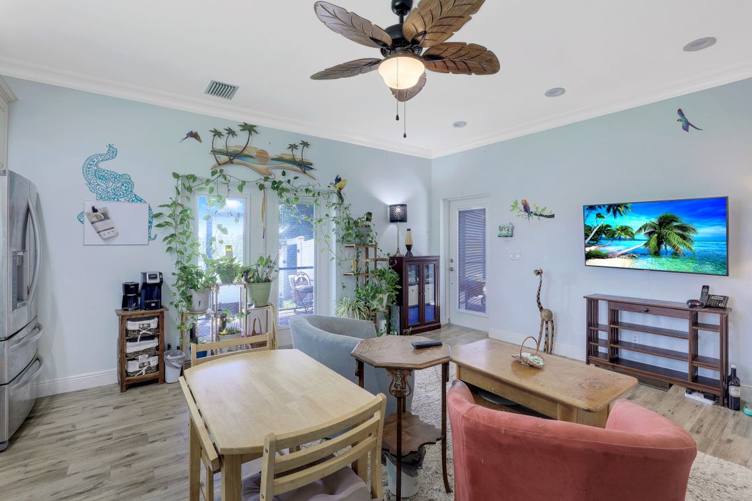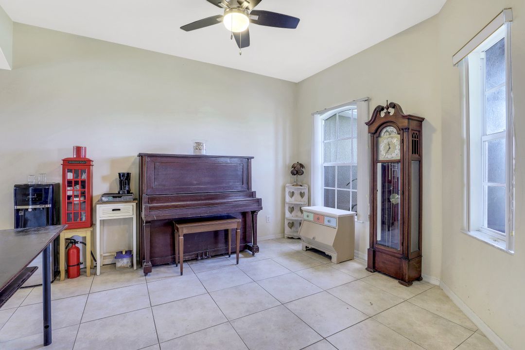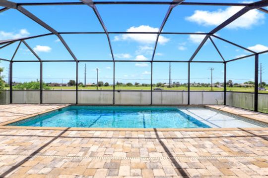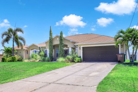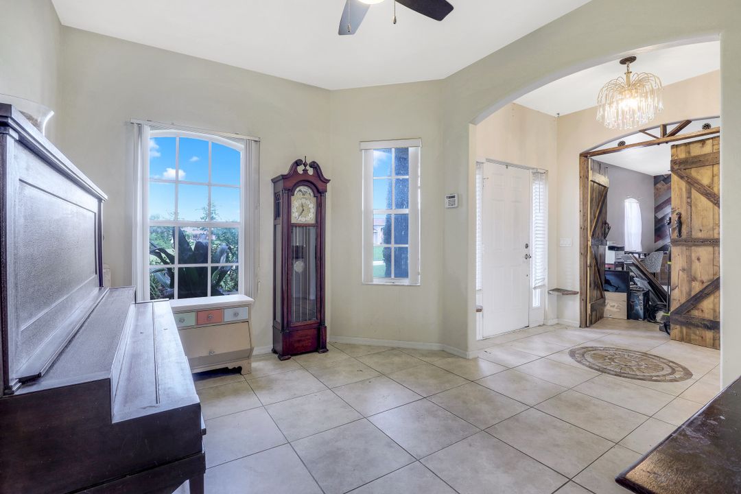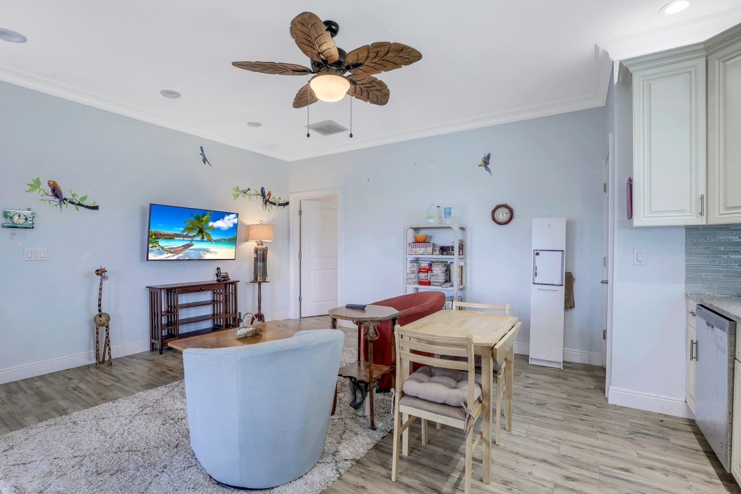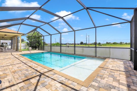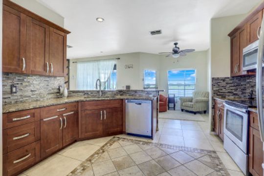 Exceptional find with this 3 Bed 3 Full Bath + Den + In-Law Suite Home!! The den can also be utilized as yet another bedroom giving this home 5 bedrooms and many options for your living and lifestyle needs. Walk into an open split bedroom floor plan with tile throughout the living area & plenty of natural light. Be greeted by the den/bedroom to the left; formal dining off to the right leading to a generous sized kitchen with granite counters, stainless appliances, tile backsplash & breakfast bar overlooking the great room and breakfast nook area. Large owners suite with private entry to the screened lanai, walk-in closet & private bath showcasing a large jetted tub. Two additional guest rooms + full bath which also acts as a pool bath are available for family & friends. In-law suite, student apartment or simply a private guest house for visitors showcases a full kitchen/living space, oversize private bedroom with walk-in closet, private bath PLUS private fenced area giving added flair to this exceptional find. Fenced backyard, screened pool with bathing deck and sizable paver deck makes this home great for all your get togethers!! Entertain, live, relax the SW Florida lifestyle!