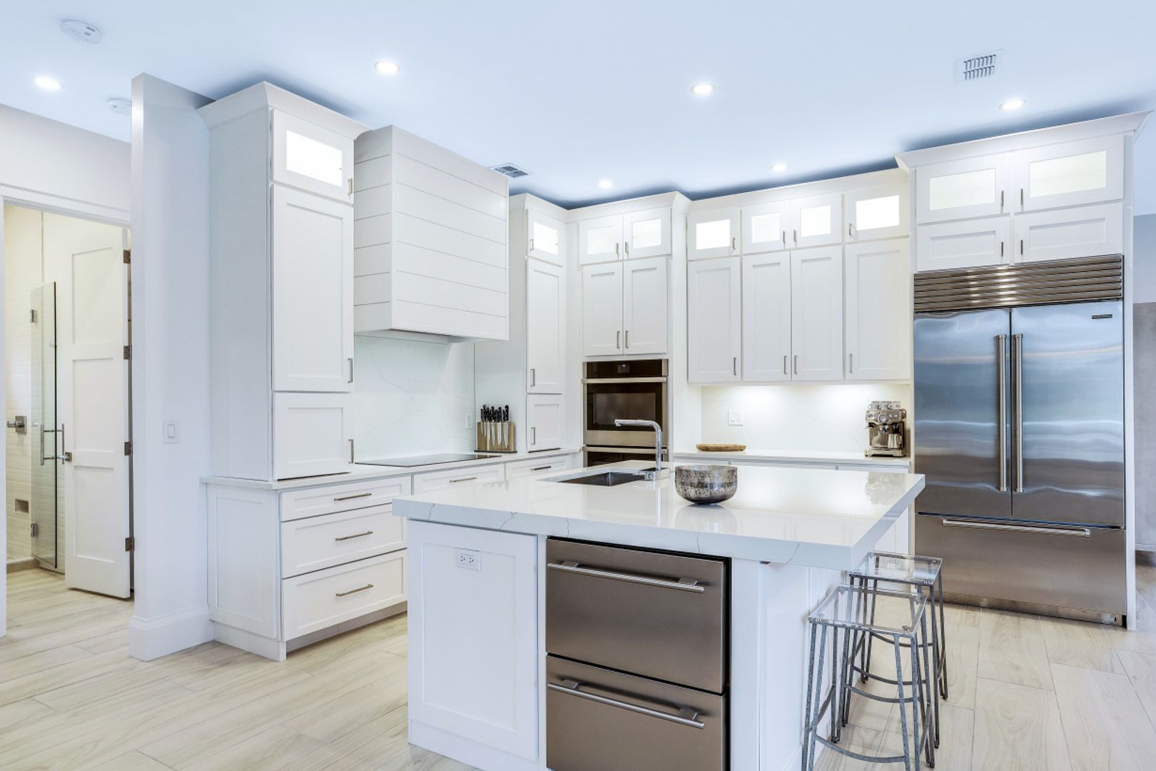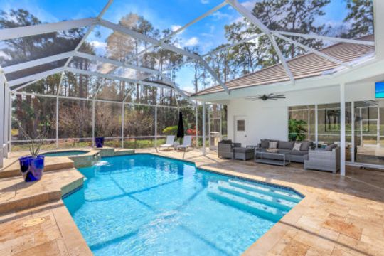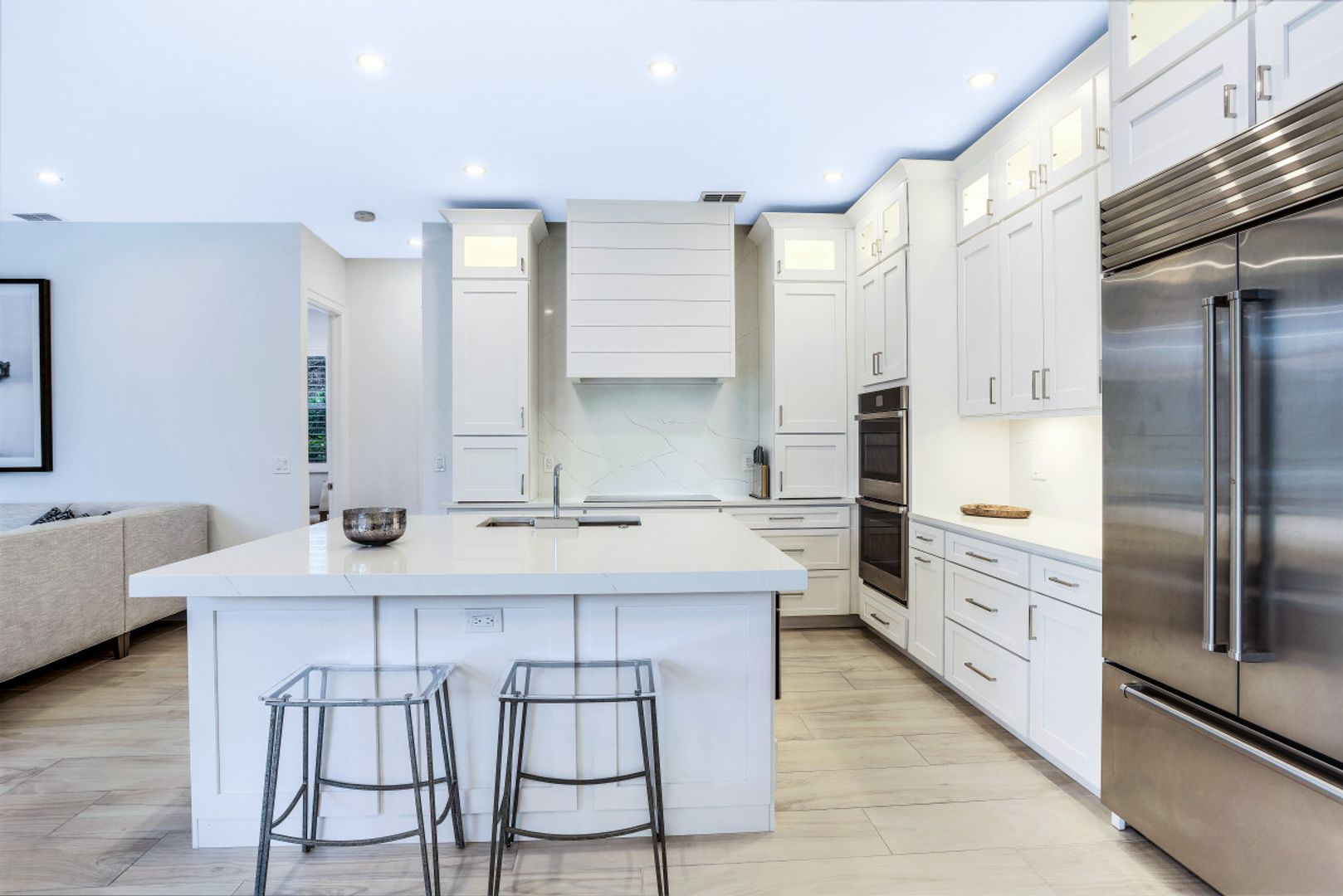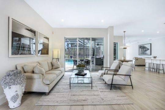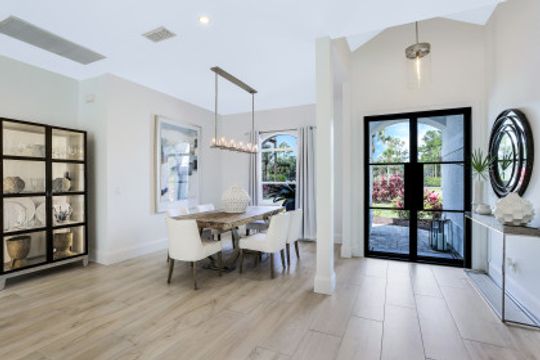 This MODEL QUALITY home offers 4 bedrooms, 3 baths, 3 car garage, & 2332 Sq Ft and was FULLY REMODELED IN 2021. Situated on a lushly landscaped and GATED/FENCED lot, this home offers the best of both worlds with private estates living but close to all that Naples has to offer. In the rear of the property you will find a 2400 Sq Ft WAREHOUSE with two 16' tall garage doors. Inside, you will find a sophisticated coastal contemporary designed home including: oversized wood plank tile flooring throughout; 8" baseboards, oversized door casings, and shaker style doors; custom designed baths; special order lights & fans; LED recessed lights throughout; iron & glass front door; designer fixtures; and custom Kitchen including Level V quartz countertops with full quartz backsplash, shaker style cabinets with lit upper display cabinets, double wall ovens, drawer microwave, beverage cooler, Thermador INDUCTION cooktop, and built in Sub Zero commercial style refrigerator. Propane GAS heated pool/spa surrounded with travertine marble decking. NEW ROOF 2019. NEW REVERSE OSMOSIS WATER SYSTEM 2020.