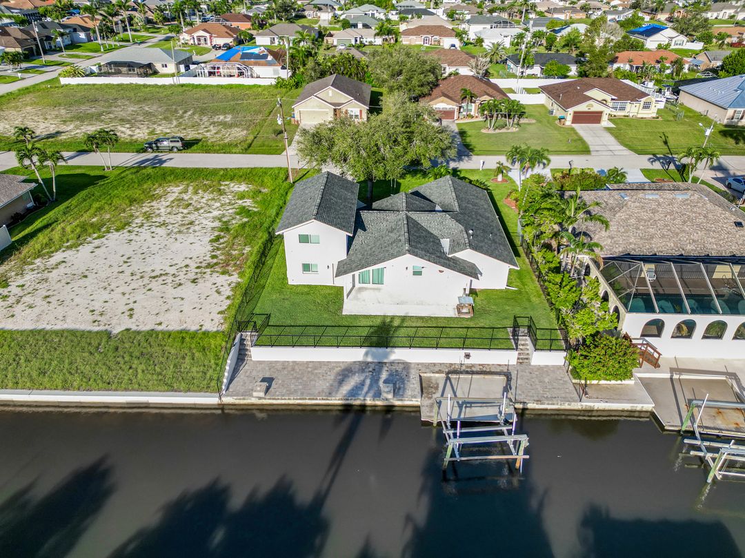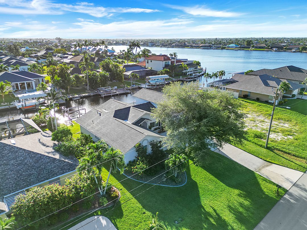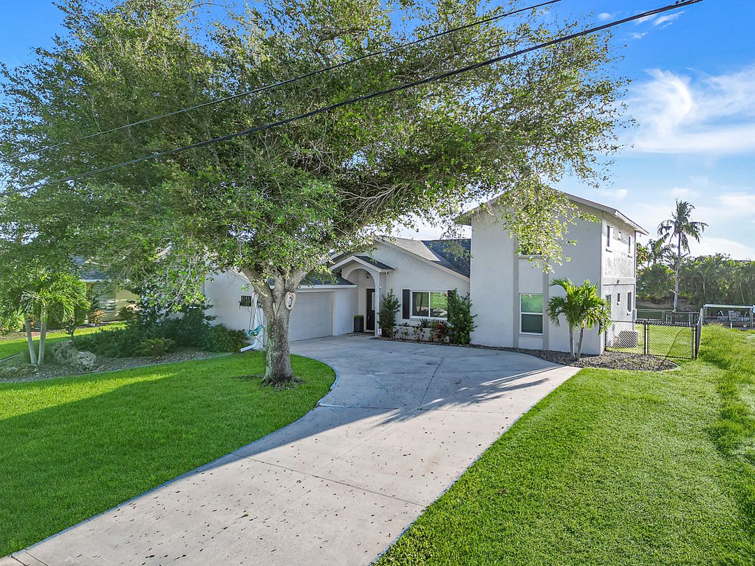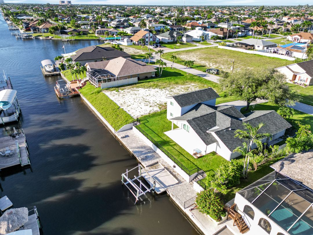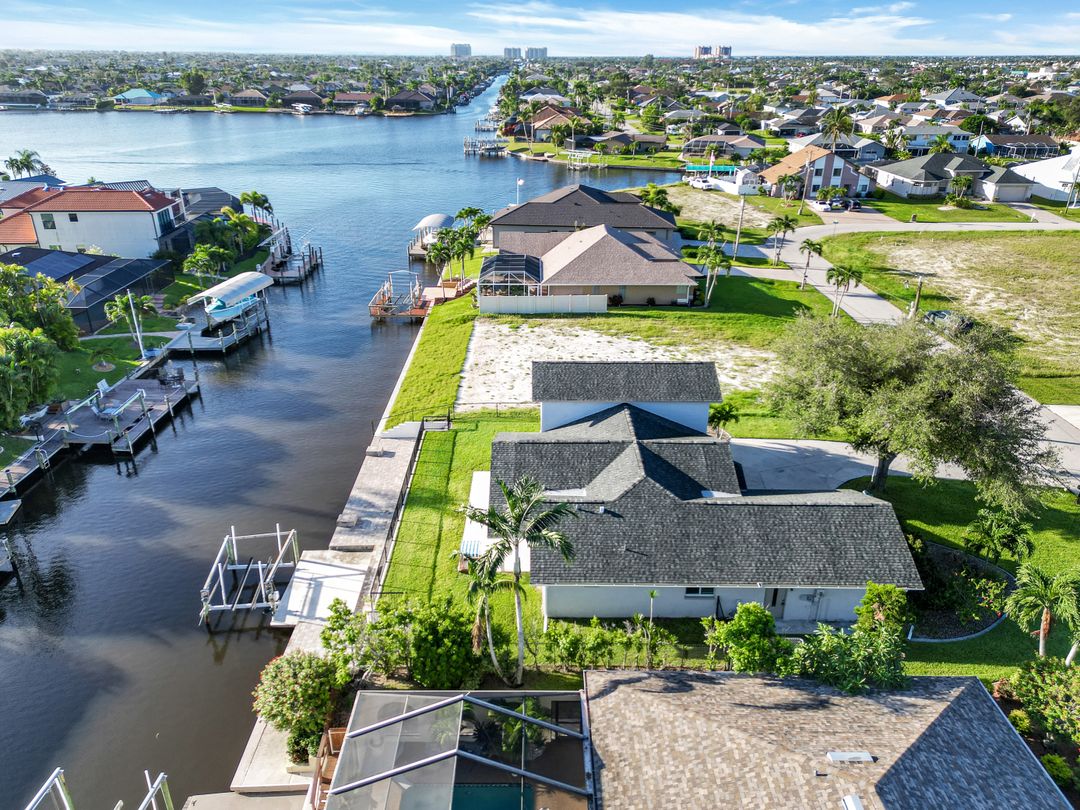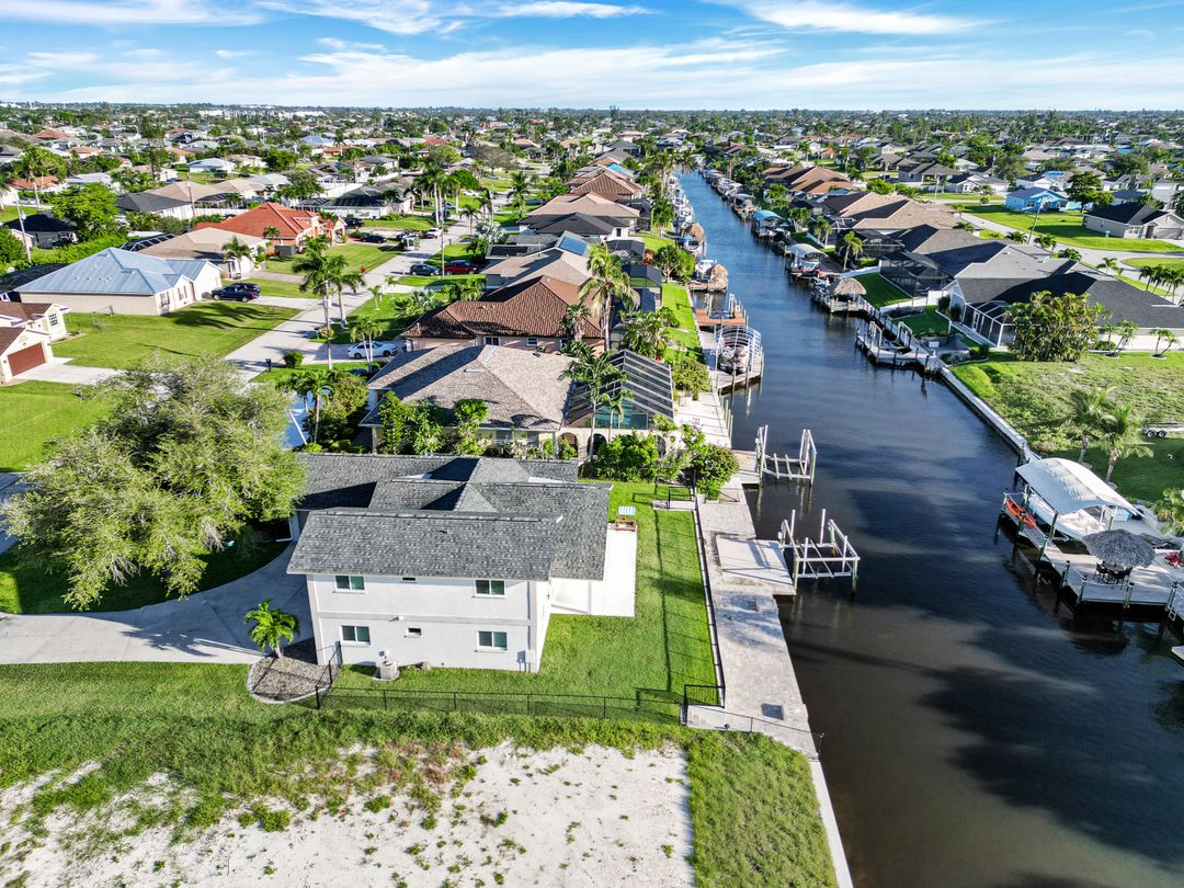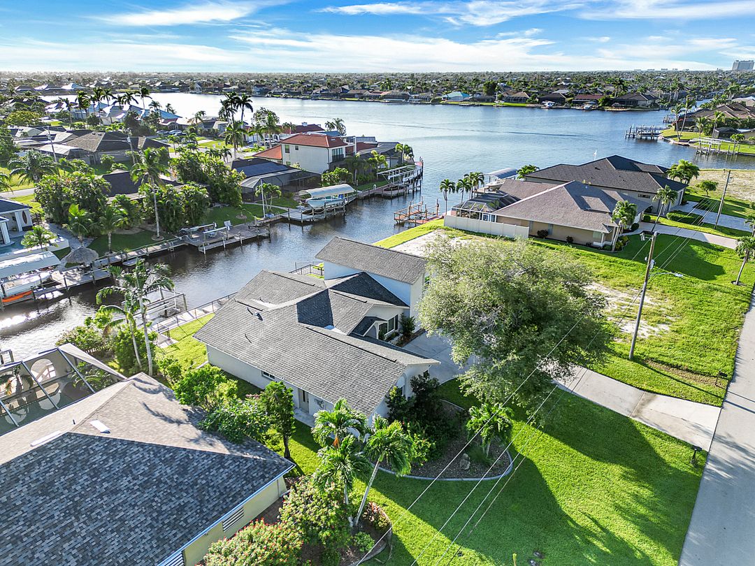 Bring your family AND your Boat! This waterfront oasis is nestled in the heart of a thriving boating/family community in SW Cape Coral. This gem was completely remodeled from top to bottom in 2018 & includes 4BR, 3.5BA, PLUS bonus room. As you step inside, you'll immediately notice the spaciousness of the open concept while numerous windows, vaulted ceilings & recessed lighting, creating a bright & inviting atmosphere. Kitchen has been tastefully updated w/modern fixtures & lighting, shaker style cabinets, slate appliances, leather textured granite & tile backsplash. Downstairs owners suite enjoys water views & private bathroom featuring floor-to-ceiling elegant black shower tile, double vanities & contemporary fixtures. Upstairs area features BR plus full BA along w/bonus room offering unlimited potential uses-home office, in-law/guest suite, kids area just to name a few. Whether you're an avid boater or simply appreciate the serenity of waterfront living, this property offers the best of both worlds. Don't miss your chance to make this beautiful home your own & experience the joys of a welcoming family & boating community. IMPORTANT-New Roof 2022, IMPACT WINDOWS, Flood Zone X!