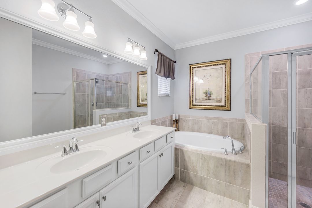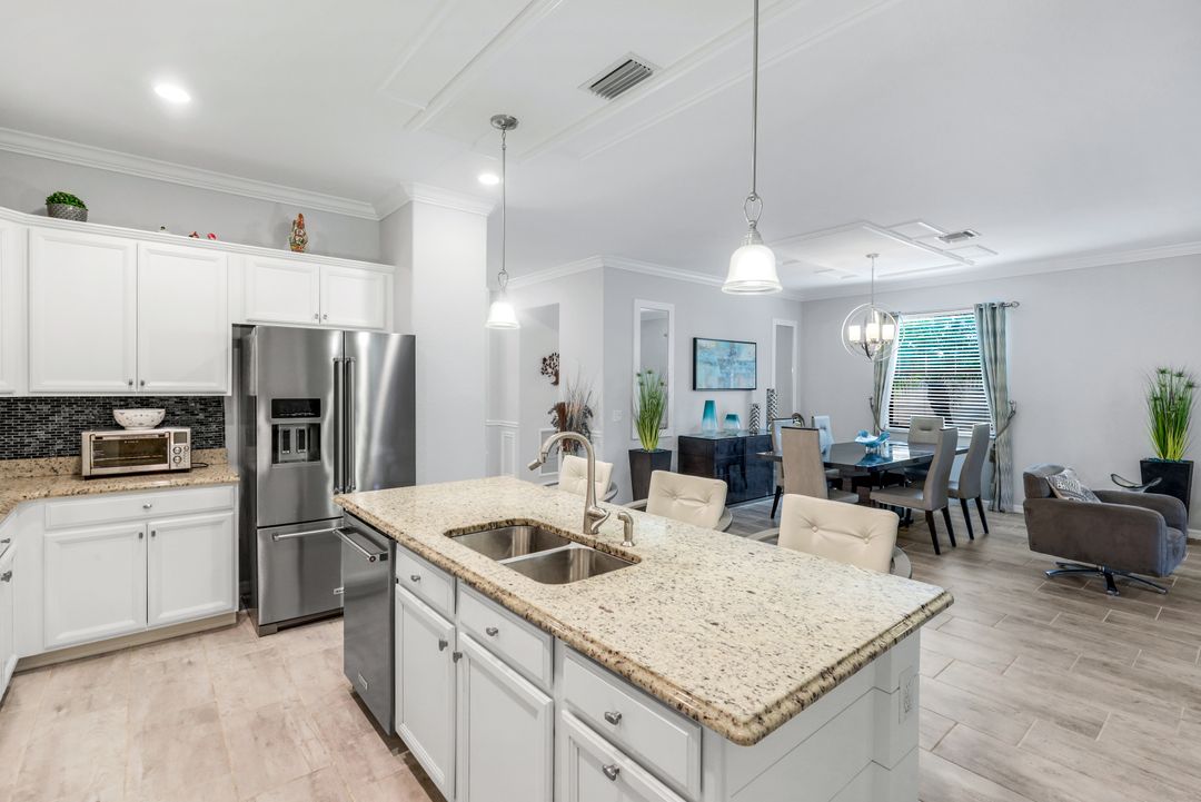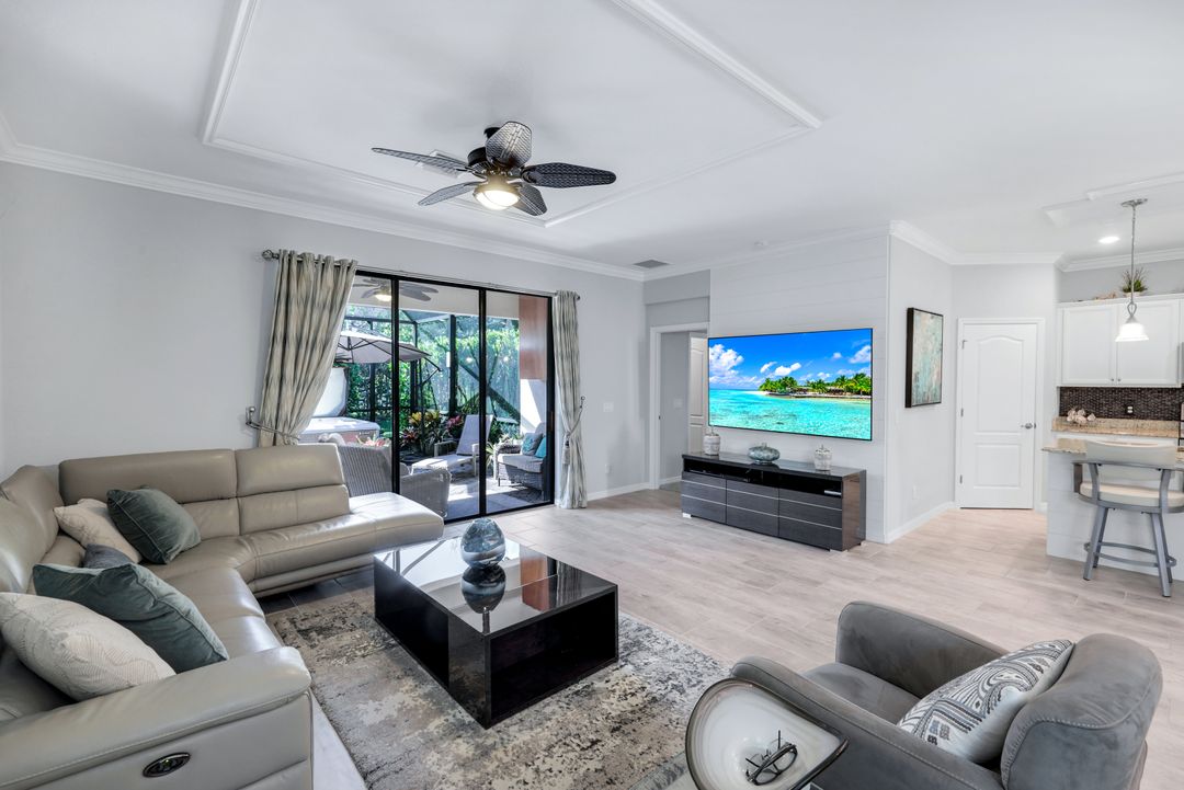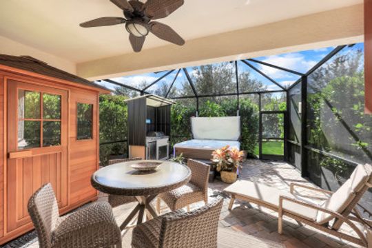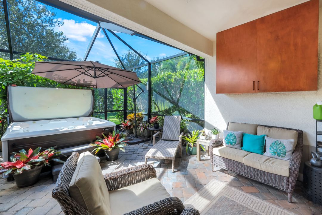 LUXURY LIVING MEETS EVERYDAY COMFORT in this stunning 3-bedroom, 3-bath home with over 1,800 sq. ft. of open-concept living in one of the area’s most sought-after school districts. The spacious great room flows seamlessly into a chef-inspired kitchen featuring new KitchenAid appliances and designer details throughout, including custom moulding, wainscoting, shiplap, and mirrors. The primary suite boasts custom closets, while the laundry room has been upgraded with added cabinetry and a console sink. Step outside and enjoy your private outdoor sanctuary with an extended lanai, Hot Springs saltwater hot tub, outdoor sauna, outdoor kitchen with custom awning, and outdoor TV with custom cabinet—all surrounded by lush landscaping and accent lighting. Practical upgrades include a new hot water heater, epoxy-coated garage floor, freshly painted garage interior, custom garage cabinets, bike racks, slat wall, and pull-down attic stairs with floored storage. Located minutes from renowned beaches, fine dining, shopping, and recreation, this home combines everyday comfort with the feel of a luxury retreat.