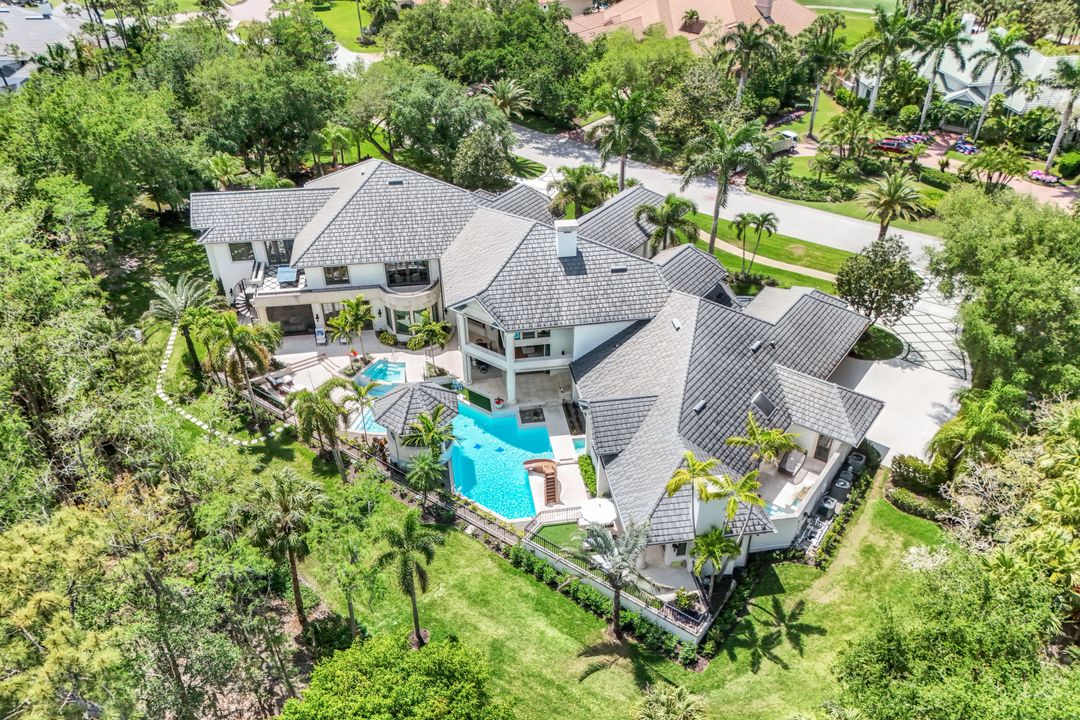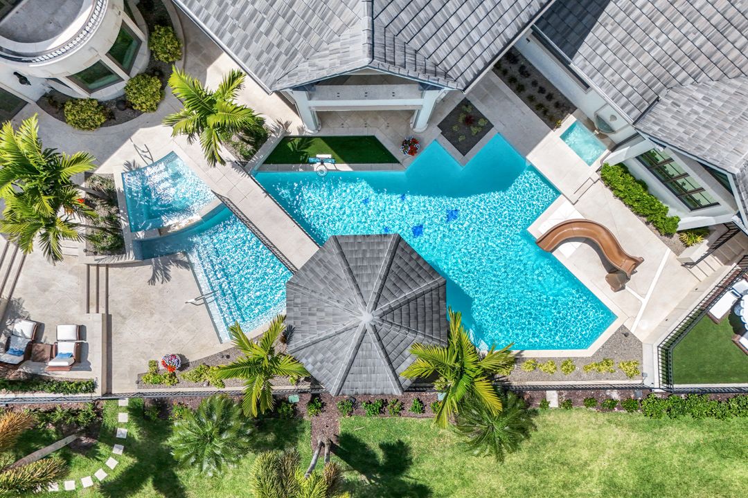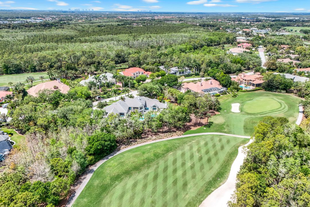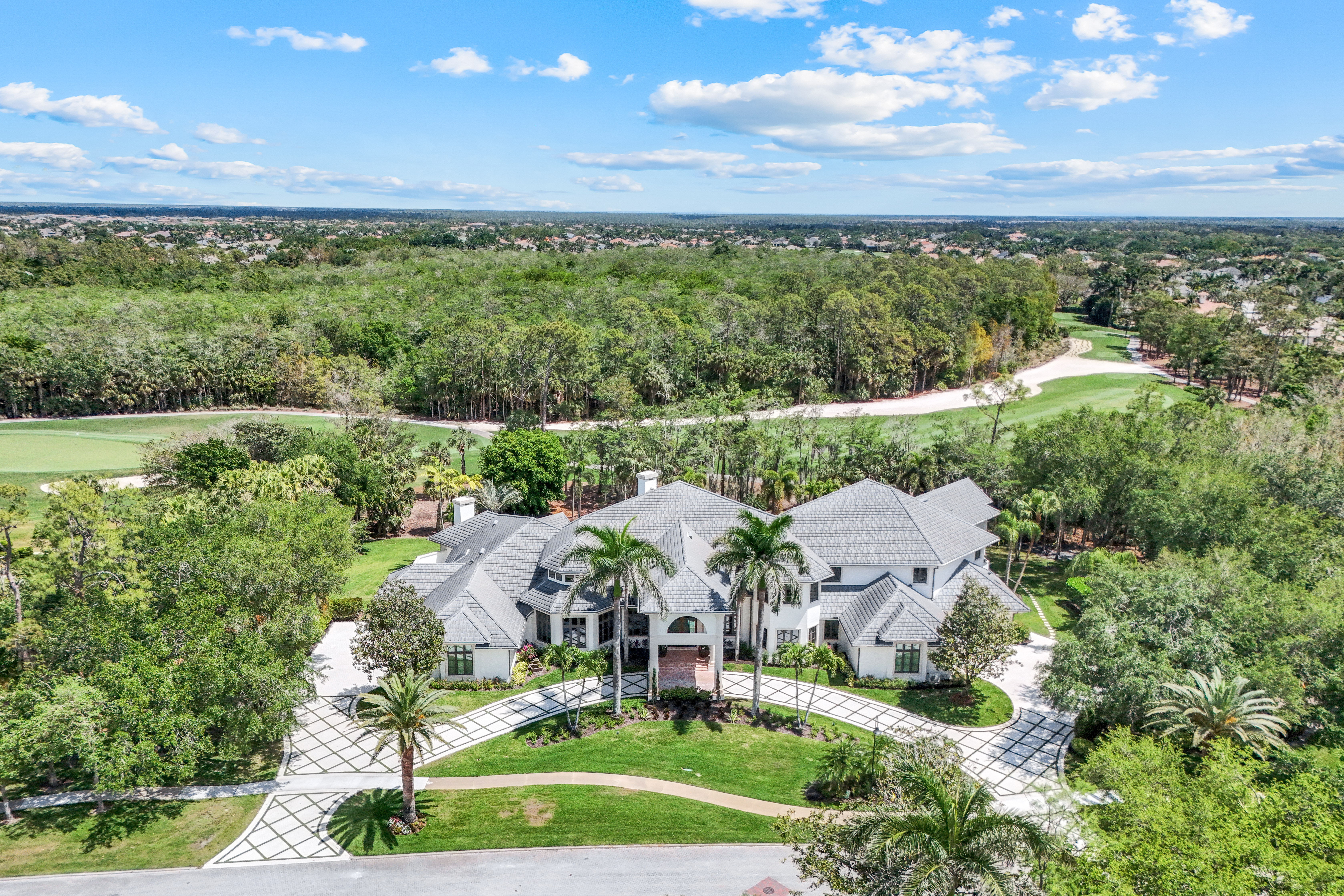 Upon entering the home, the main living room is sure to impress with soaring 24-foot ceilings, a curved stone staircase, a gas fireplace and oversize windows flooding the home with natural sunlight including zero-corner sliders that lead to the extraordinary outdoor entertaining area. Enjoy Naples’ glorious weather with 1,062 square feet of covered outdoor living, a full indoor bar with folding windows opening to the lanai with motorized screens, a massive resort style pool with a waterslide, large spa, and a gazebo centerpiece featuring an outdoor kitchen with a Wolf grill, TV and a view over the pool and 17th hole of the Preserve Course.