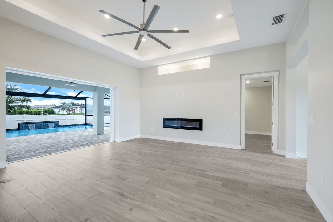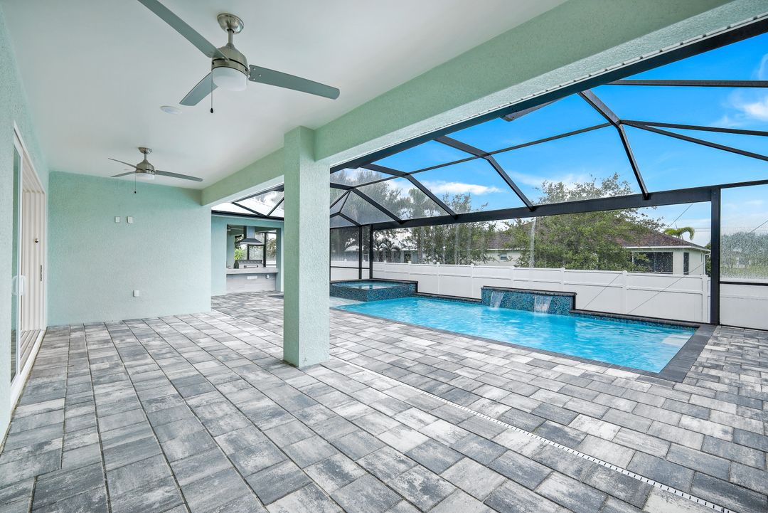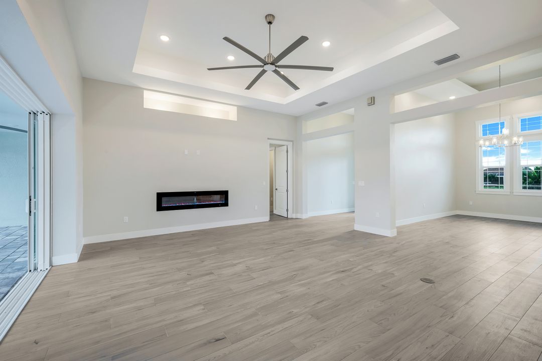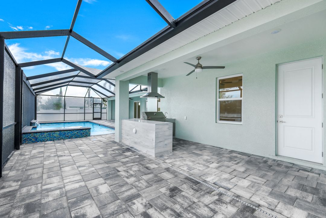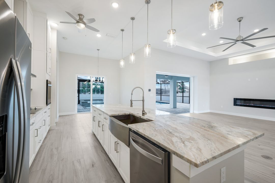 New Construction - Modern Coastal Style Custom ICF Home with 4 Bedrooms, 3 Baths, 2630 sq ft Living Area and 3-Car Garage. You will Love the Chefs Kitchen with Gorgeous Granite, Large Island, All Wood Soft-close Cabinets, Stainless Steel Appliances, Tile Backsplash, Ceiling Fans and 2 Pantries. The Luxurious Owners Suite Boasts a Tray Ceiling, Custom Closets, Safe, Multiple Ceiling Fans, Over-sized His & Hers Vanities, Large Walk-in Shower with Multiple heads, Separate Tub and Private Water Closet. The Fully Extended Lanai is the Perfect place to Relax or Entertain while Enjoying your Heated Saltwater Pool and Spillover Spa, Waterfalls, Sun Shelf, Bubblers, Outdoor Kitchen, and Multiple Ceiling Fans. There is a Huge Laundry room with lots of Counter space & Cabinets, Utility Sink and Ceiling Fan. Additional Features include Volume ceilings, 8 foot doors, Multiple Tray ceilings, Tile flooring throughout, LED Fireplace, Custom Closets, Recessed lights, Metal Roof, All Impact Windows & Doors, Privacy Fence, Paver Driveway-Walkway-Lanai and Pool deck. ALL ASSESSMENTS PAID IN FULL. Insulated Concrete Form Construction with steel reinforced poured concrete walls provide a R25-30 Rating, reduces outside noise, are energy efficient, are mold and mildew resistant, protect against fires and hurricanes, and can withstand 200-300 mph winds. Ideal Location close to Restaurants, Shopping and just a Short Drive to RSW International Airport.