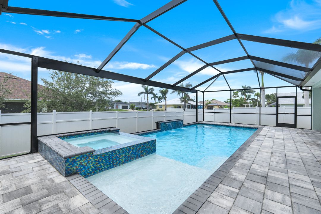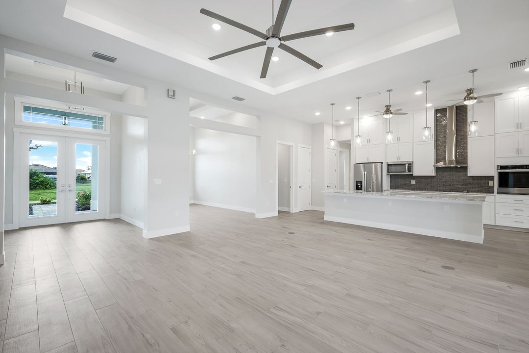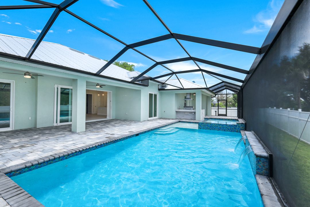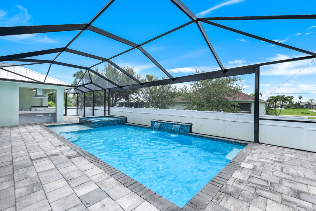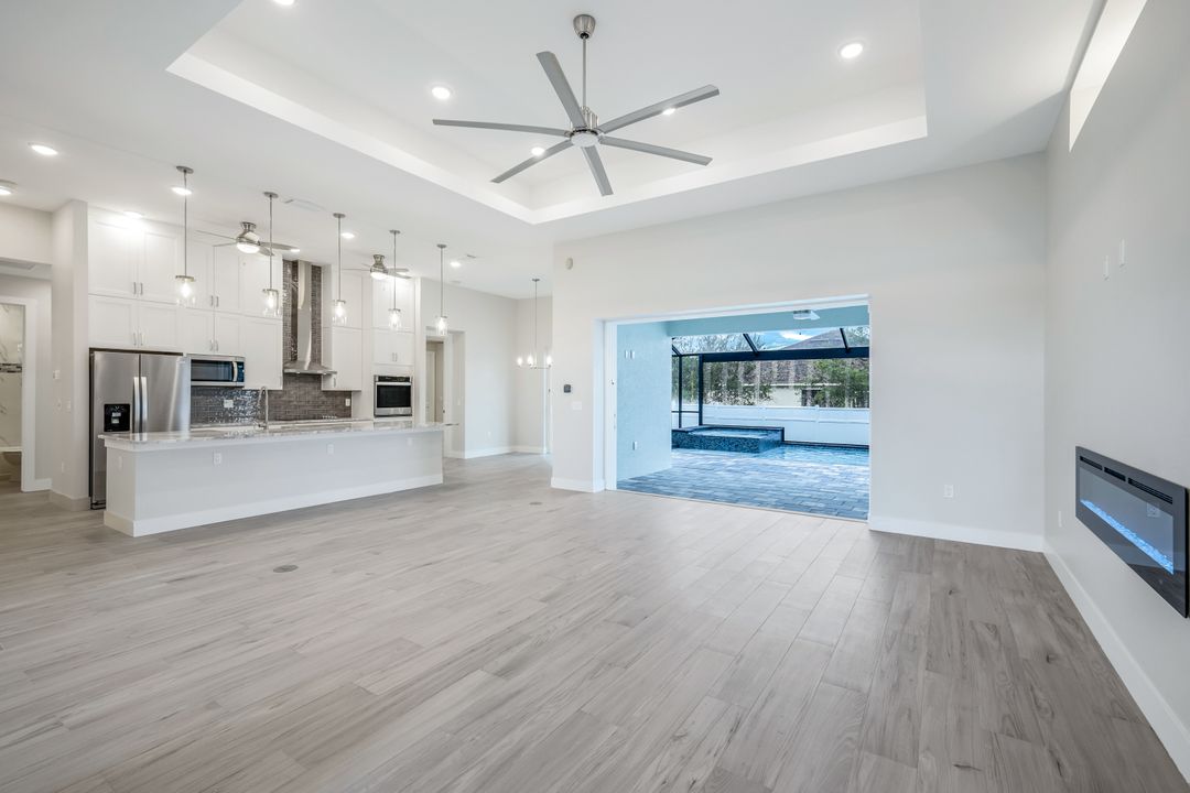 New Construction - Modern Coastal Style Custom ICF Home with 4 Bedrooms, 3 Baths, 2630 sq ft Living Area and 3-Car Garage. You will Love the Chefs Kitchen with Gorgeous Granite, Large Island, All Wood Soft-close Cabinets, Stainless Steel Appliances, Tile Backsplash, Ceiling Fans and 2 Pantries. The Luxurious Owners Suite Boasts a Tray Ceiling, Custom Closets, Safe, Multiple Ceiling Fans, Over-sized His & Hers Vanities, Large Walk-in Shower with Multiple heads, Separate Tub and Private Water Closet. The Fully Extended Lanai is the Perfect place to Relax or Entertain while Enjoying your Heated Saltwater Pool and Spillover Spa, Waterfalls, Sun Shelf, Bubblers, Outdoor Kitchen, and Multiple Ceiling Fans. There is a Huge Laundry room with lots of Counter space & Cabinets, Utility Sink and Ceiling Fan. Additional Features include Volume ceilings, 8 foot doors, Multiple Tray ceilings, Tile flooring throughout, LED Fireplace, Custom Closets, Recessed lights, Metal Roof, All Impact Windows & Doors, Privacy Fence, Paver Driveway-Walkway-Lanai and Pool deck. ALL ASSESSMENTS PAID IN FULL. Insulated Concrete Form Construction with steel reinforced poured concrete walls provide a R25-30 Rating, reduces outside noise, are energy efficient, are mold and mildew resistant, protect against fires and hurricanes, and can withstand 200-300 mph winds. Ideal Location close to Restaurants, Shopping and just a Short Drive to RSW International Airport.