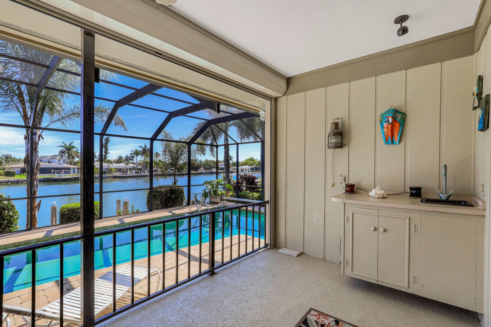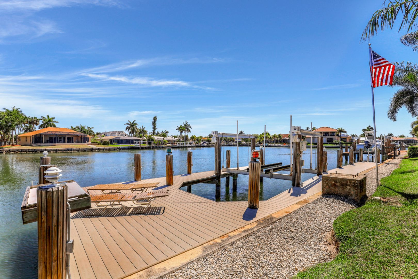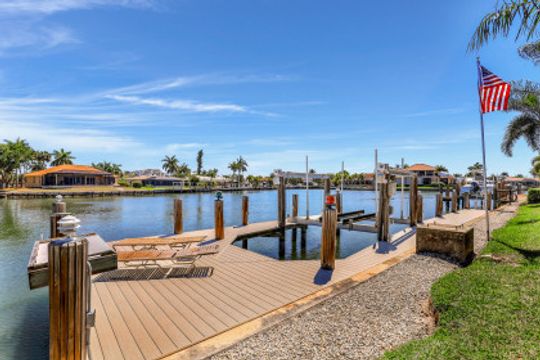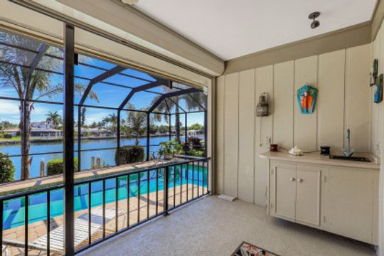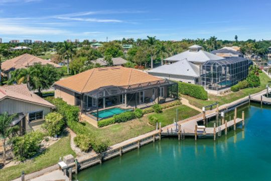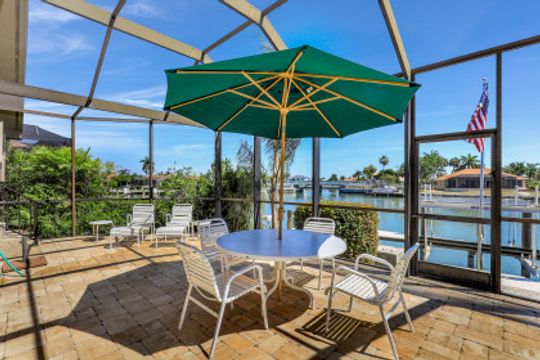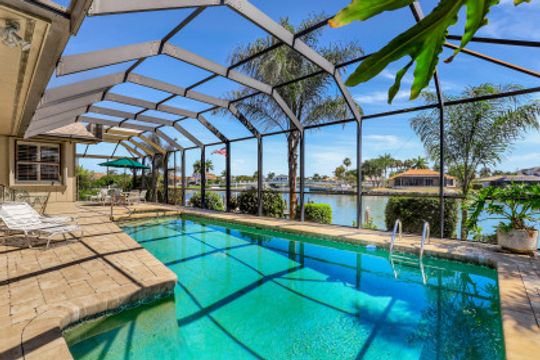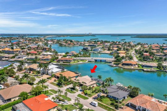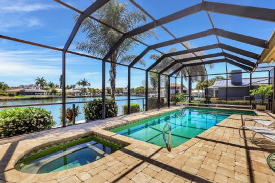 The ideal island home can be found in this exemplary residence found in SouthWest Florida. This three-bedroom two-bathroom home is located centrally on Marco Island. Views of the large intersecting canal can be seen from the moment you enter the front door and through the rest of the house. An open living space encapsulates the living and dining area, as well as the kitchen which is equipped with an island and breakfast bar, as well as lots of storage space. The outdoor living space truly makes this home stunning as there is a large swimming pool and spa, a boat deck and lift, and plenty of yard space for relaxing days in the sun. Plantation shutters are also featured in order to provide privacy when needed. Location is key for this residence as it is across the street from the Island Country Club, as well as only minutes away from the famous beaches and Gulf of Mexico.