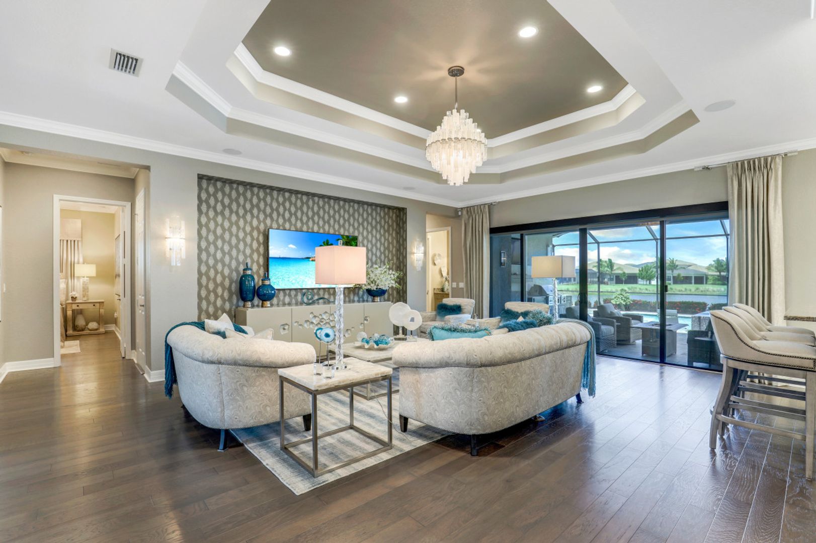 Who says you can't have it all? This impressive model quality "Carlyle" (furniture/decor package available) features over $500k in upgrades: hurricane impact glass windows/doors; electric roll down shutter on the lanai; whole house generator; expanded lanai with travertine marble deck, GAS heated salt water pool with raised infinity edge spa and two sunshelfs with bubblers; $50k custom outdoor kitchen, fireplace, and entertainment wall; wood floors throughout and upgraded tile in the baths; $6k security system including cameras; two climate controlled garages with custom cabinets & epoxy floor; GAS range; tankless GAS hot water heater; HVAC filtration system; special order/designer lighting; $30k in additional landscaping with landscape lighting; $15k in-ceiling audio system; custom impact glass front door with matching transom window; upgraded cabinetry (with soft close) & quartz countertops throughout; bath mirrors and shower tile to the ceiling; master suite closet built-ins; and more! StoneCreek offers a 6.25 acre recreation site featuring a resort-style pool, lap pool, whirlpool spa, firepit, 5 clay tennis courts, 4 pickleball courts, full size basketball court, and more!