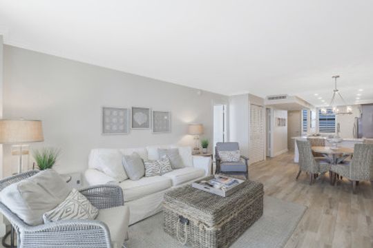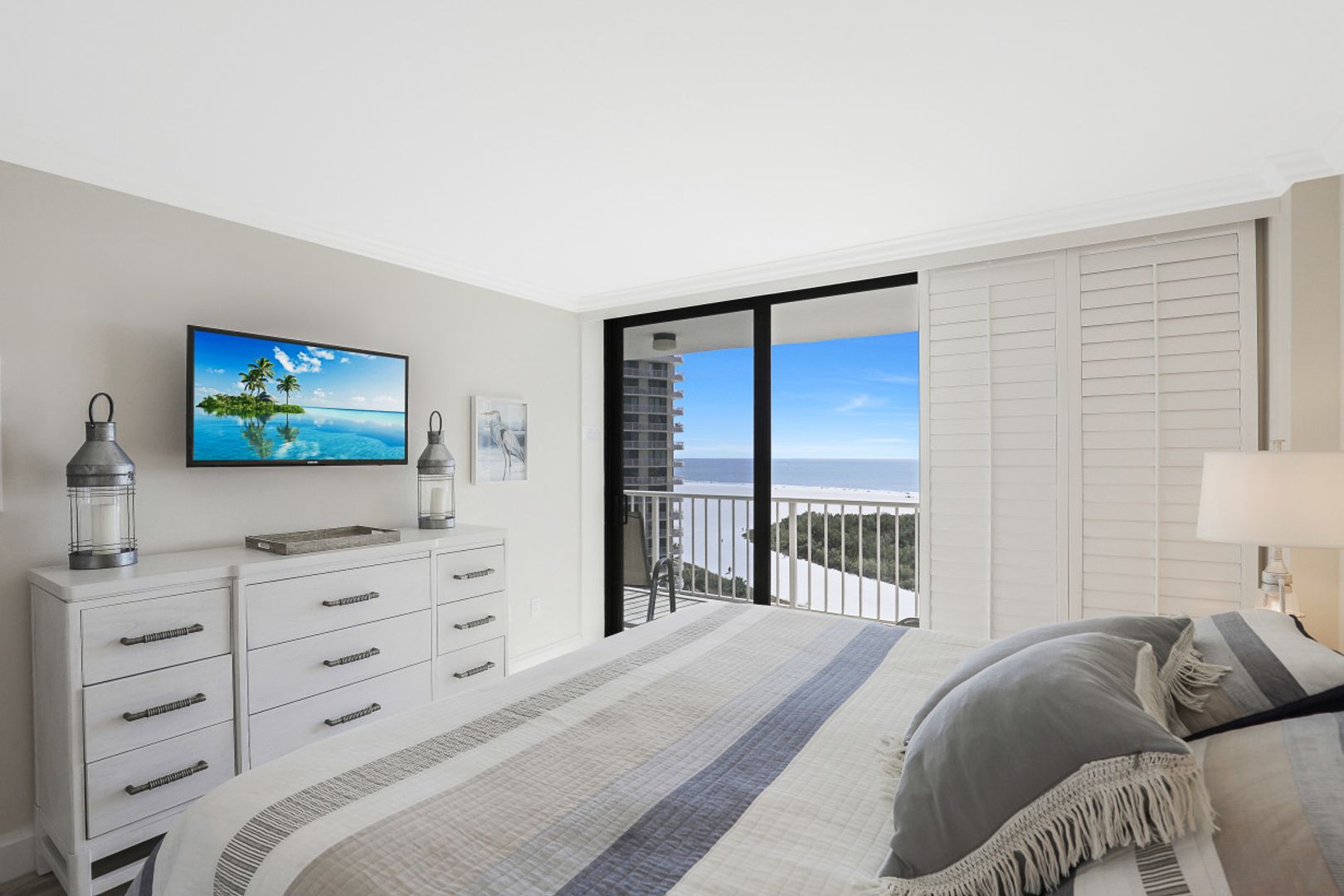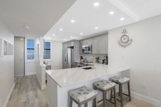 Perched up on the 12th floor of Marco Marco Islands South Seas Tower 4 you will find this 2 bed 2 bath completely updated unit being offered turnkey. Private beach access from your backyard is every islanders dream! As you step into this unit you will immediately notice the modern updates including coastal tile flooring throughout light painted walls and beautiful coastal furniture. Just around the corner is your open concept kitchen equipped with grey shaker cabinets, quartz countertops and top of the line stainless steel appliances. Enjoy stunning beach views from all living areas and your master bedroom through large hurricane resistant sliding glass doors. Both bathrooms have been completely redone with modern vanities and walk in tile showers. Marco Island infamous sunsets can not be beat from your 12th floor open balcony. Located in the gated community of South Sea’s puts you just minutes from all of Marco Island top restaurants and entertainment centers. Amenities include resort style swimming pool and spa, tennis courts, exercise room and bbq picnic areas. Don’t miss out on owning this piece of paradise!