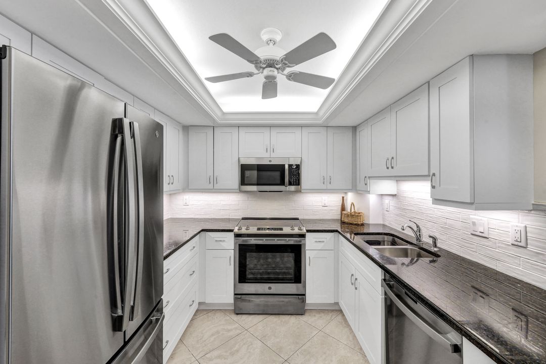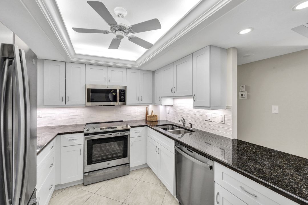 Marco Island is known for beautiful beaches and breathtaking sunsets, and this condo takes full advantage. Enjoy the Southwest views of the sandy crescent beach on your spacious lanai with access from both the living room and owner’s retreat. This two bedroom, two bath condo has been lovingly maintained by original owners since it was built. Enjoy the new coastal inspired kitchen with its white cabinetry, pantry, new stainless appliances, and beautiful backsplash. Impact windows and slider. A nice coastal flair and being sold turnkey, just bring your swimsuit! This is a rare gem with optional 7-day rental to offset costs. A storage unit is included for extras. Covered parking. Enjoy the resort amenities within this gated community heated pool and spa, BBQ, tennis, pickleball, fitness center, kayak storage and option to rent a boat slip! A private boardwalk will give you gulf access to miles of beach front. So much offered and steps from many of Marco Island’s favorite restaurants!
