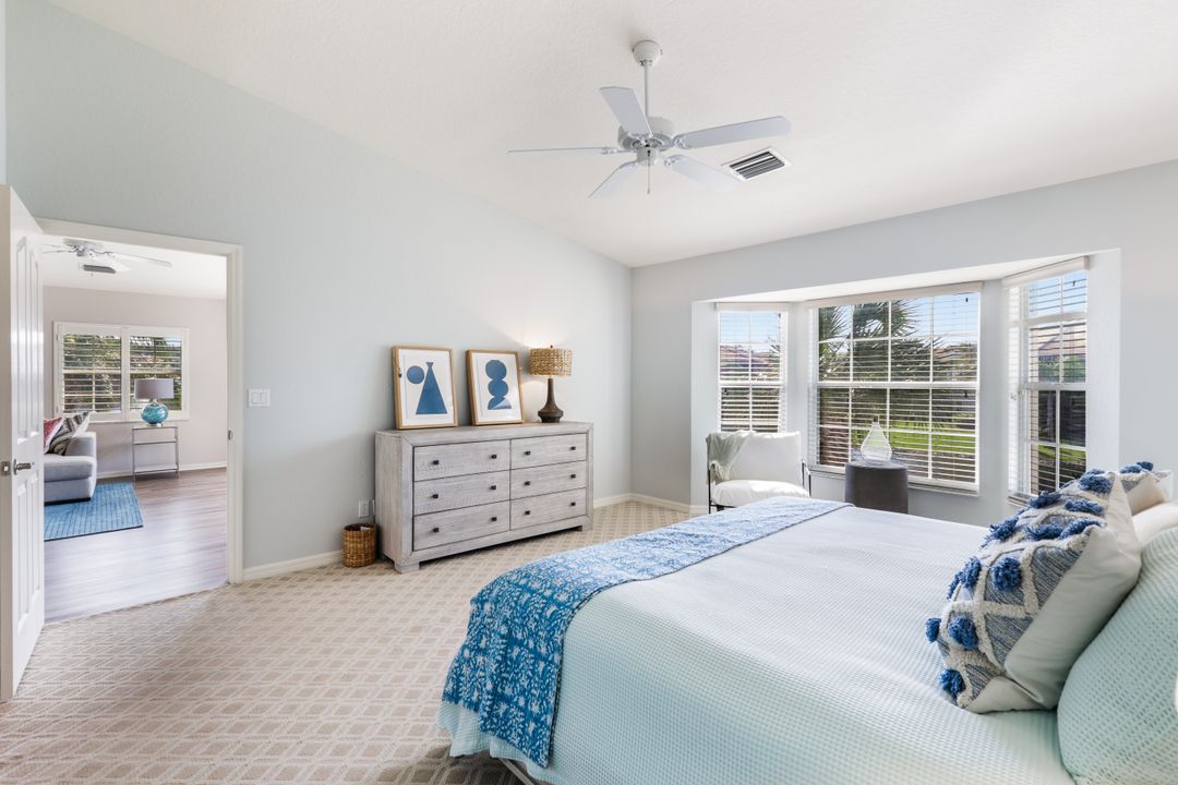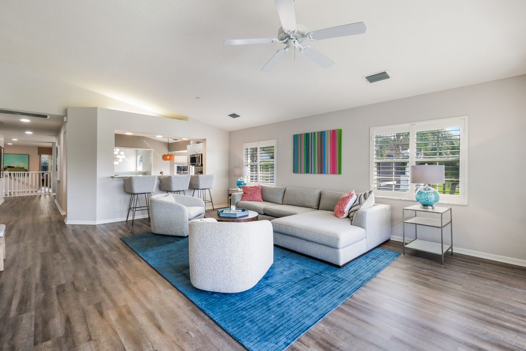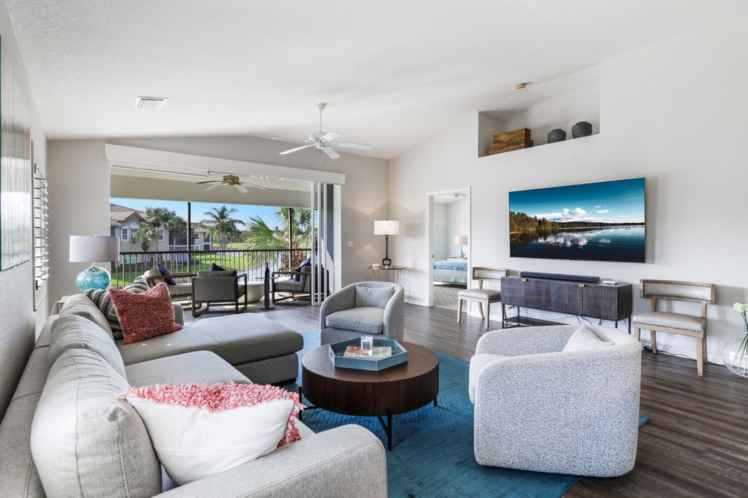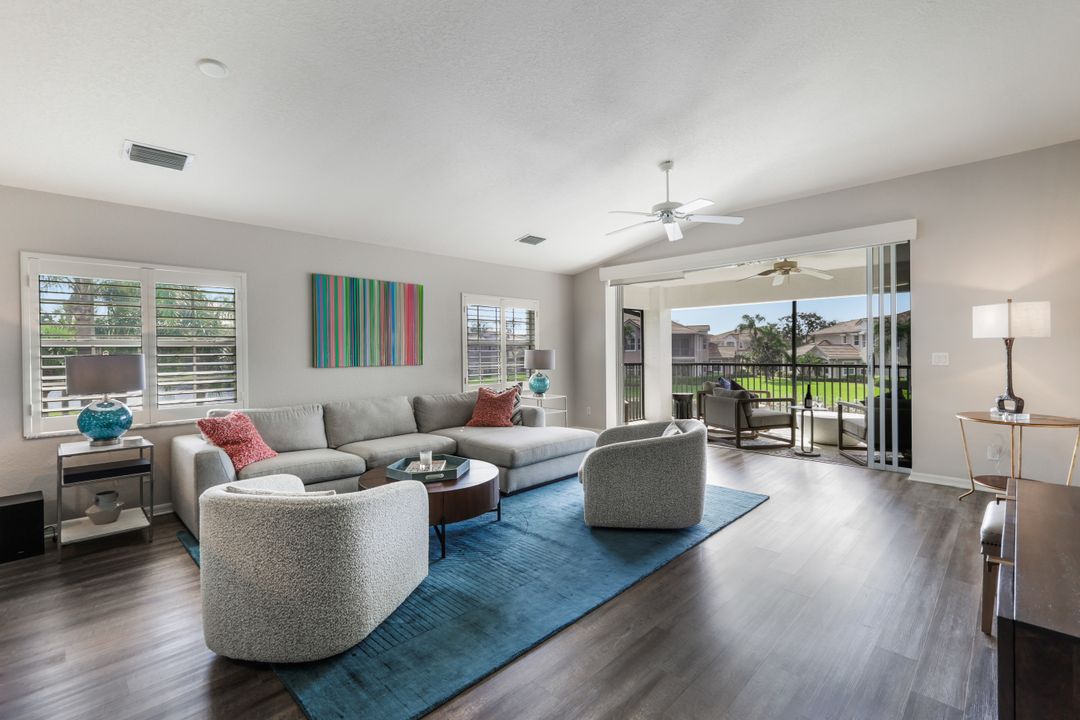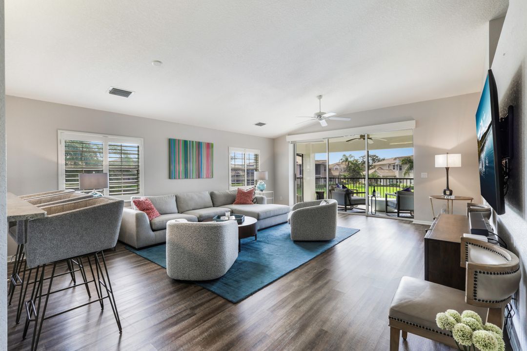 Recently updated and immaculately maintained, this stunning second-floor coach home with a two-car garage and private elevator feels like a model home. Spanning nearly 2,700 square feet, it offers the space and comfort of a single-family residence. With a split floor plan, it includes a spacious master suite and three generously sized guest suites, providing the perfect balance of privacy for family and visitors. As you head upstairs, the bright and airy dining room welcomes you, flowing seamlessly into the stylish kitchen. Here, you’ll find an inviting island, sleek white cabinets, granite countertops, a prep island, and stainless steel appliances. The fabulous eat-in kitchen also features a breakfast bar and a walk-in pantry, making it ideal for both everyday meals and entertaining. Moving through the kitchen, you enter the expansive family room, which opens onto a screened lanai with peaceful lake and partial golf course views. The western exposure of this home allows for plenty of natural light, making it the perfect spot to enjoy breathtaking sunsets. The master suite is a serene retreat, boasting dual vanities, a walk-in shower, two closets, and a bay window overlooking the lake. The recently renovated master bath is designed for relaxation, featuring an elegant shower with white tile and a soaking tub. Continuing down the hallway, you’ll find the laundry room, along with the first guest bedroom and a conveniently located guest bathroom. Toward the back of the home, two additional private bedrooms and a third full bathroom provide ample space for guests. This home’s layout is perfect for both relaxation and entertainment, with spacious common areas and private retreats. The new roof installed in 2019 adds to the home's peace of mind. Situated in central Naples, Kensington offers an amenity-rich lifestyle, including golf, tennis, pickleball, bocce, fitness facilities, pools, a clubhouse, and a restaurant. With several optional membership levels, there is truly something for everyone. Plus, it’s conveniently located near world-famous beaches, dining, shopping, and excellent schools. This property combines elegance and functionality in a stunning setting, offering the perfect Florida lifestyle.