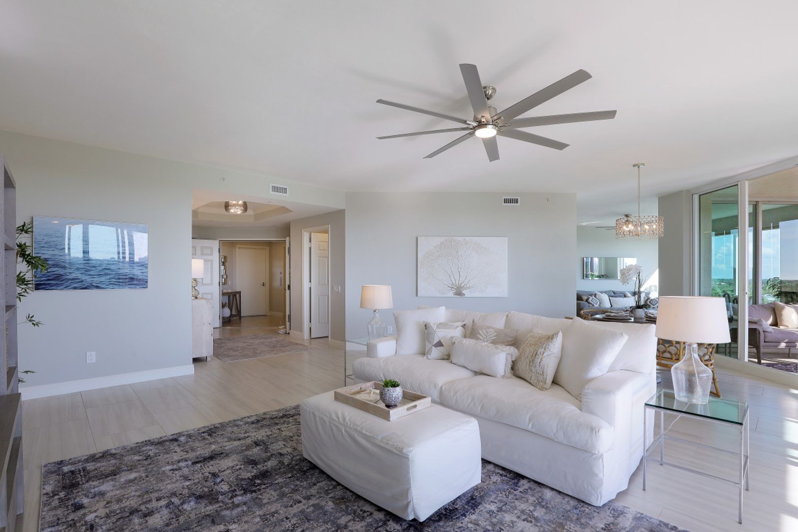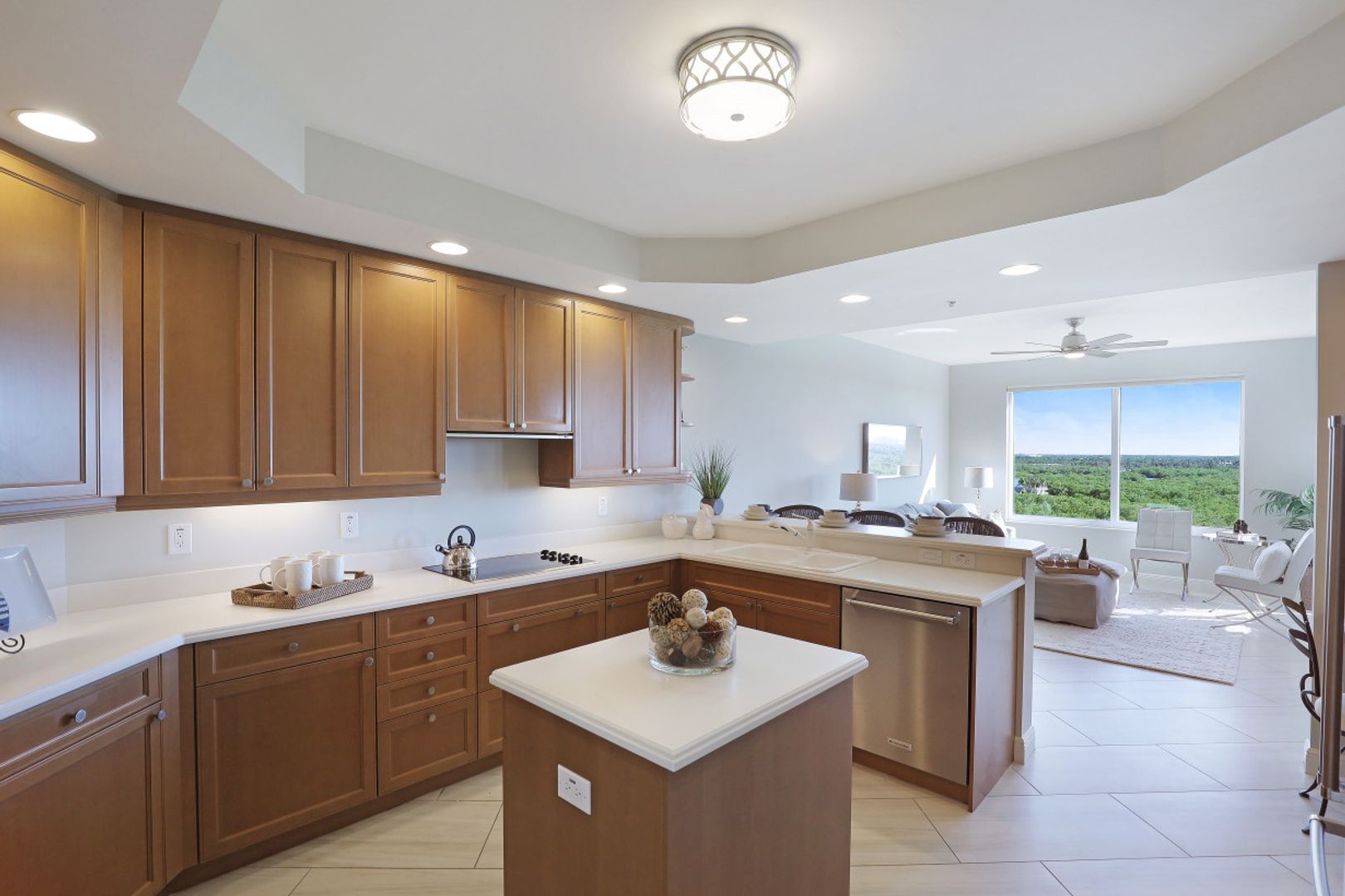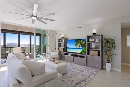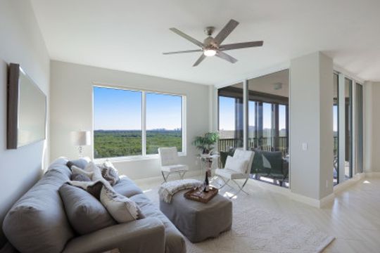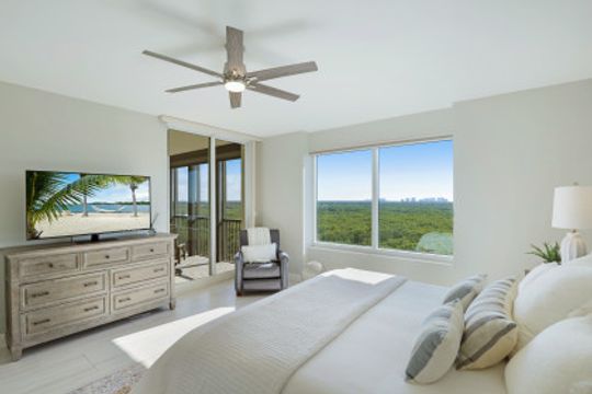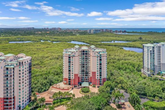 Welcome to Montego at Cove Towers where you are minutes away to Naples gorgeous beaches. Enjoy private elevator entry bringing you to your 9th floor condo where you enjoy stunning southwestern views from your grand salon and expansive screened balcony with unobstructed views. With almost 2700 sq ft of space this condo has a coastal modern feel with updated tile flooring throughout, freshly painted with updated lighting fixtures & fans. The kitchen boasts wood shaker style cabinets, Corian countertops, stainless steel appliances, breakfast bar & built in desk space. Your master suite oasis features stunning views sunrise to sunset, access to the large screened balcony, two walk in closets, spacious master bath w/dual sinks, shower & a soaking tub. Family & guests will also enjoy access to their own balcony. Included with this condo is the use of the Calypso Club where the resort style pool and spa, community rooms, fitness room, BBQ grills, outdoor pavilion w/fireplace, media center and 2 guest suites are exclusive to residence of the Montego & Nevis Towers. Optional Tarpon Cove Yacht & Tennis Club Membership is also available. Sold partially furnished for your immediate enjoyment.