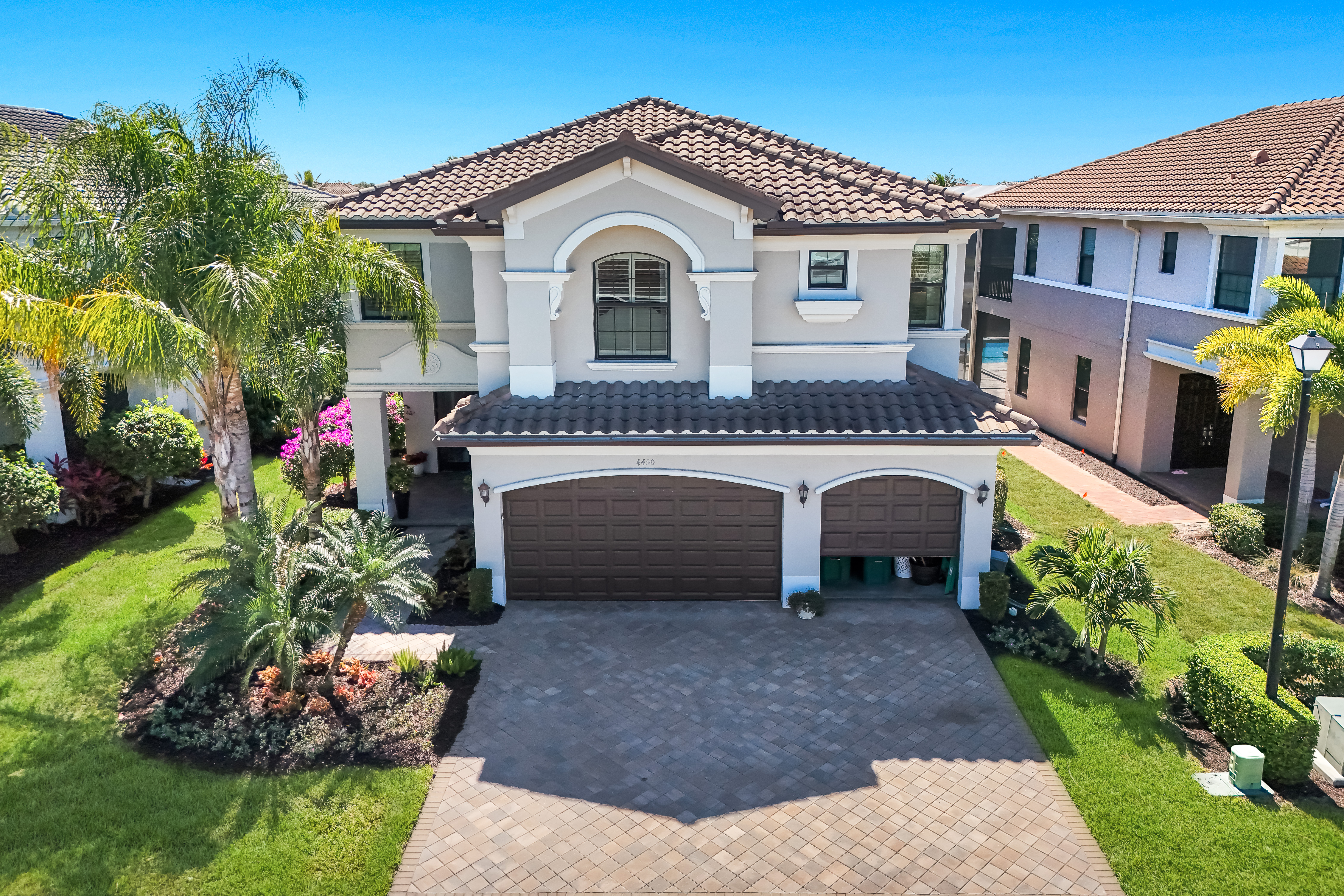 Offering more than 4,100 square feet of refined living, this six-bedroom, six-bath lakefront residence in Stonecreek presents a rare opportunity to live expansively while embracing the effortless elegance of the Naples lifestyle. From the moment you enter, polished marble flooring spans the entire first floor, creating a seamless, luminous foundation that carries you from the welcoming foyer to the sparkling pool and lake views beyond. Designed for both elevated entertaining and relaxed everyday living, the main level unfolds with a formal living room anchored by a striking fireplace feature wall, an elegant dining room, and an inviting family room that flows seamlessly into the kitchen. The gourmet kitchen is as beautiful as it is functional, showcasing glazed cream cabinetry with a contrasting island, GE Café appliances including a double oven and vented hood, granite countertops, ambient lighting, and a walk-in pantry with extended under-stair storage. A first-floor guest suite with adjacent full bath, a convenient mudroom, and a unique, dedicated cabana bath ensure comfort and convenience for both residents and guests—especially after a day poolside. Upstairs, five additional bedrooms and four full baths provide exceptional flexibility. The spacious loft creates the perfect setting for movie nights or a secondary lounge. The primary suite serves as a private retreat, complete with its own balcony overlooking the lake—ideal for sunrise coffee or evening unwinding. Dual walk-in closets and a spa-inspired bath with separate his & her spaces connected by a frameless glass shower complete the sanctuary experience. Refined details elevate the home throughout: plantation shutters, designer drapery, motorized shades, decorator lighting & fans, crown molding, hardwood flooring on the stairs and upper level, an upgraded wood and iron stair rail, tankless water heater, finished laundry room, and hurricane-impact glass for effortless storm preparation. Outdoors, the fully fenced yard is framed by lush tropical landscaping, creating a private resort ambiance. The oversized custom gas-heated saltwater pool and spa—accented by waterfall sconces—invite long afternoons in the sun and evenings under the stars. Stonecreek residents enjoy a true vacation-inspired lifestyle with a grand clubhouse, resort-style and lap pools, state-of-the-art fitness center, indoor sports court, tennis and pickleball courts, splash pad, playground, and vibrant social spaces. Ideally located in North Naples near I-75, premier golf, upscale shopping and dining, and Naples’ renowned white-sand beaches, this exceptional home delivers luxury, comfort, and the feeling of being on holiday every day.
