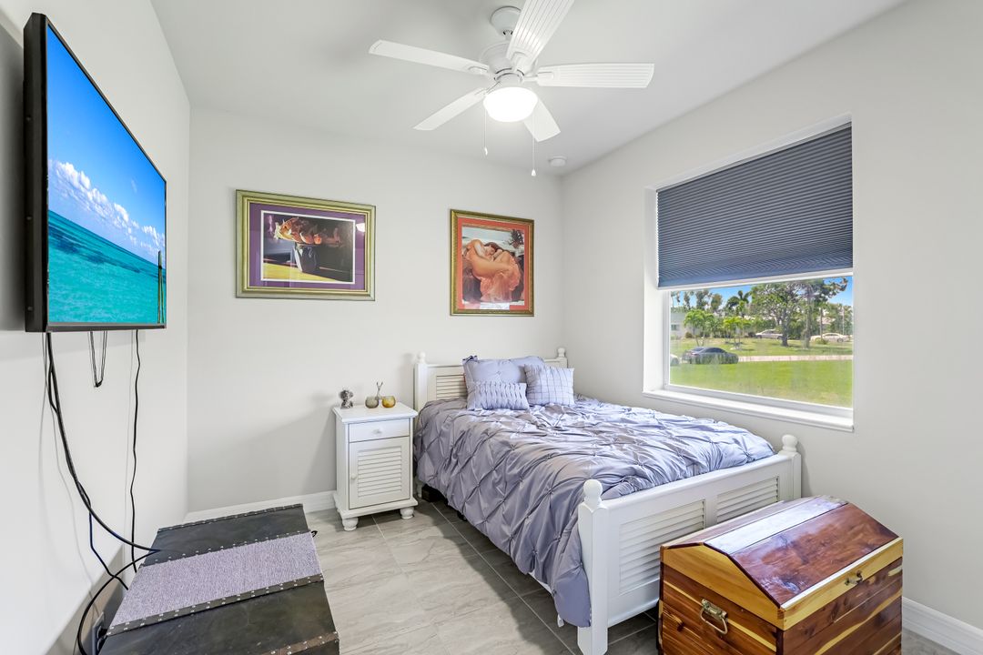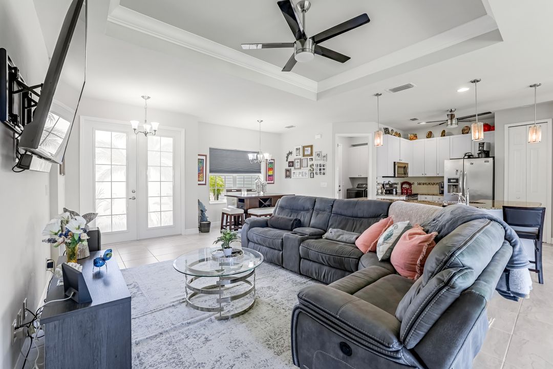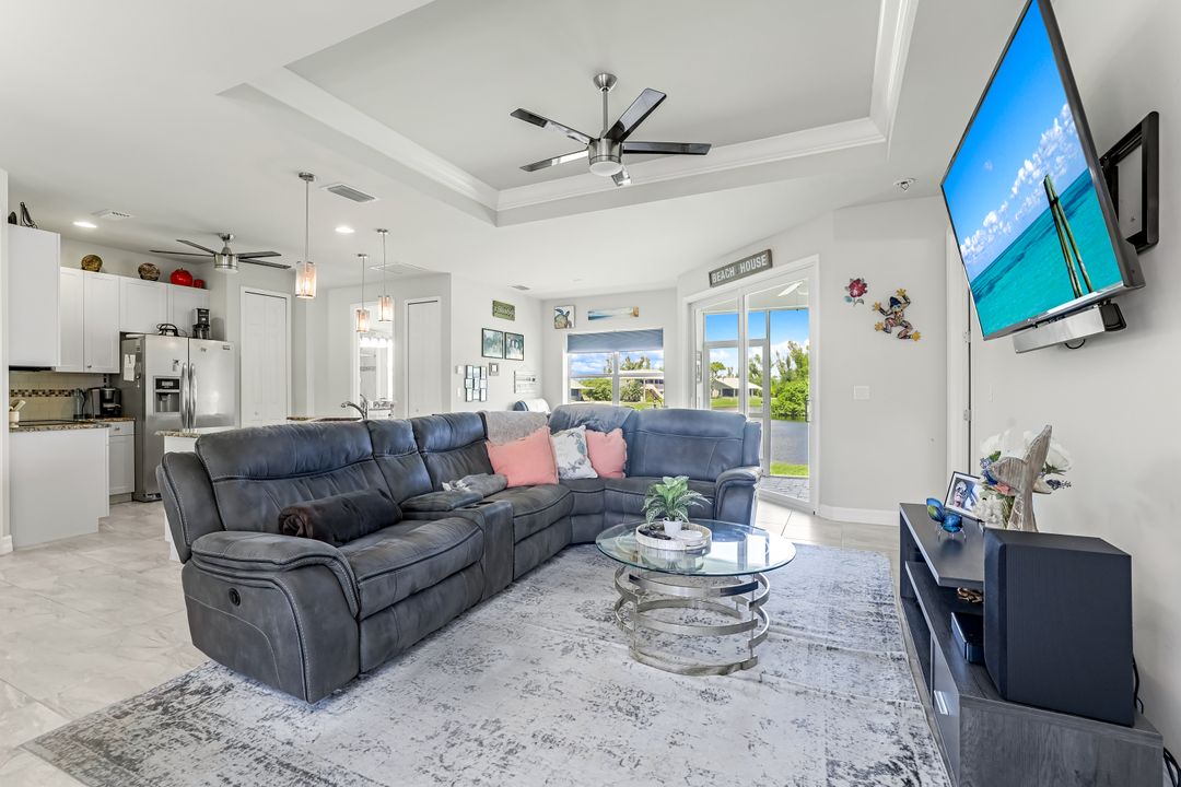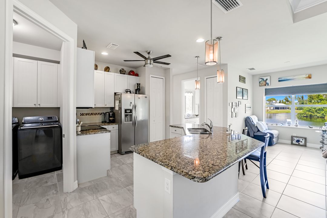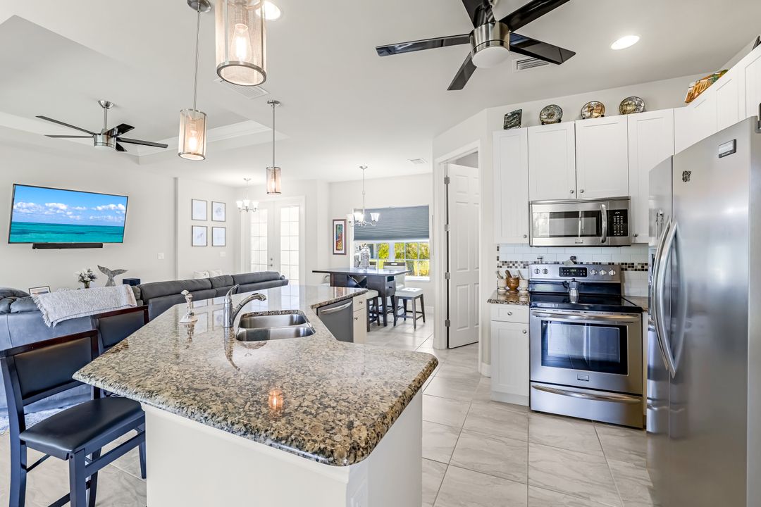 Newer Construction with Serene Long Lake Views! Positioned on one of the highest elevations on the island, this home sustained no damage from recent storms and is located in Flood Zone X, which means more savings for you! Welcome to your own slice of island paradise in the peaceful Pine Island Village community of Saint James City, FL. Built in 2017, this beautiful home blends coastal charm with modern durability, featuring a metal roof and impact-rated windows and doors for peace of mind during any season. Step inside and be instantly drawn to the wide lake views that create a calming, nature-filled backdrop to everyday living. The open-concept great room layout showcases tile flooring throughout, tray ceilings, and nautical-inspired fixtures, all enhancing the relaxed, coastal feel. Offering 3 spacious bedrooms and 2 bathrooms, including a private primary suite, this home is perfect for both unwinding and hosting. The kitchen is a chef’s delight, featuring granite countertops, stainless steel appliances, and generous cabinet space. Enjoy the outdoors year-round on the pavered lanai or sip your morning coffee on the pavered driveway as the sun rises over the water. Pine Island Village is a quiet, friendly community offering a low HOA fee of just $350/year, a community pool, and tranquil walking paths where you're likely to spot island wildlife. Come experience world-class fishing, boating, and the laid-back island lifestyle that makes Pine Island so special.
