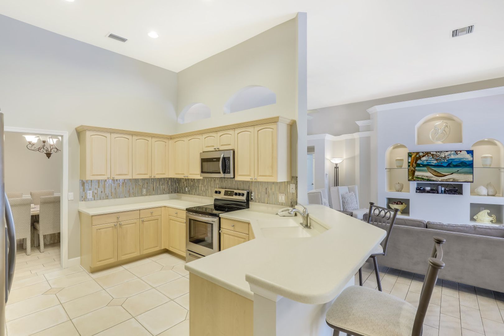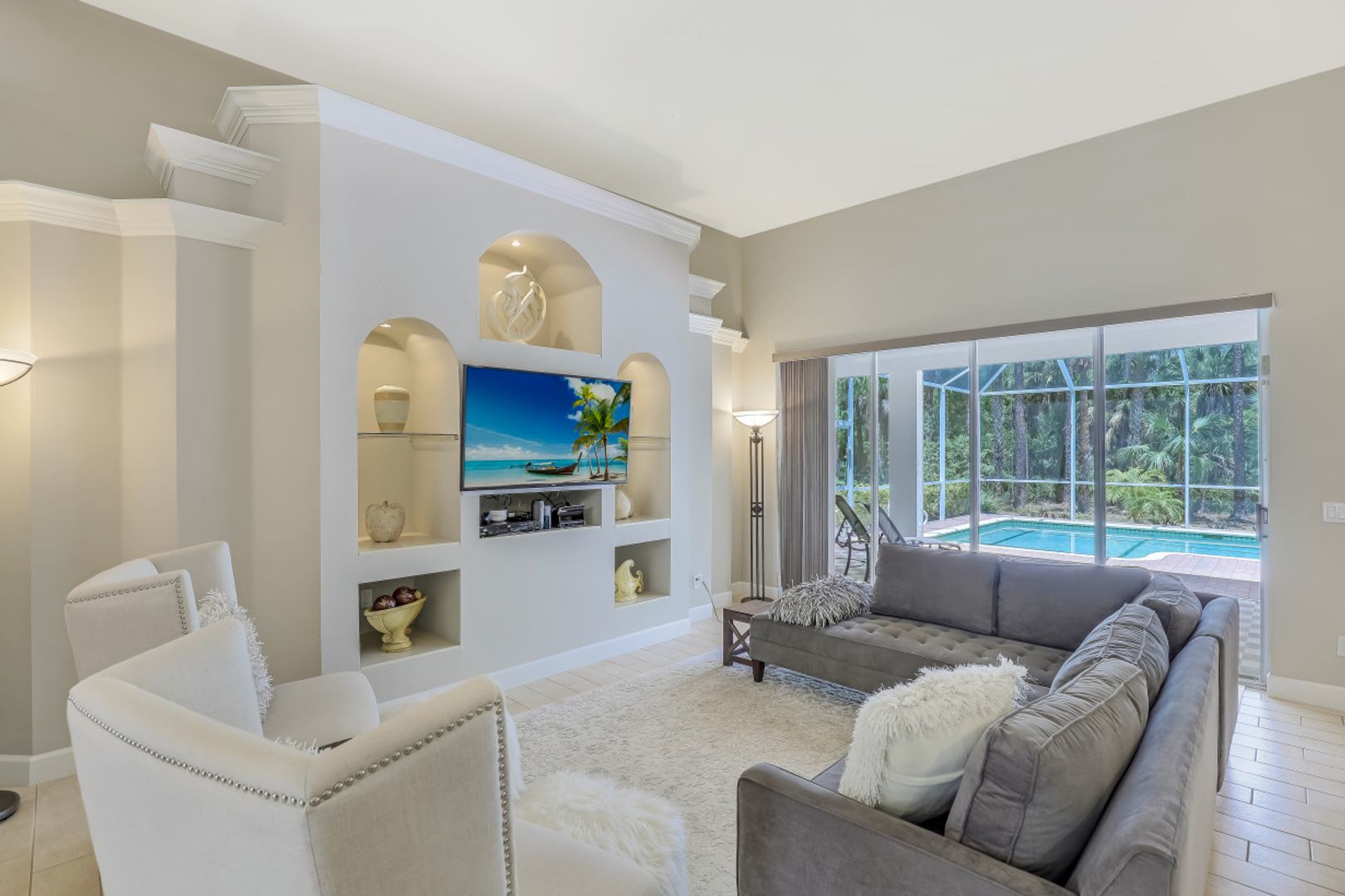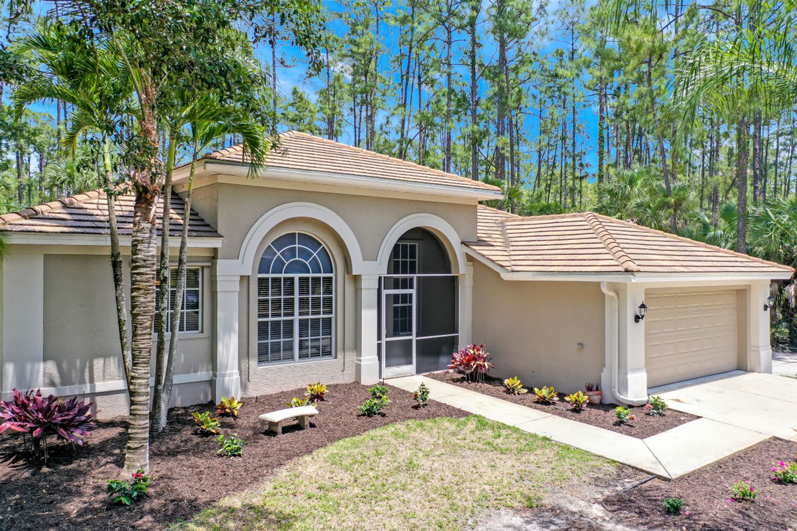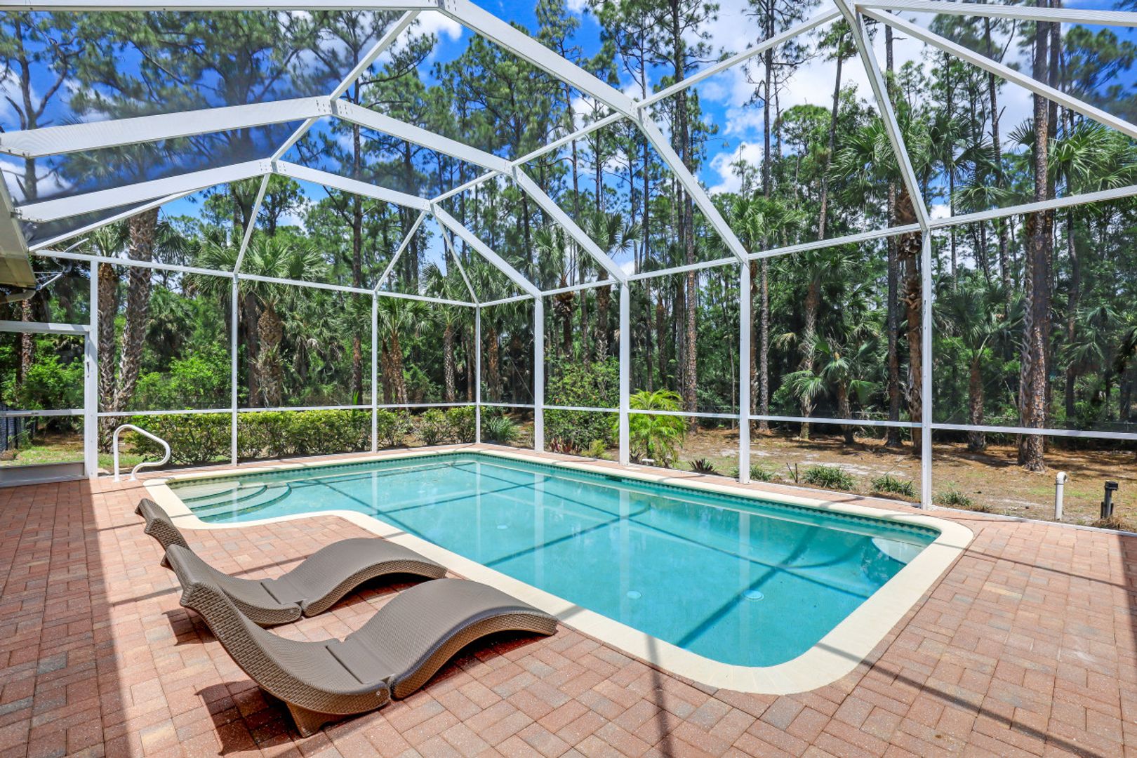 Located just off Pine Ridge Rd you will find your dream home built on 2.27 acres of partially wooded land. Just minutes from all of Naples finest restaurants, entertainment centers and just ten minutes from the beach! As you step into this 3 bed 2 bath home with den you will immediately fall in love with the updated modern décor. To the right as you enter you will notice the large formal dining area that is connected to your large chefs’ kitchen with top of the line stainless steel appliances. Make your way out to your private screened lanai area where entertaining guests is made easy with covered sitting area and heated swimming pool. Retreat to your massive master suite with spa like master bath and his and hers walk in closets. 450-foot driveway provides no traffic noise and added privacy. Other features include paver lanai and no HOA fees. Don’t miss out on owning this piece of paradise!