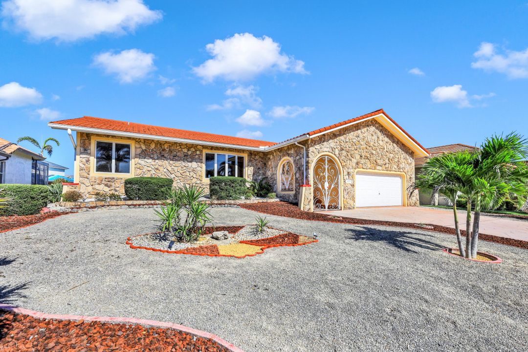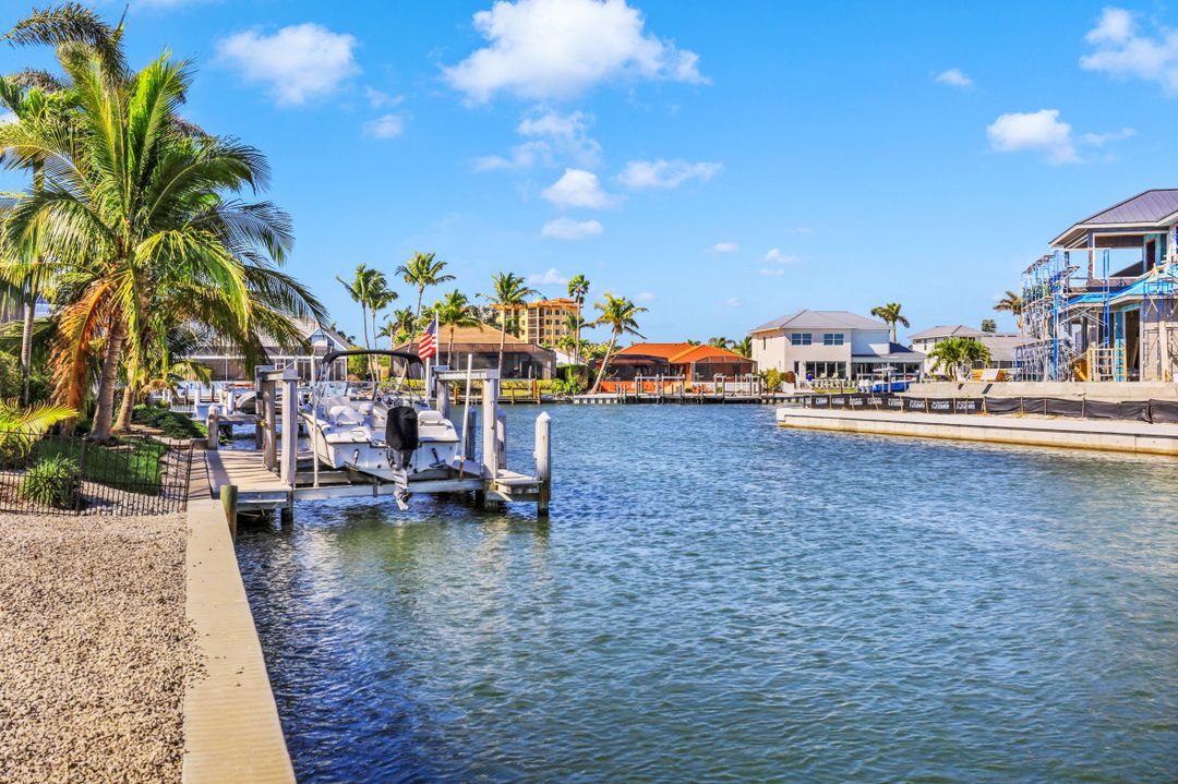 Outstanding waterfront value! Pay lot price for this converging water view home with new seawall installed in 2018. Impeccably maintained, this 2200 sq. foot home is ready for buyers to add value by updating the interior. New metal roof in 2018 and AC in 2021. Excellent floor plan with split bedrooms. Spacious living area and central kitchen with separate family room. Enjoy the morning sun from the east facing lanai. Room for a pool. Survey is available. Oversized 2 car garage with higher elevation. Low maintenance lawn. Quiet neighborhood yet conveniently located to farmers market, grocery stores, shopping, and dining. Excellent water access with highest bridge clearance of Marco neighborhoods.