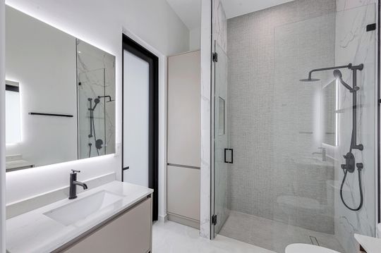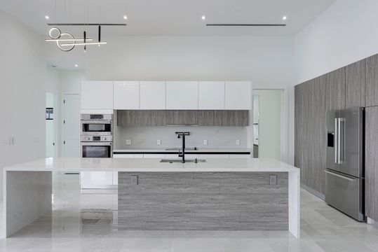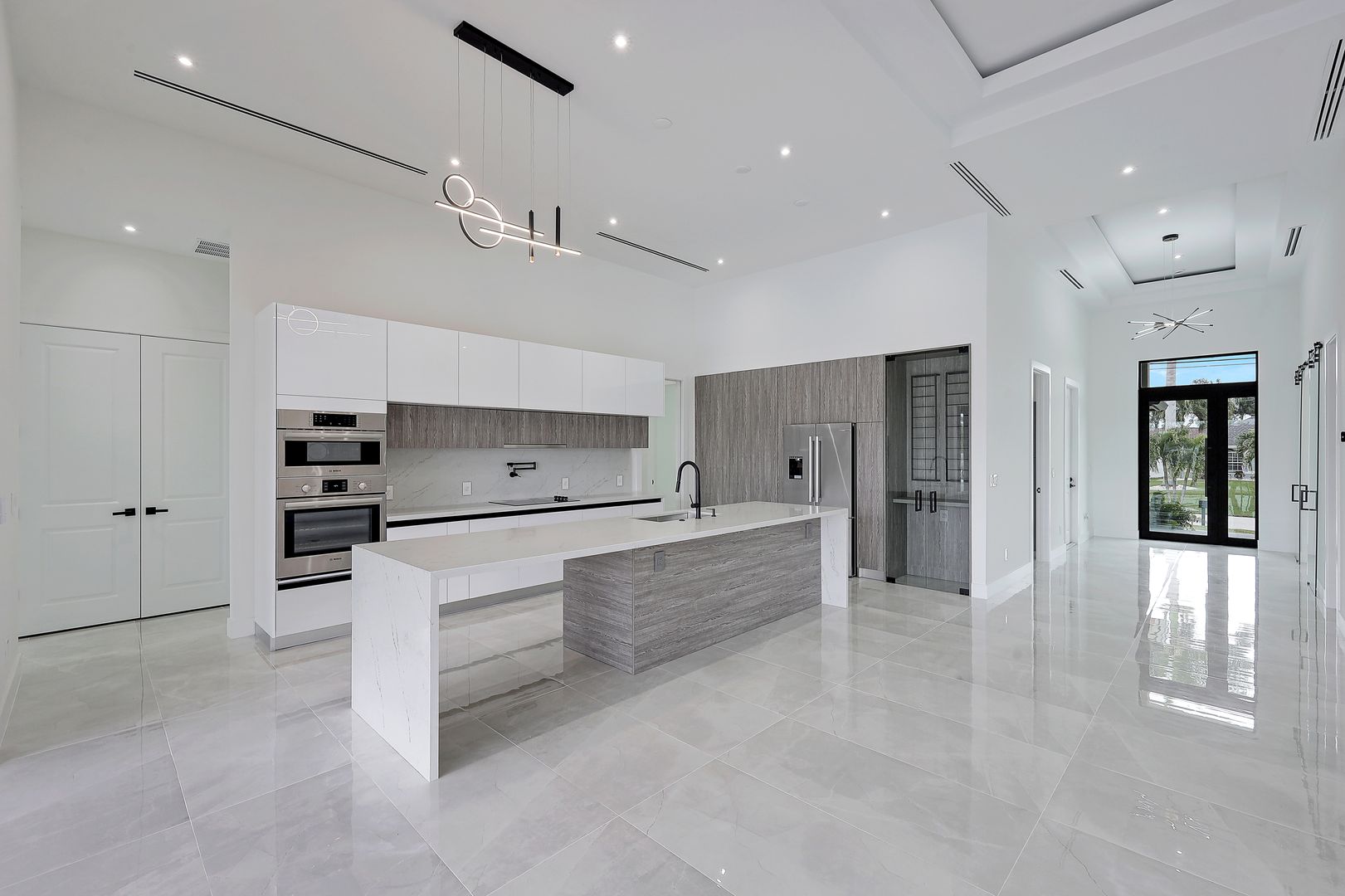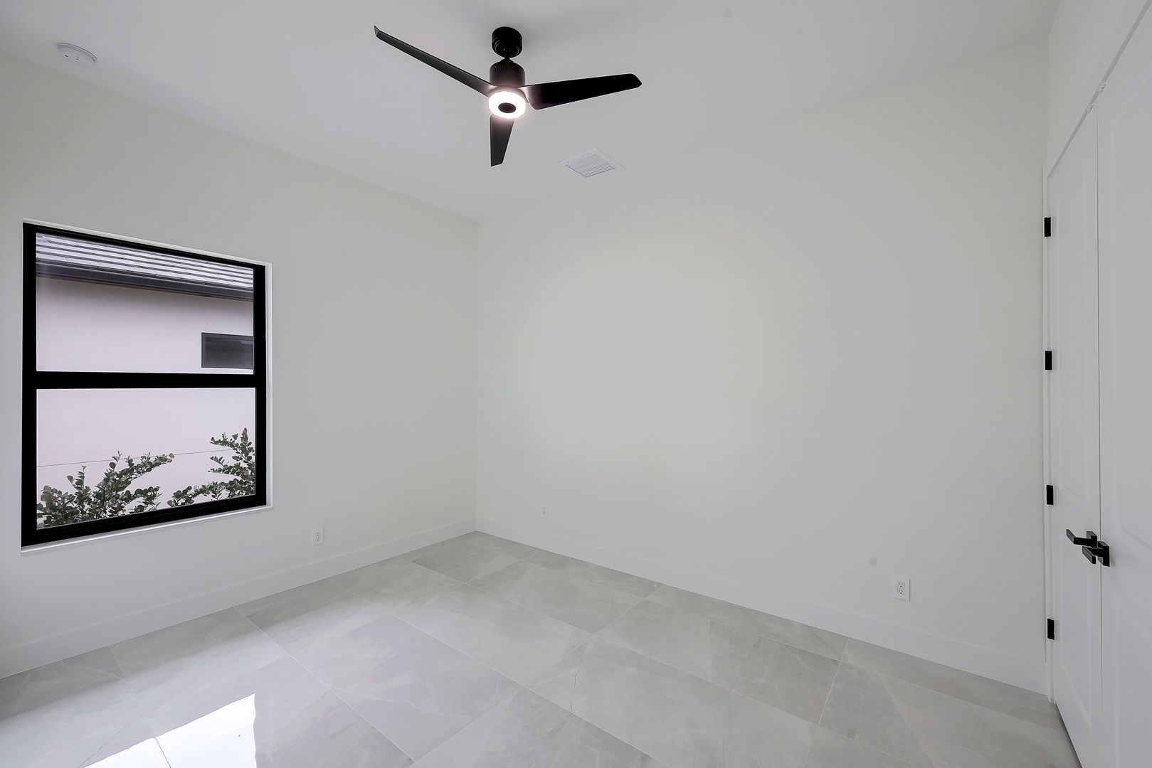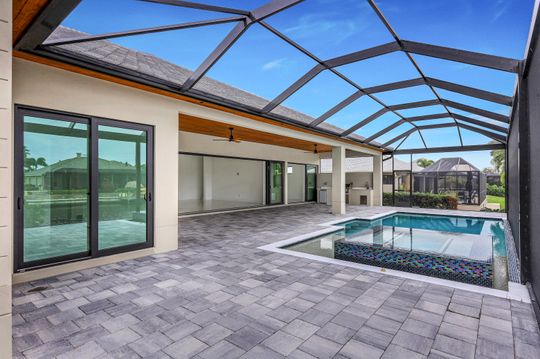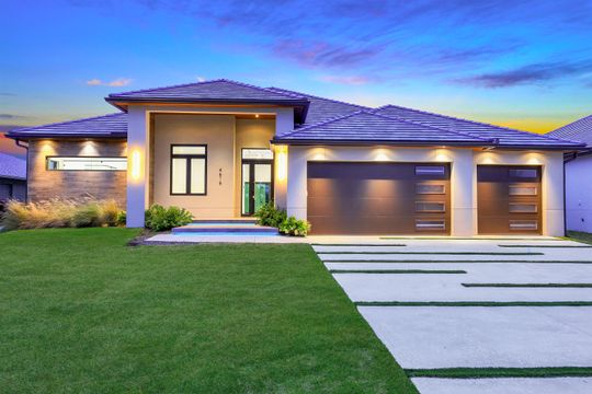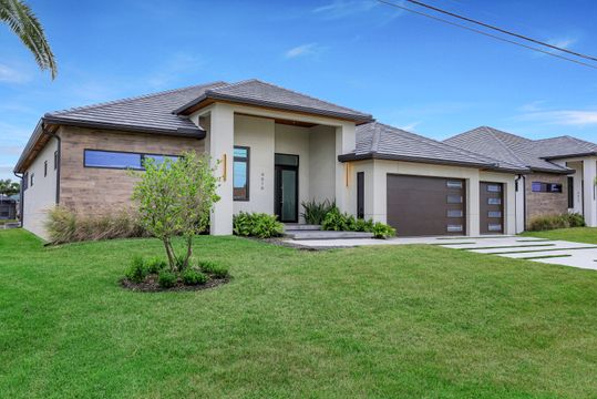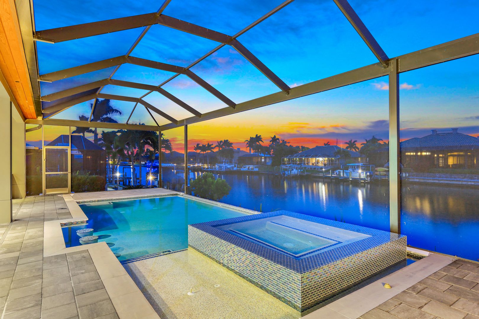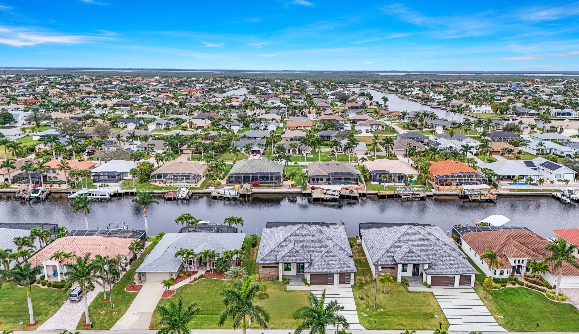 Modern New Construction Gulf Access Home in SW Cape Coral. Straight out of the pages of a magazine! Clean contemporary design overlooking a 150+ foot wide canal near Cape Harbour! Featuring 2,844 SF with 4 Beds, Office, 4 Bath, and a 3 Car Garage. Open family room with high volume ceilings and 23' pocketing sliding glass doors leading out to pool & spa. Entertainer's Kitchen has European style cabinetry, double waterfall Quartz island, high-end Bosch appliances, hidden walk-in pantry, and wine wall. Master suite overlooks the water. Stunning master bath w/ dual vanities and large walk-in shower w/ designer tub. Junior master suite and 2 spare bedrooms ideal for family & guests. Entertain or Relax on the spacious lanai w/ outdoor kitchen & false-negative edge Heated Pool on the water! Integrated 360 degree spillover spa and sun shelf complete this amazing pool! LOADED WITH FEATURES! Panoramic Screen Enclosure w/ picture window screens, Impact Windows & Doors, Wood ceilings on the lanai & foyer, liner AC vents, designer lighting, and large format tile flooring throughout. Boating & Fishing right from your back yard! Cape Harbour waterfront dining, shopping, and events very close by!