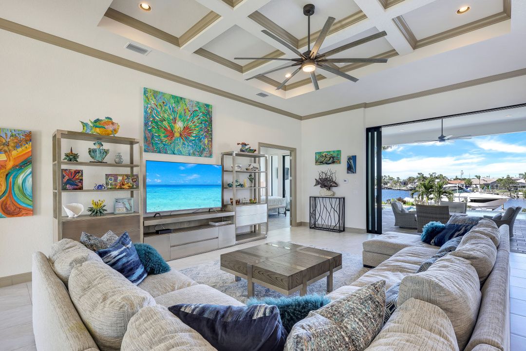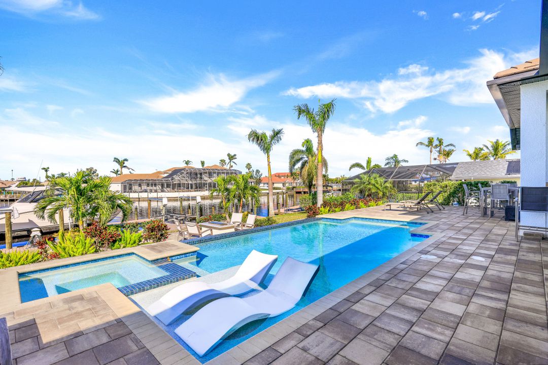 WESTERN Exposure-SAILBOAT Access-Built in 2019! Why wait to build? Unrestricted boating, built to strict codes/standards, high end finishes & WIDE WATER VIEWS make this the COMPLETE PACKAGE! Transitional style home encompasses nearly 2800 sqft of air conditioned space, 4BR, DEN, 3.5BA & 3 Car. Highlights include 12 foot ceilings, 90 degree 10 foot sliding glass doors, crown molding, tile flooring, Kitchen Aid appliances, propane cooktop, built in coffee bar/dinette, contemporary hardware & plumbing fixtures, 250 gallon buried propane tank & attention to exquisite details add to the allure of this stunning home. A sizeable master bedroom w/wood tile flooring & spa like bathroom feels like a permanent vacation while 3 spacious guest bedrooms provide ample space for all! The open floor plan allows for seamless flow from inside/out, ideal for entertaining. Large heated pool, integrated spa, sun shelf w/built in loungers, pavered pool deck, summer kitchen w/propane grill, granite bar top & built in fire pit - all overlooking the EXPANSIVE BASIN Views! Boaters will LOVE the composite captains walk w/2-YES TWO-boat lifts! See features list & 3D tour & schedule your personal tour today!