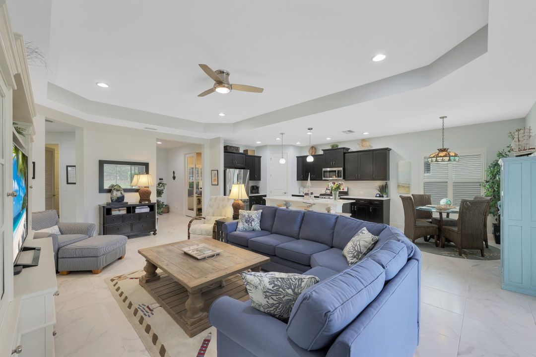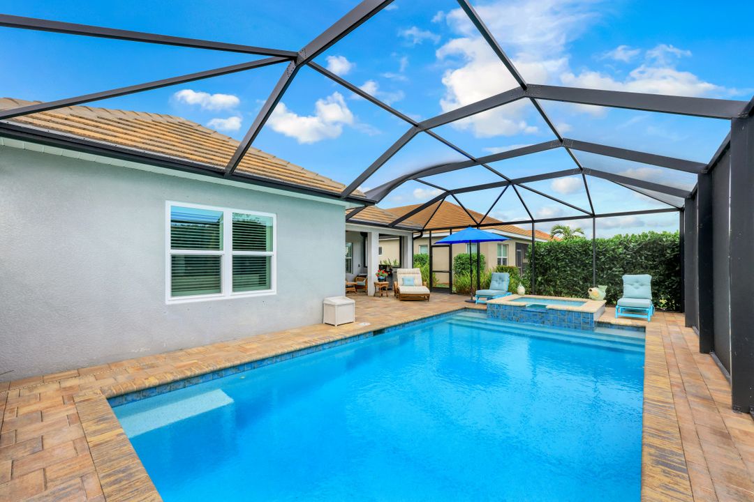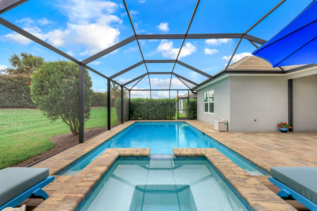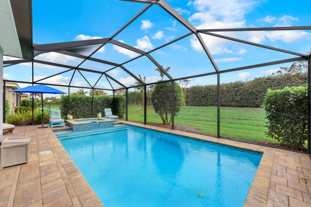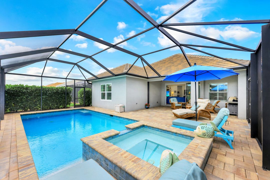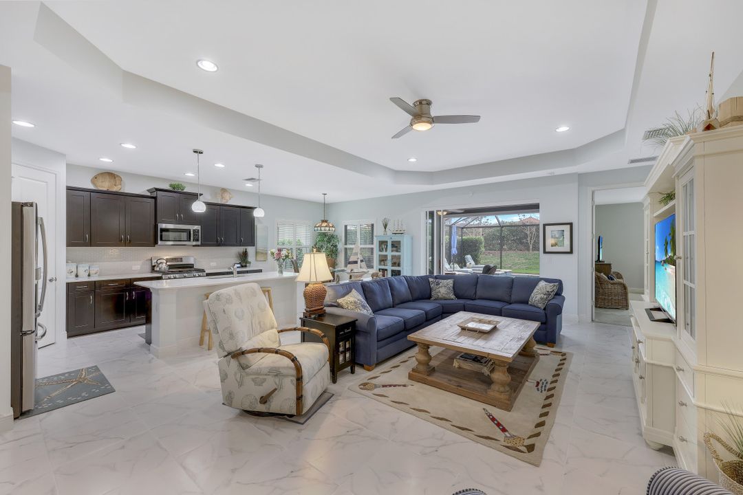 his upgraded and tastefully decorated, very well-kept pool home is ready for move-in. The open concept floor plan features three bedrooms and an office, two full baths and a two-car garage. This lovely home boasts upscale finishes and touches like tray ceiling, upgraded light fixtures and fans, plantation shutters, impact-resistant windows, porcelain tile in the main living area, kitchen with quartz countertops, a huge kitchen island and stainless steel appliances. The spacious primary bedroom suite with a pool view offers dual closets and a master bath with dual vanities and a walk-in shower. Pocket lanai sliding door opens to a beautiful saltwater pool and spa area, perfect for entertainment and relaxation. This home has a termite integrated system and it is located in the Watermark community with amenities that include a resort-style pool and spa, tennis courts, fitness center, fire pit, basketball, pickleball, kid's playground and a dog park. A natural gas community, and it is only minutes to some of the best beaches, shopping centers and entertainment in Southwest Florida.