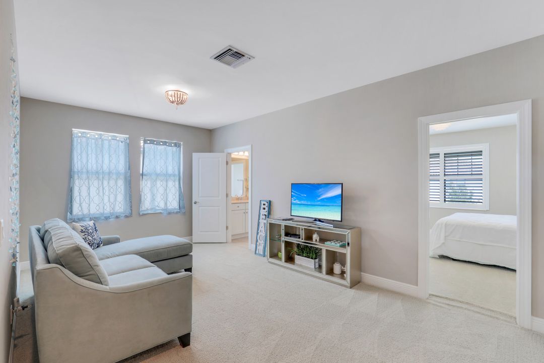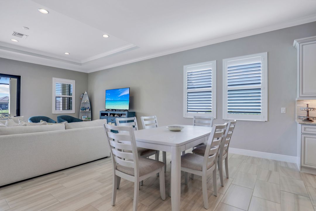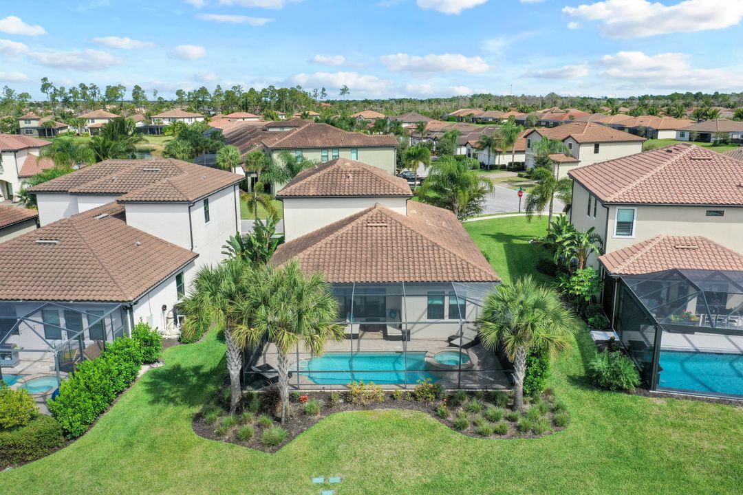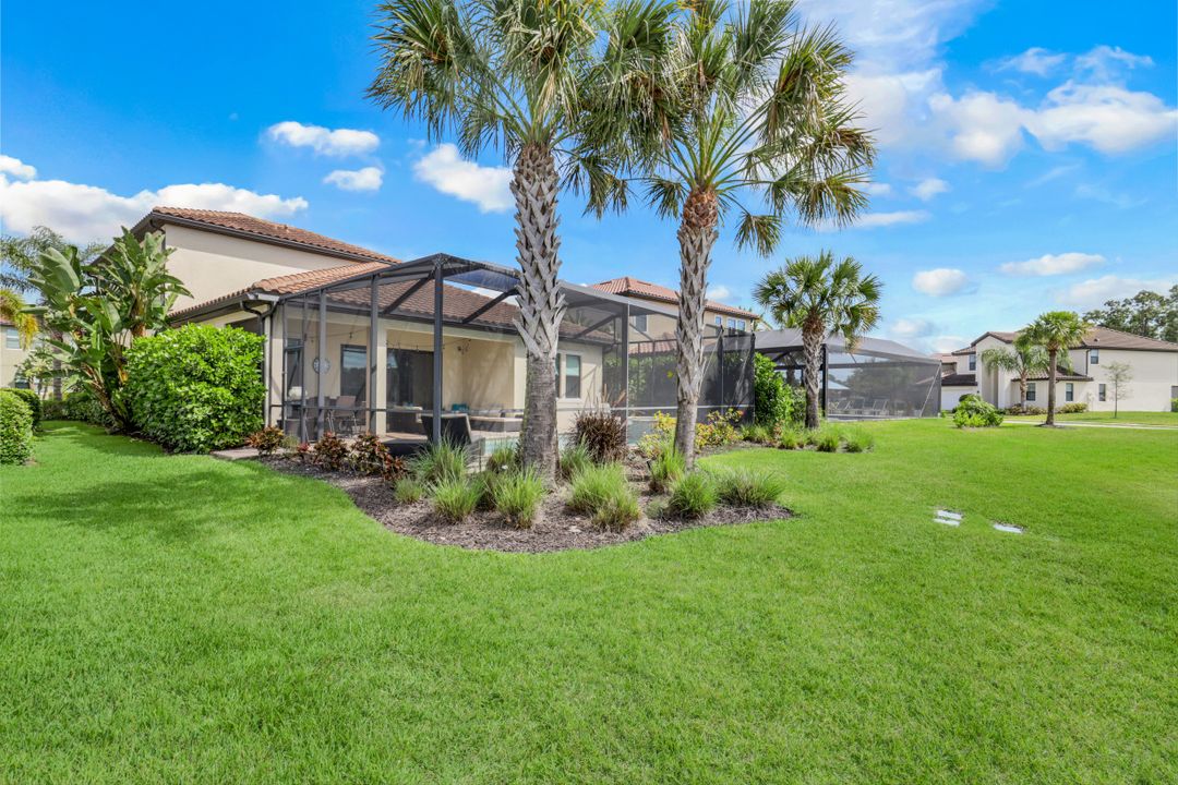 This immaculate WCI built "Ibis" floorplan single family home is situated on a highly desired lake front lot with SOUTHERN EXPOSURE and offers 3 Bedrooms, Den, Loft, 3.5 Baths, and just over 2700 sq ft under air. Inside you will find an open and airy floorplan including a luxurious kitchen with upgraded white cabinets with glaze detail & quartz countertops, 12x24 staggered tile floors throughout the common areas & baths, plantation shutters, tray ceiling, extra high hat lights, and crown molding. Enjoy the Florida sun around the heated pool/spa and expanded paver deck lanai with lake views. Additional features include: HURRICANE IMPACT WINDOWS & DOORS; extended driveway; first floor master suite; shower tile to the ceiling; white shaker cabinets in the baths including natural stone tops; and more! A Rated Schools! Raffia Preserve is situated on 184-acres with 72 acres being dedicated to preserves and lakes along with a 7,500 sq ft clubhouse offering a resort-style pool, 2,000-sf fitness center, clubroom, basketball court, and playground. 24/7 gate with virtual guard. 5 min to I75, 10 min to Mercato, 15 min to the Beach, 20 min to Downtown/5th Ave, 25 min to RSW Airport.