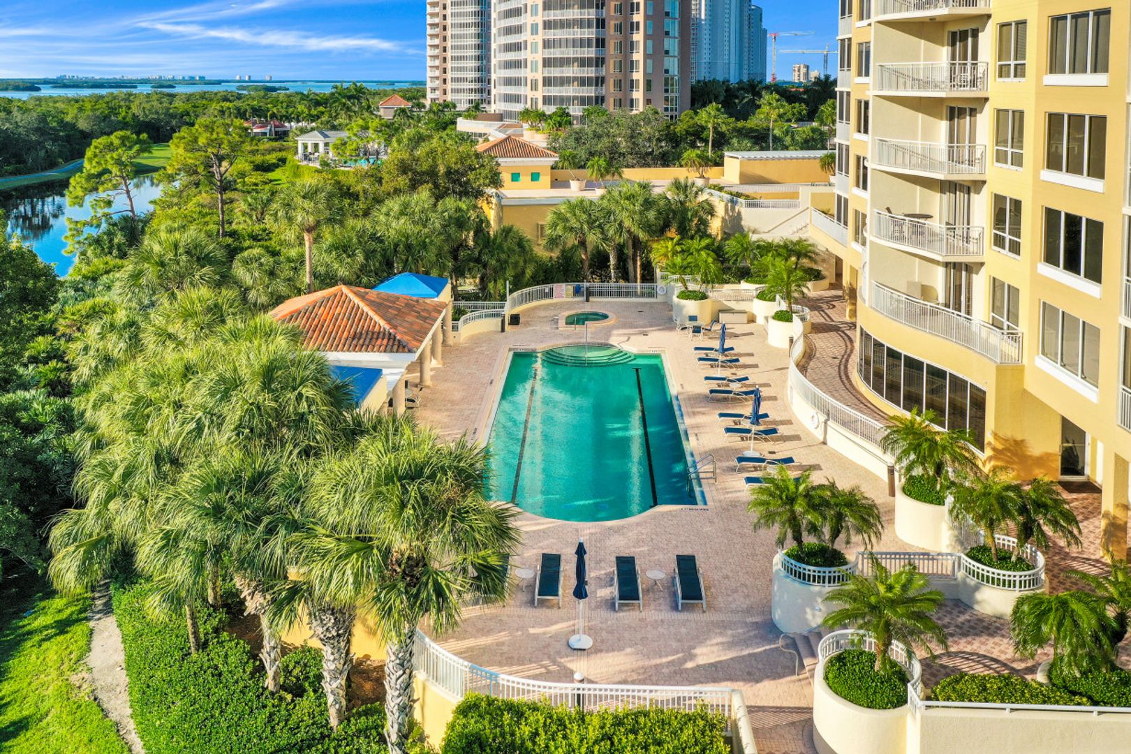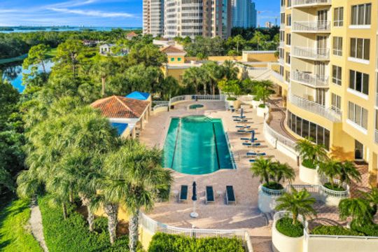 This gorgeous 3 BR, 3 BA unit in Vistas of Bonita Bay lives like a SINGLE family home! So much indoor AND outdoor space - entertaining friends & family will be a joy! Only one floor above the lobby, you will never need to wait for the elevator! Enter through the lovely foyer into this light, bright & airy unit. You will immediately be impressed by the FLOOR TO CEILING WINDOWS on the entire Southwestern perimeter of the home. The kitchen, living & dining areas are open to one another. The great room, kitchen & BRs allow for lanai access. W/over 500 sq.ft of outdoor space, the lanai overlooks a sparkling lake -- the outdoor area in this home will be your favorite spot to relax all year long. The POOL, located only steps from the unit - just like having your own private pool!! No need to walk through the lobby for access - it's out the lanai door & down the stairs! This home is truly special! Low maintenance, so much space, so very bright -- paint & minor cosmetic work is all that is necessary to make this home feel like your own. Come live the Bonita Bay lifestyle w/over 12 miles of hiking/biking, beach club, & excellent proximity to world class dining, shopping & the Intl Airport!