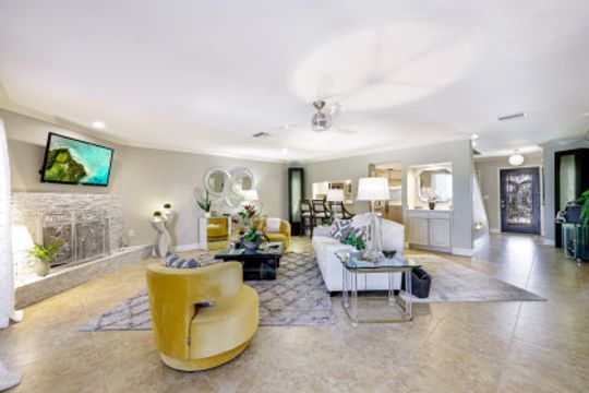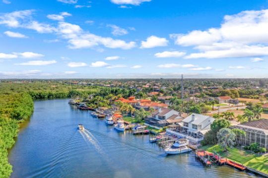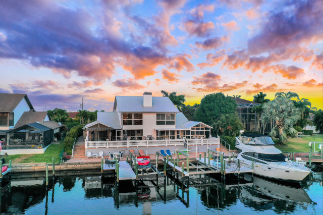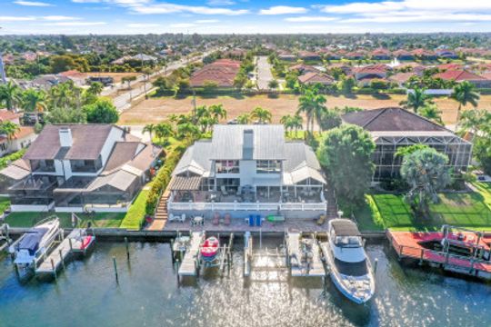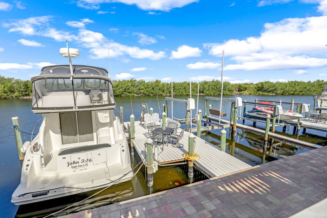 Welcome to your Private Waterfront Mini-Marina overlooking the stunning Spreader Canal and miles of Preserve as far as the eye can see. Direct Access equipped for multiple yachts and smaller boats. Unique opportunity to own a nearly 5,000 SF home with 6 bed 6 bath [4|2] on one of SW Cape Coral's premier streets. The home is a divided Villa Home similar on both sides, ideal for mother-in-law suite, multi-generations, or luxury VRBO & Airbnb. Home has been completely remodeled inside & out over the past 9 months top-to-bottom with stunning flooring, timeless kitchen, updated bedrooms & bathrooms. Open living room with fireplace and incredible views of the waterway and boats going by. 4 bedrooms on the first floor & 2 bedrooms on the 2nd floor. Dock has been replaced with composite dock & equipped w/ power & water for 2 yachts and 2 boat lifts. Live each day like you are on vacation! Your own bit of heaven is completed by an elevated outdoor living area. Multiple balconies & patios overlooking waterway complimented by the expansive elevated brick paver deck overlooking a parade of boats traveling the Spreader Canal. Relax in your brand new SwimSpa pool overlooking vibrant sunsets reflect over the water and disappear into the preserve. Direct Boating Access to white sandy beaches, destination islands, waterfront shops & restaurants, island resorts and more are all a boat ride away from your private docks!